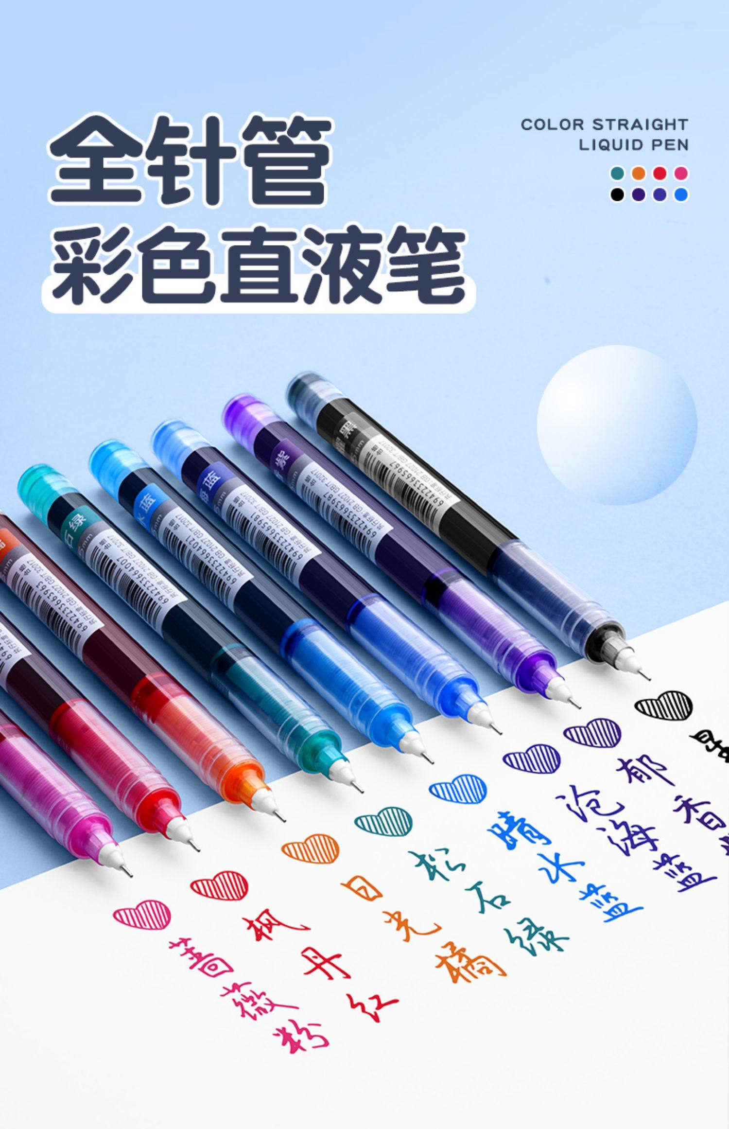 Gel Pen, Liquid Rollerball Pen, Colorful 0.5mm Needle Tip Pen, Black, Blue, Red, Green, High-Capacity, Quick-Drying, Smooth, High-Quality, Niche, Instagram Style, for Teachers, Students, Note-Taking, Journaling