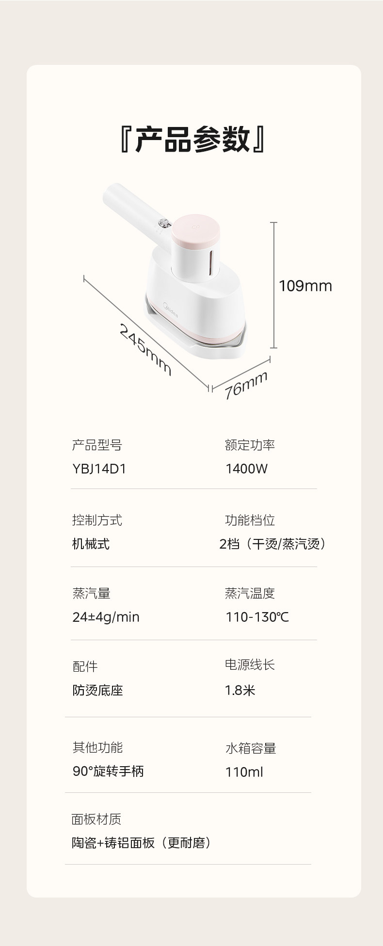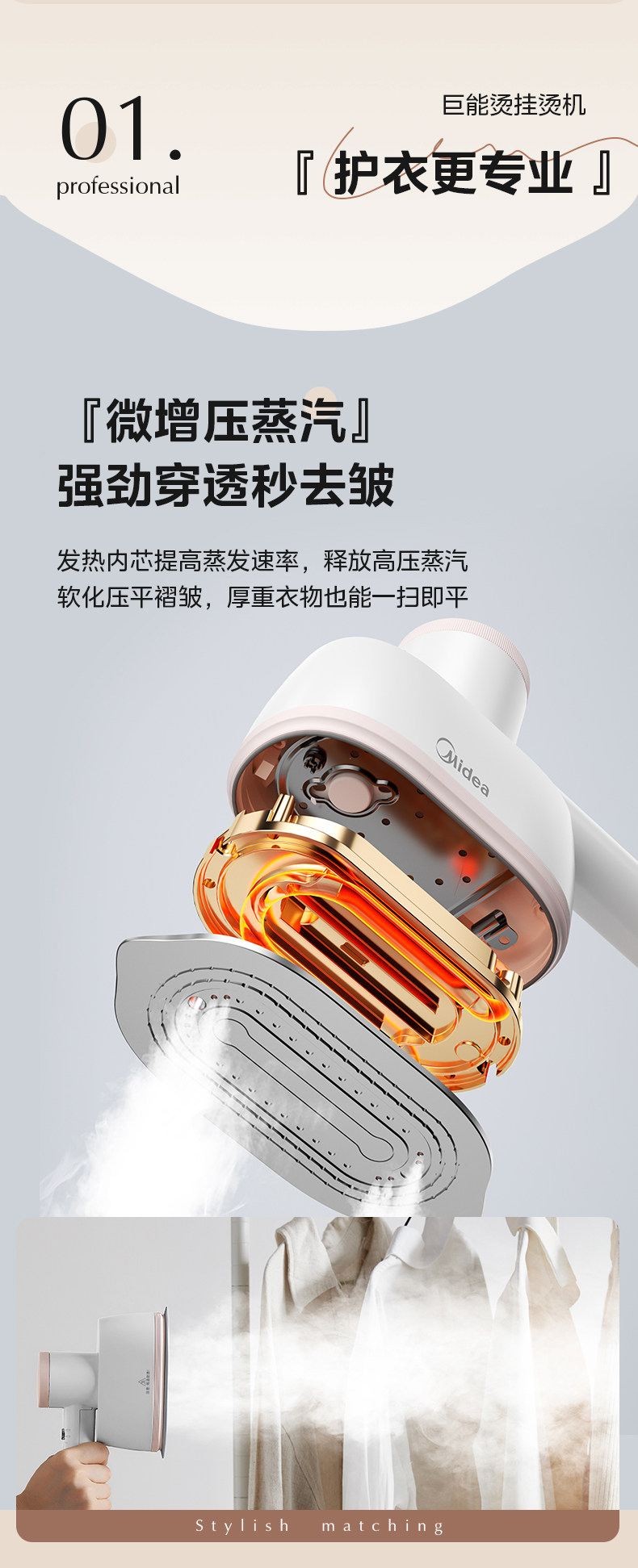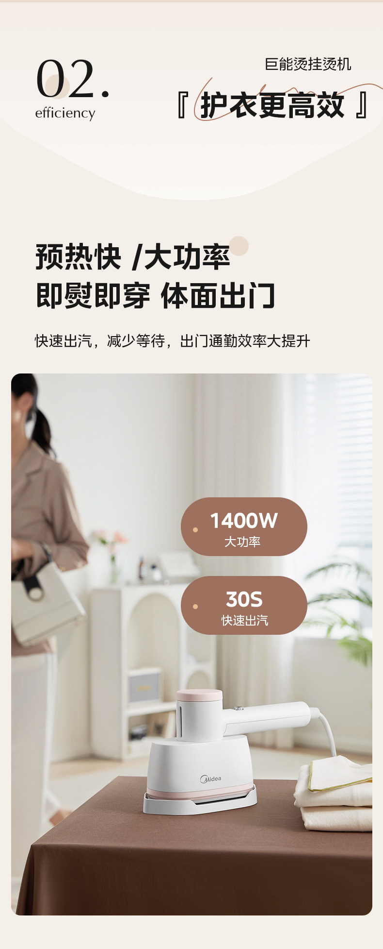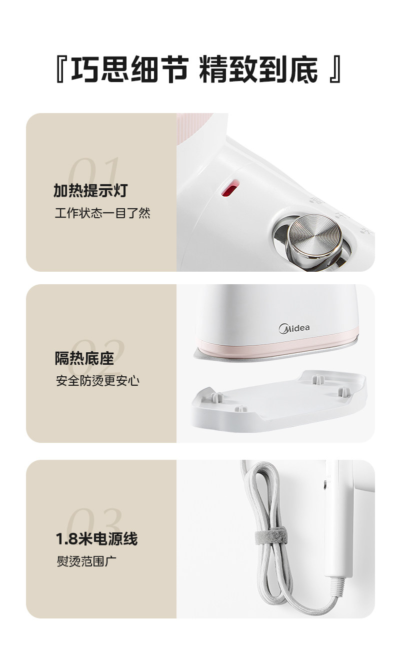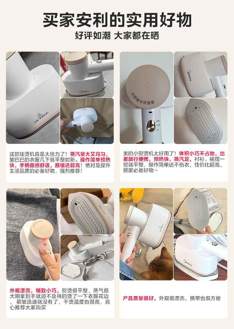 Midea Handheld Garment Steamer Ironing Machine for Home and Dormitory Use, Small Steam Electric Iron, Portable Clothes Steamer