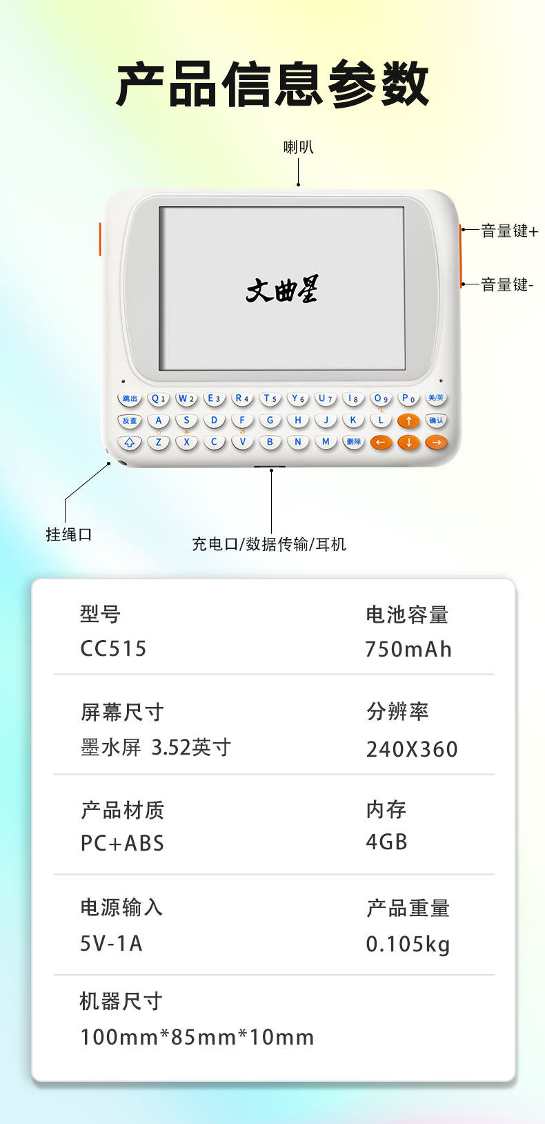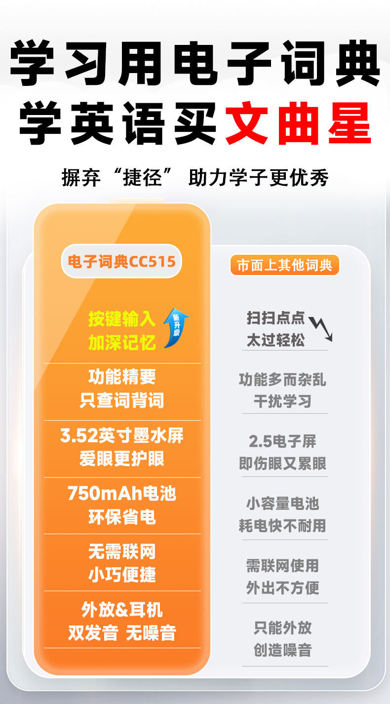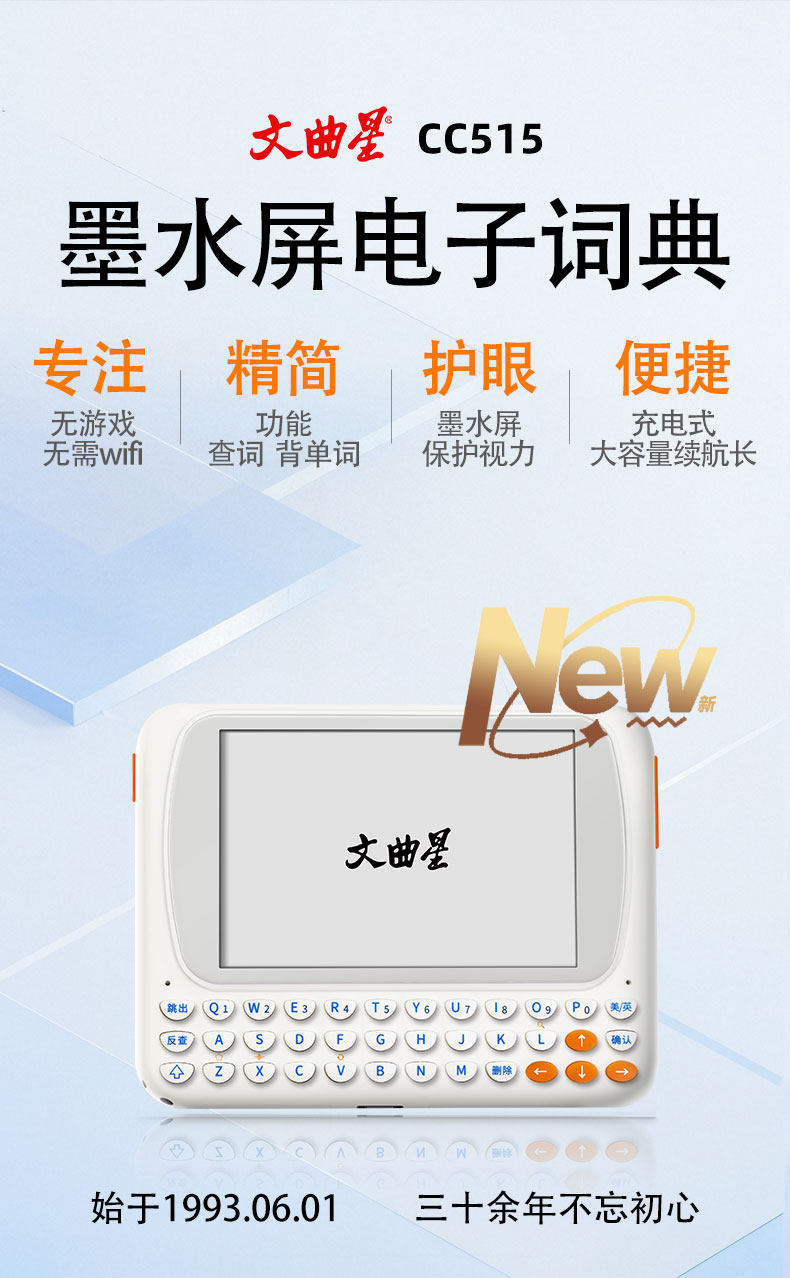 Wenquxing Electronic Dictionary Cc515 Eye-Protecting E-Ink Screen All-In-One Charging Learning Device Offline Student Vocabulary Memorization Tool for Primary, Middle, and High School Synchronized Textbook English Vocabulary Machine Electronic Dictionary