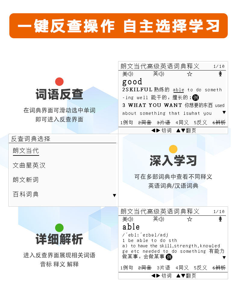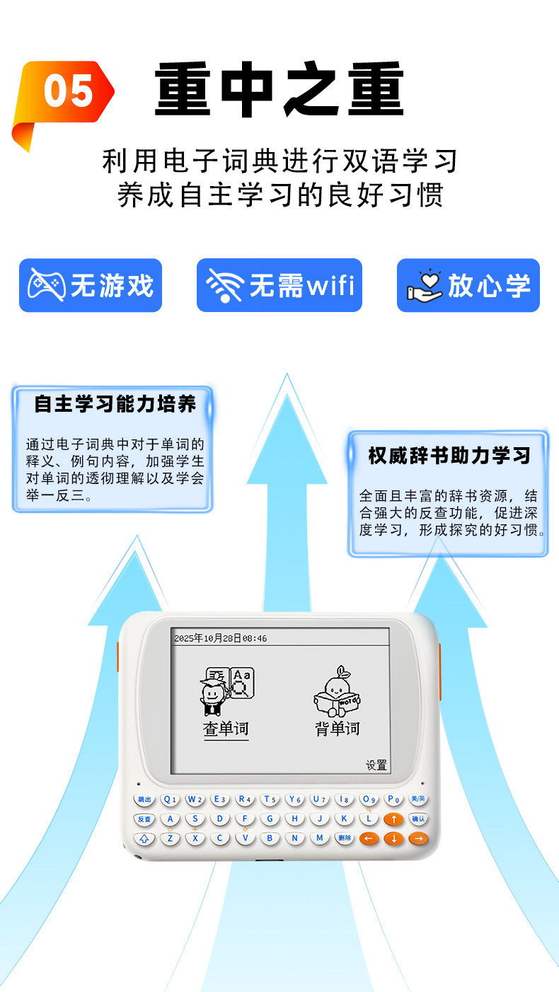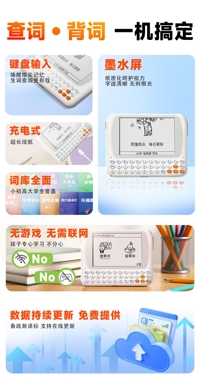 Wenquxing Electronic Dictionary Cc515 Eye-Protecting E-Ink Screen All-In-One Charging Learning Device Offline Student Vocabulary Memorization Tool for Primary, Middle, and High School Synchronized Textbook English Vocabulary Machine Electronic Dictionary