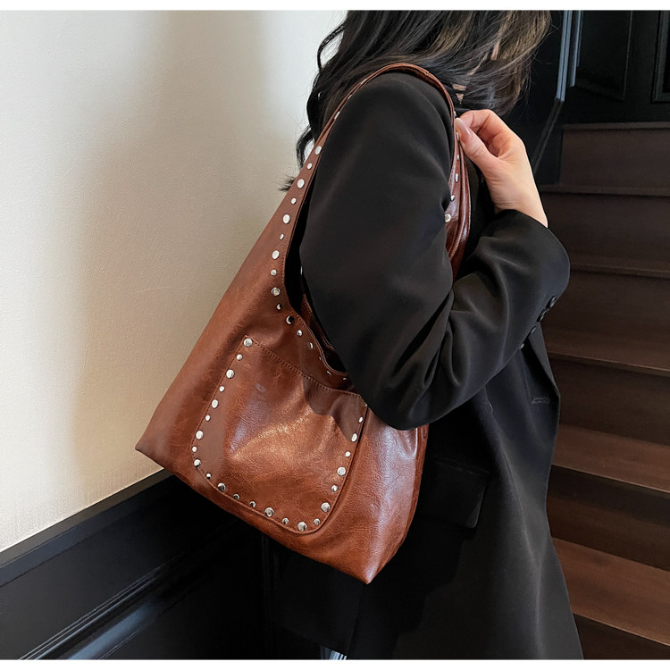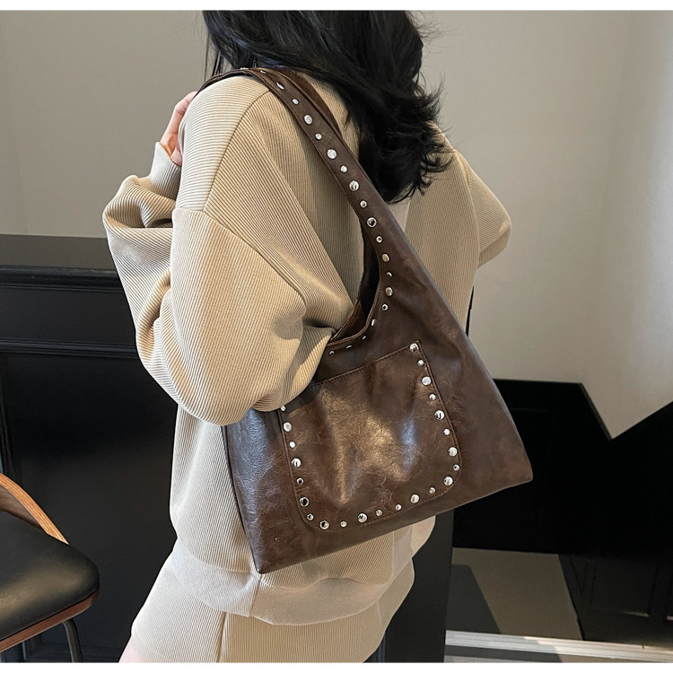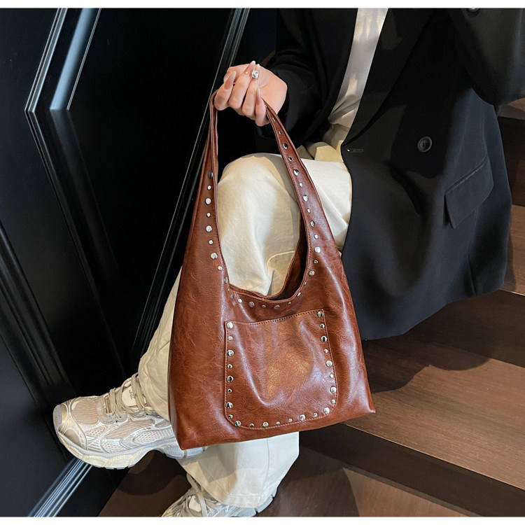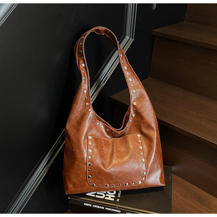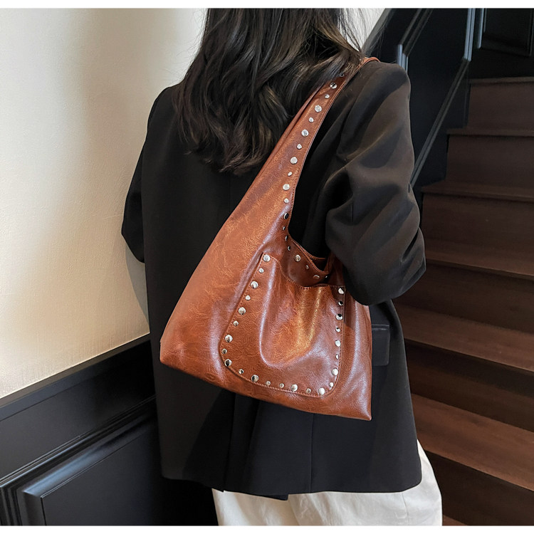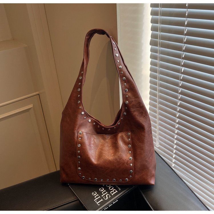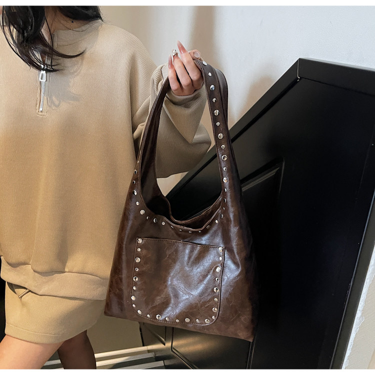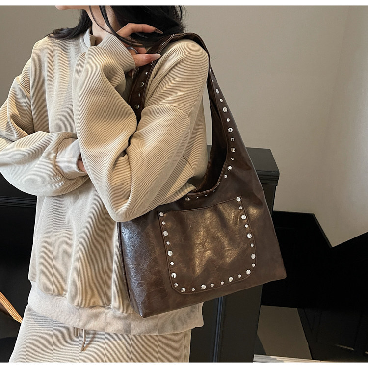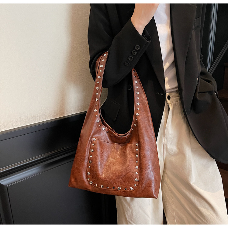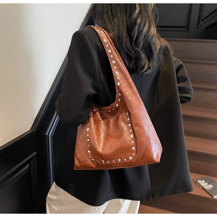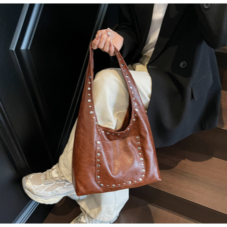 Large-Capacity Retro Underarm Bag for Women 2025 New Autumn and Winter Shoulder Bag Maillard Brown Commuter Tote Bag
