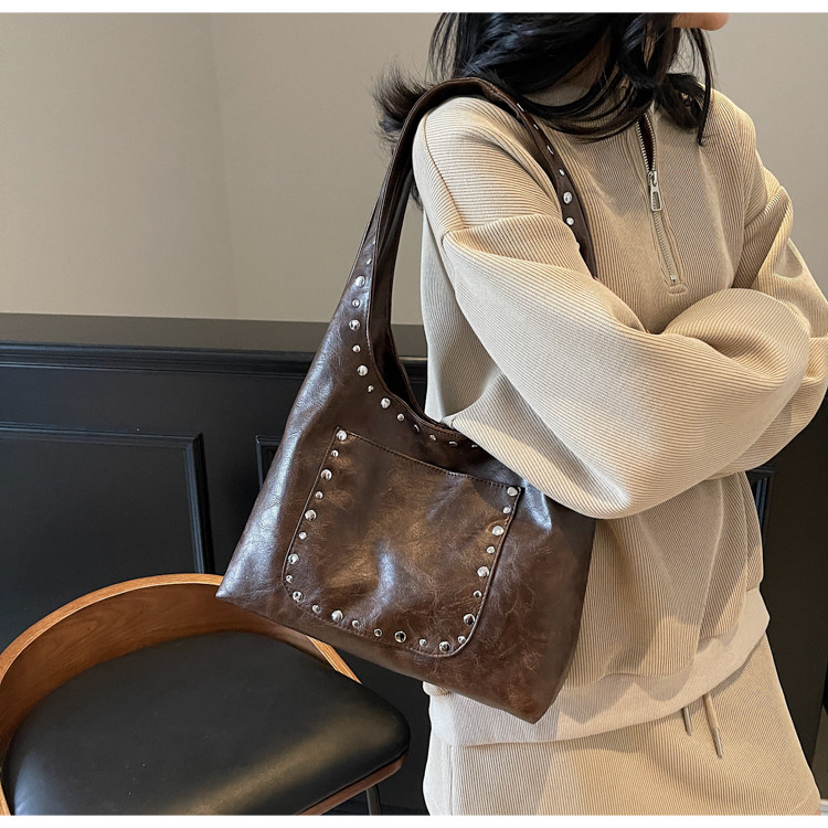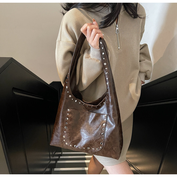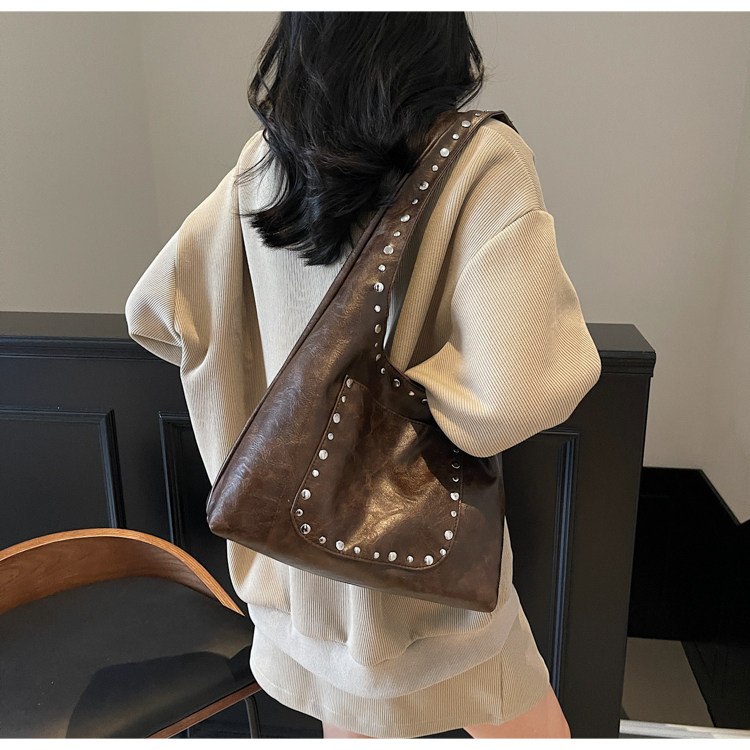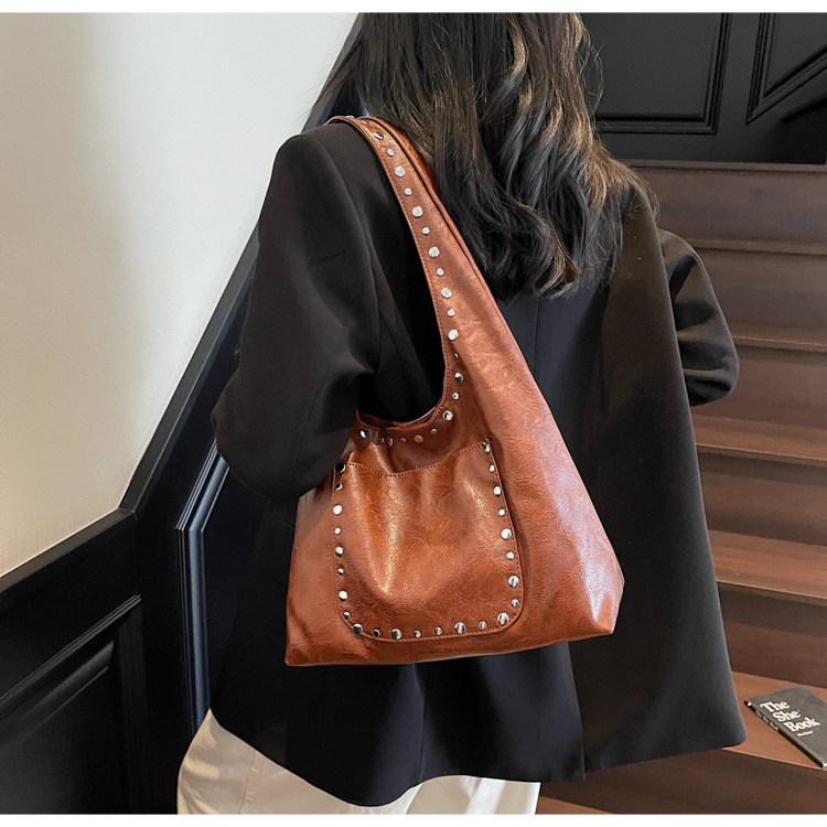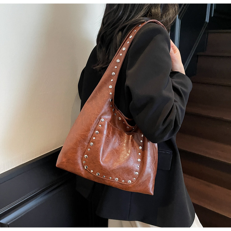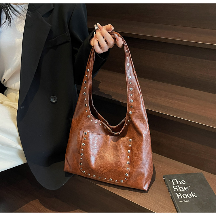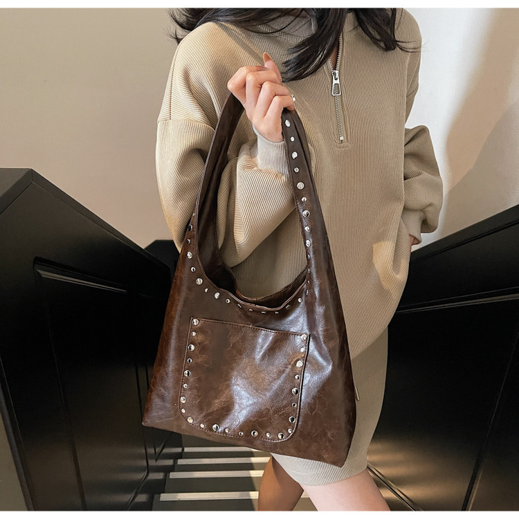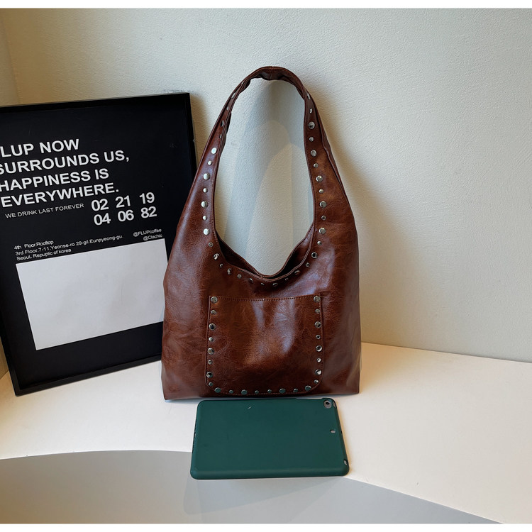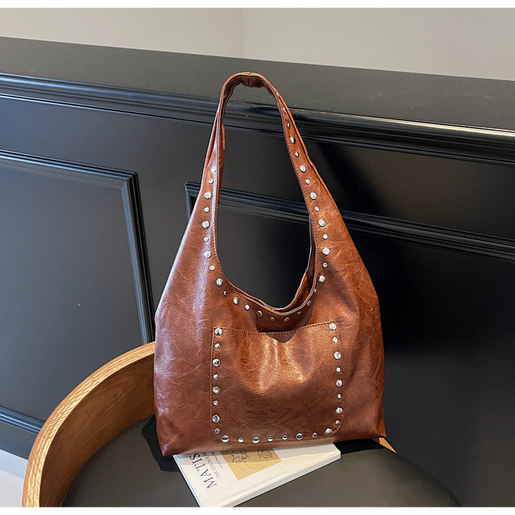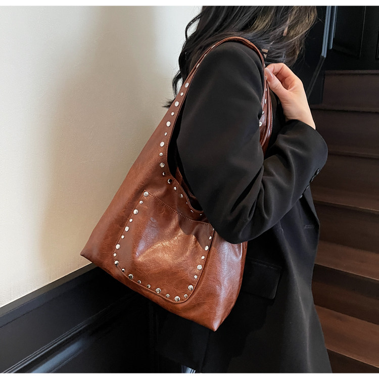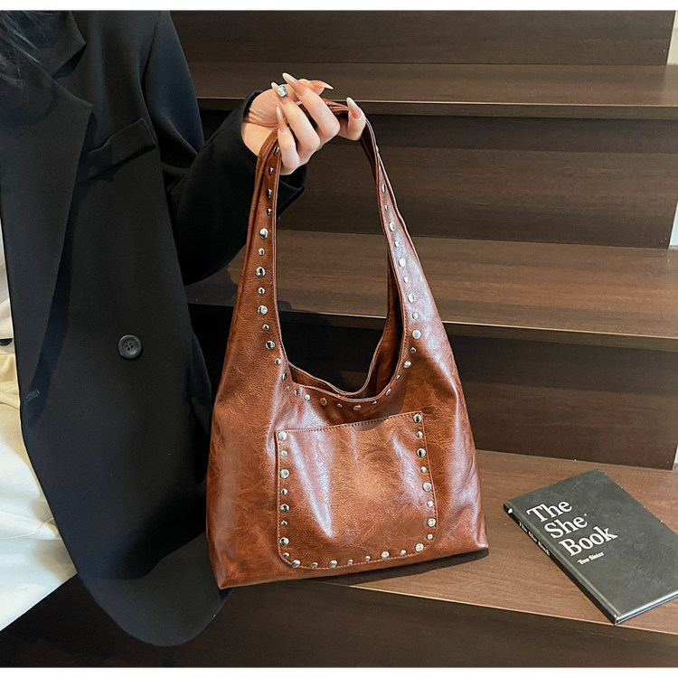 Large-Capacity Retro Underarm Bag for Women 2025 New Autumn and Winter Shoulder Bag Maillard Brown Commuter Tote Bag