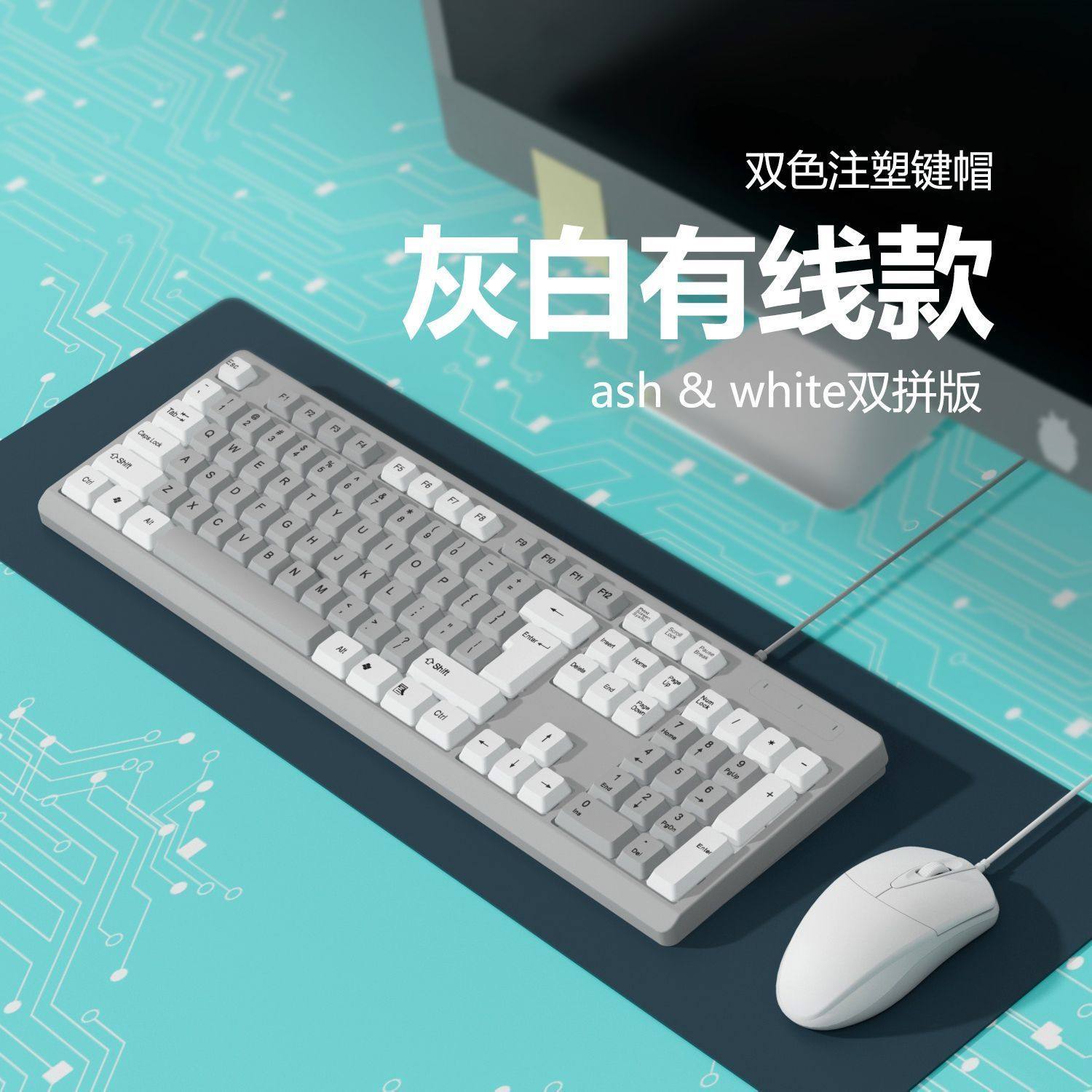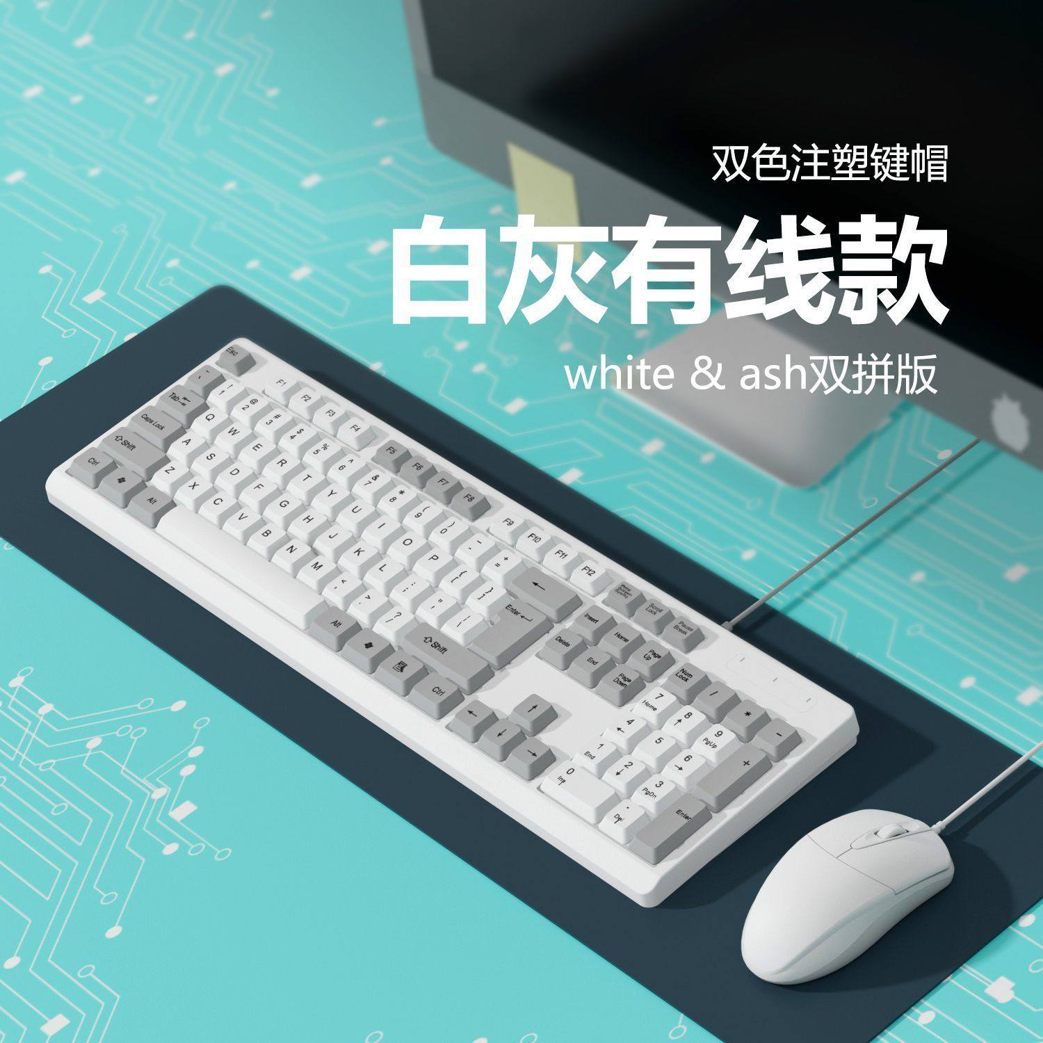 | Color Classification | White and Gray Double Single Keyboard,White and Gray Double Keyboard + Mouse,White and Gray Double Keyboard + Mouse + Small Black Pad,Gray and White Double Keyboard,Gray and White Double Keyboard + Mouse,Gray and White Double Keyboard + Mouse + Mouse Pad |