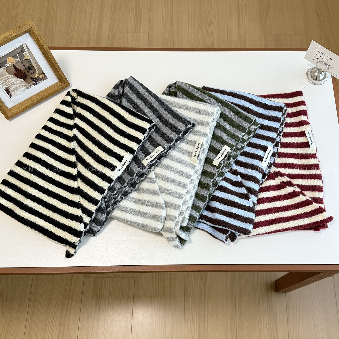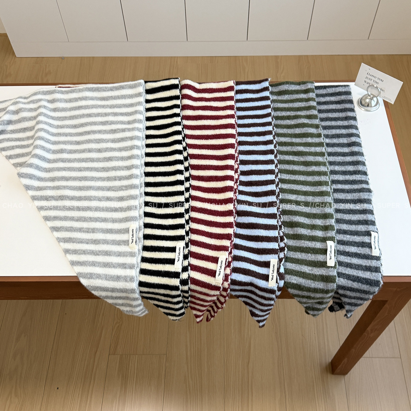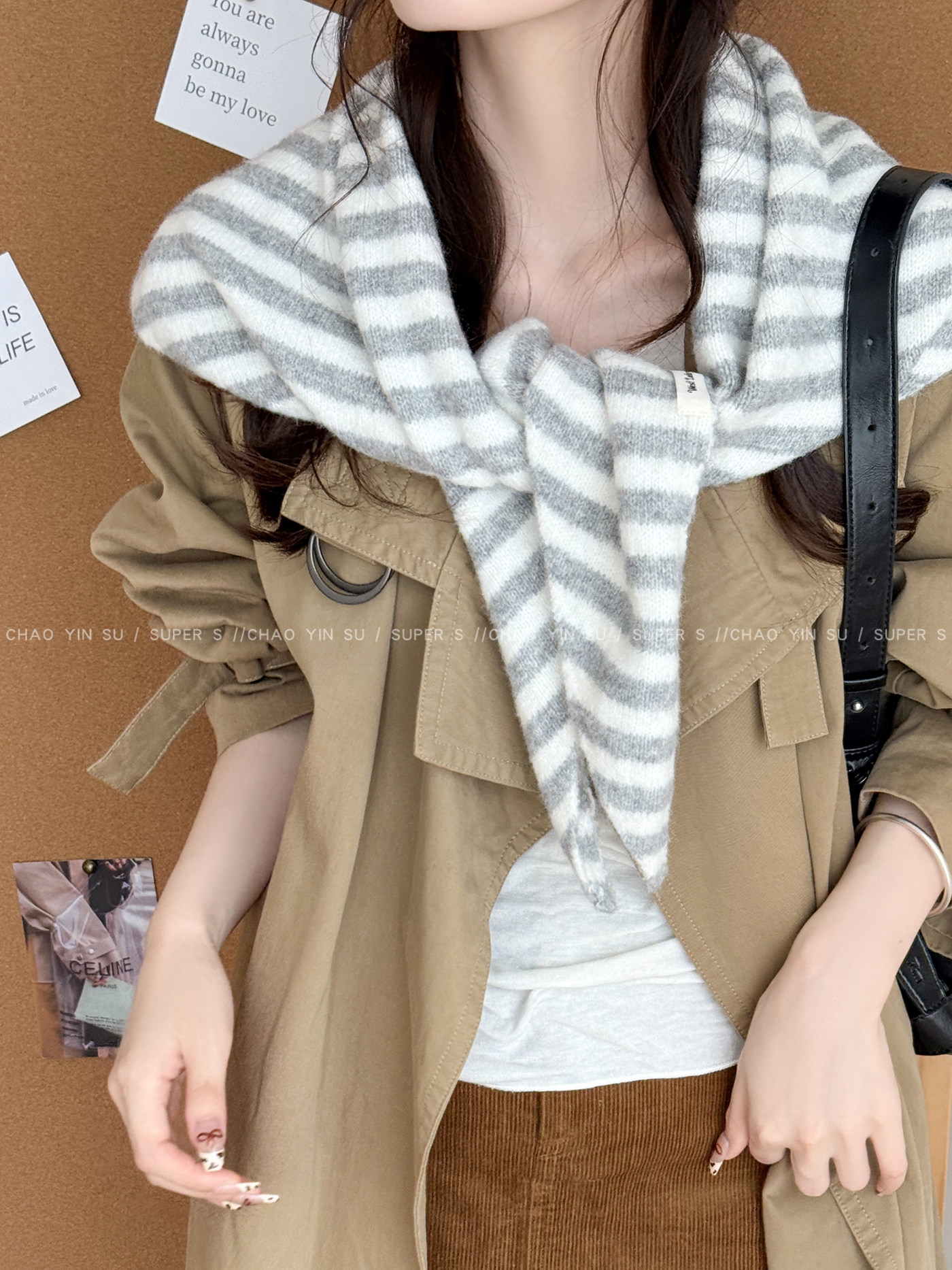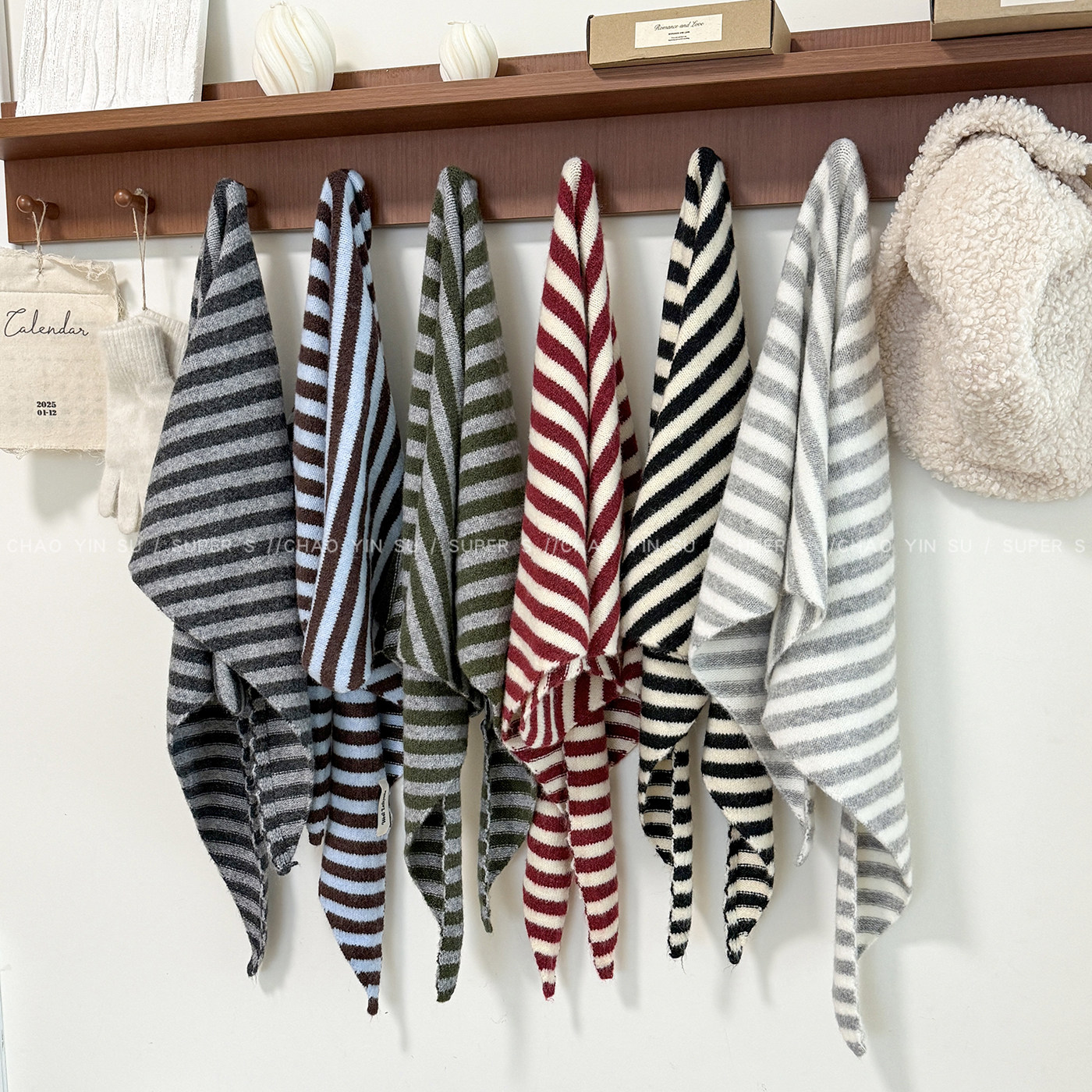 Korean-Style Striped Knitted Large Triangle Shawl for Women, Fashionable Autumn and Winter Outerwear, Neck Scarf, Warm Neck Protector, Neck Scarf Accessory