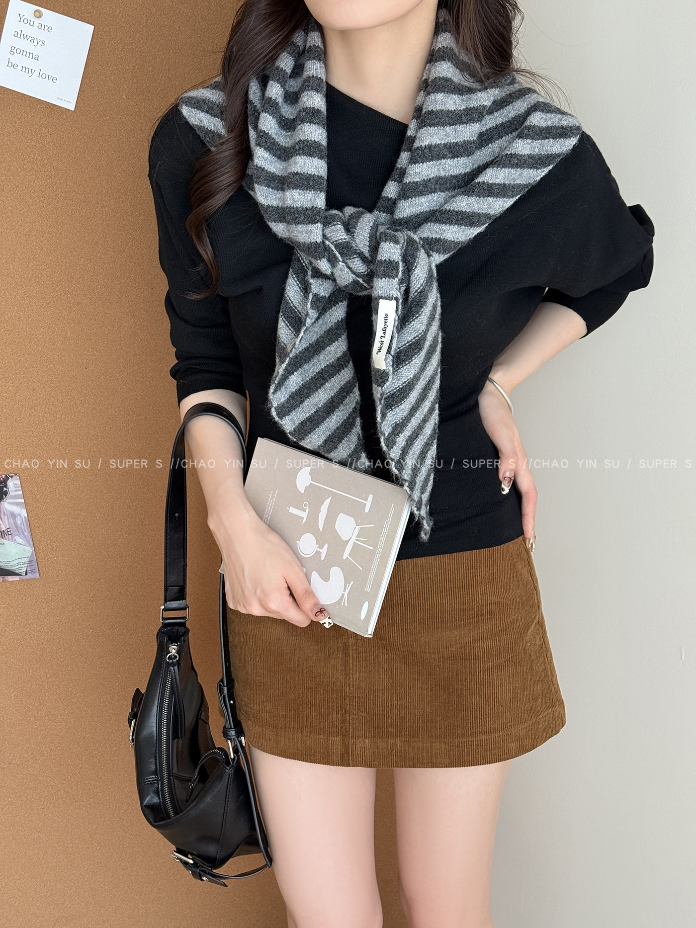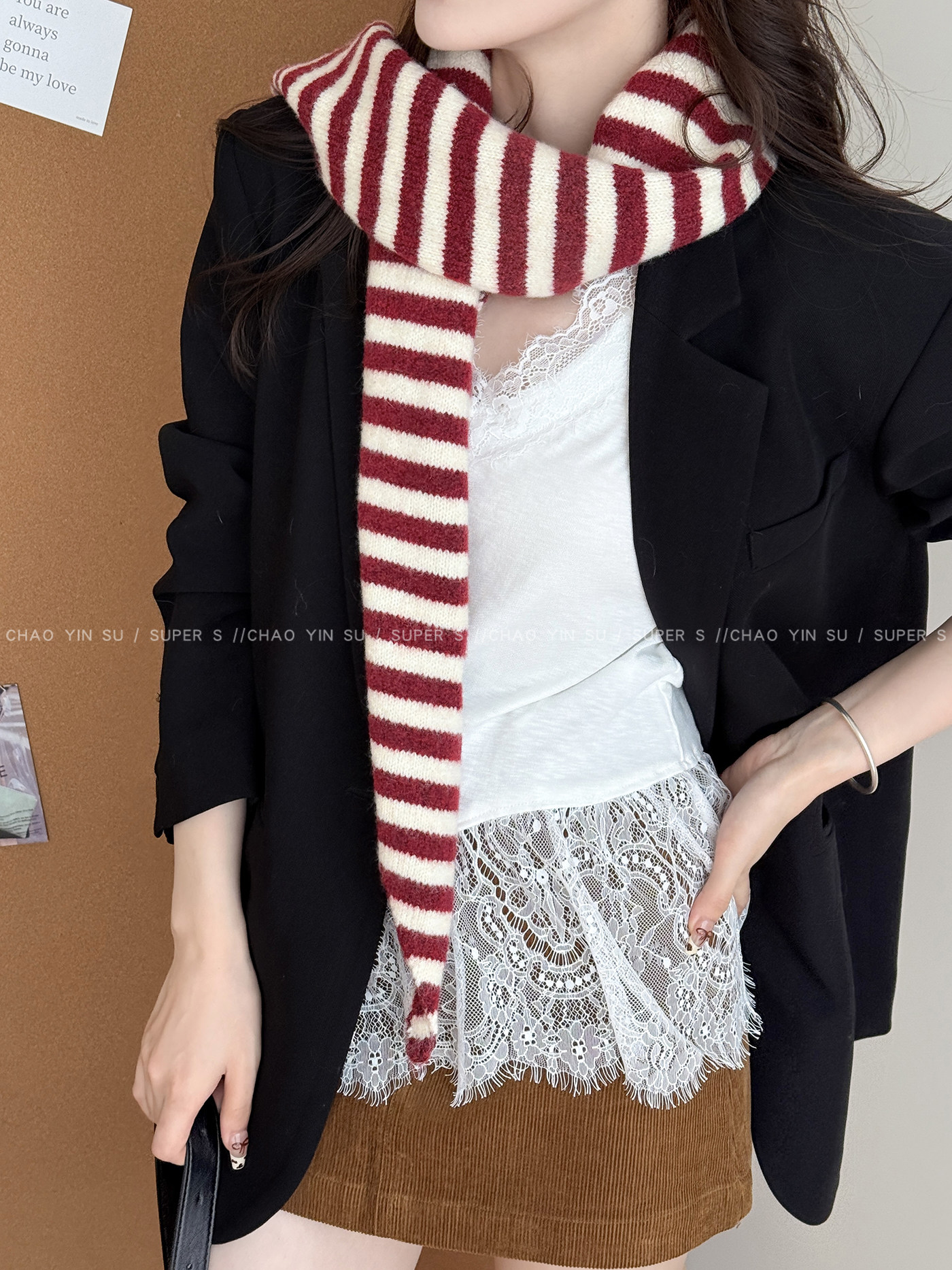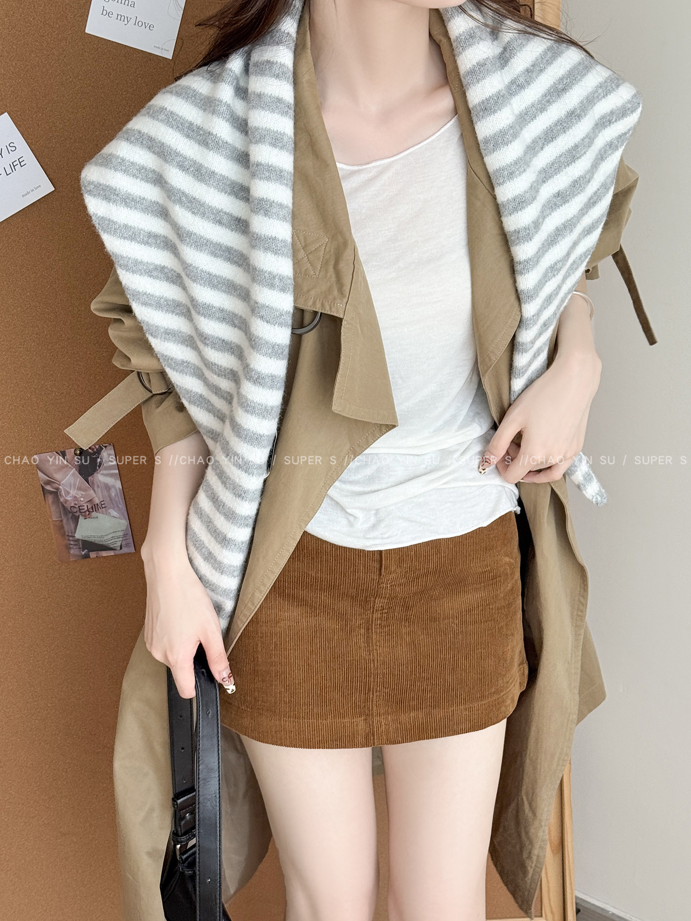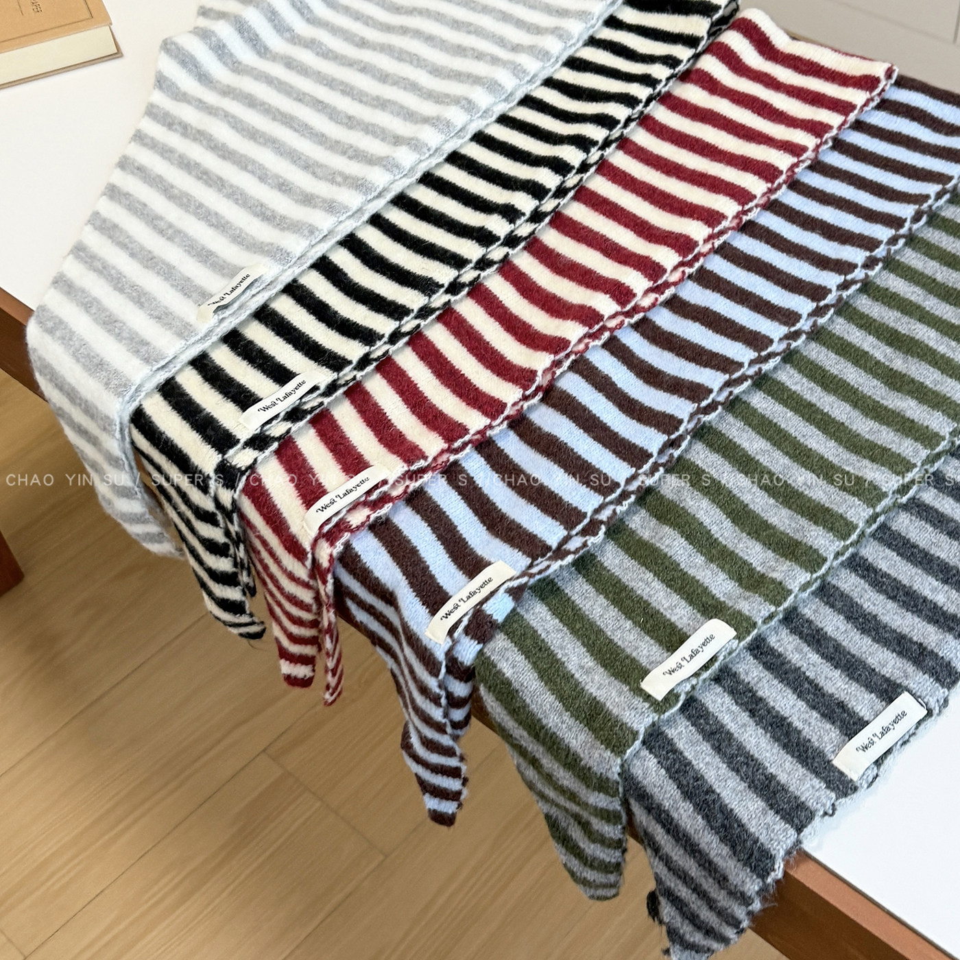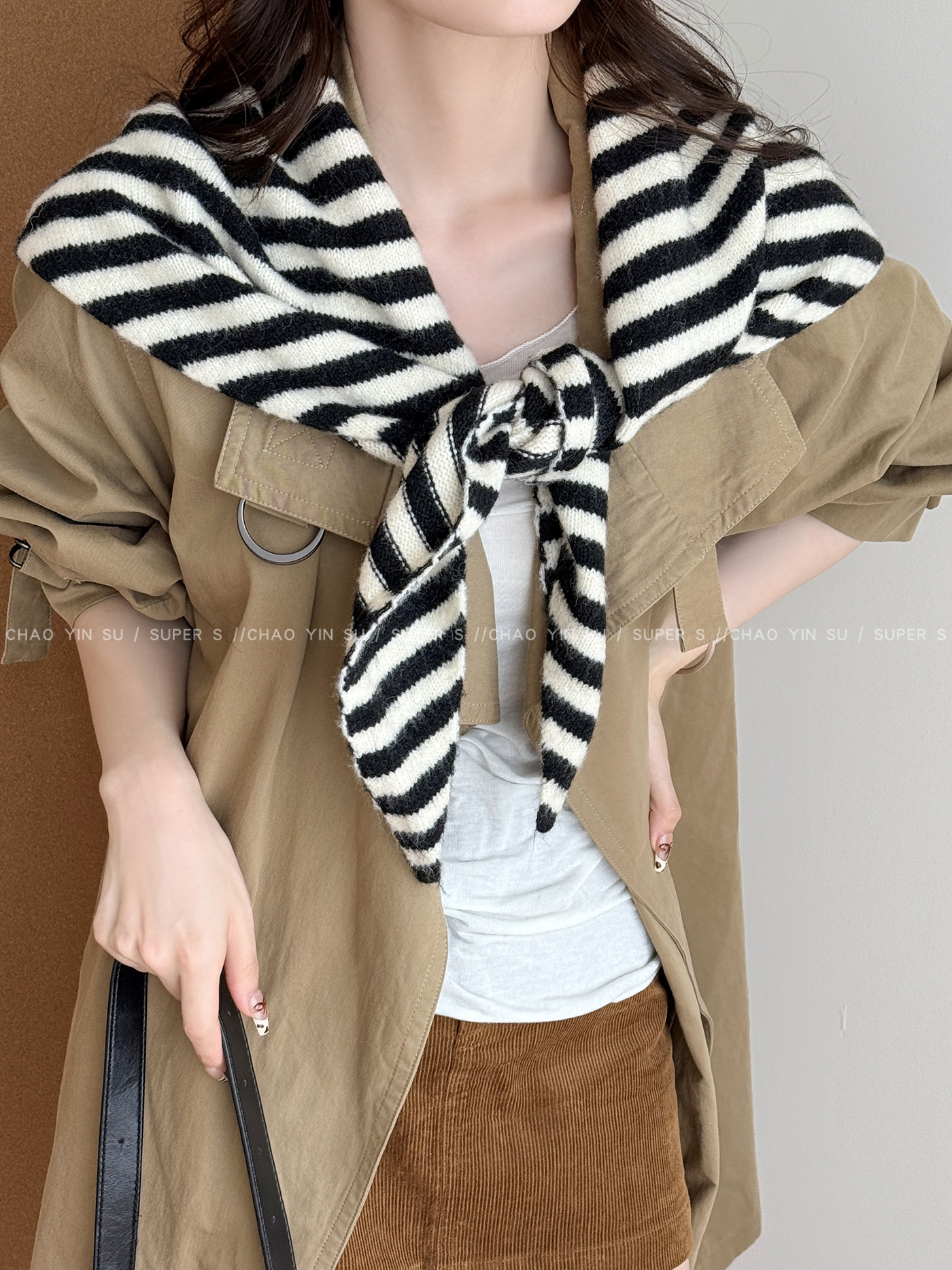 Korean-Style Striped Knitted Large Triangle Shawl for Women, Fashionable Autumn and Winter Outerwear, Neck Scarf, Warm Neck Protector, Neck Scarf Accessory