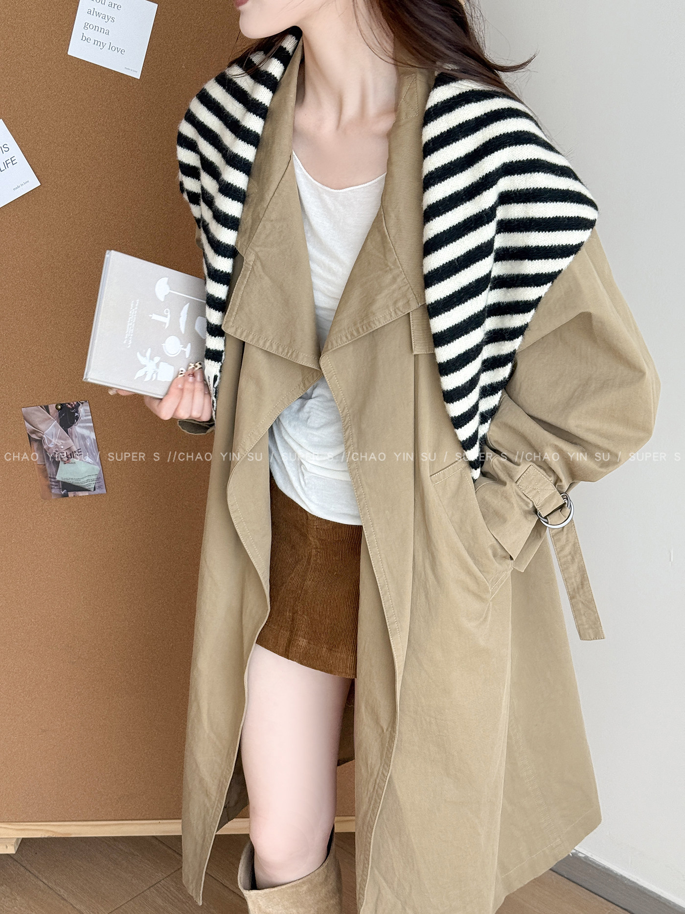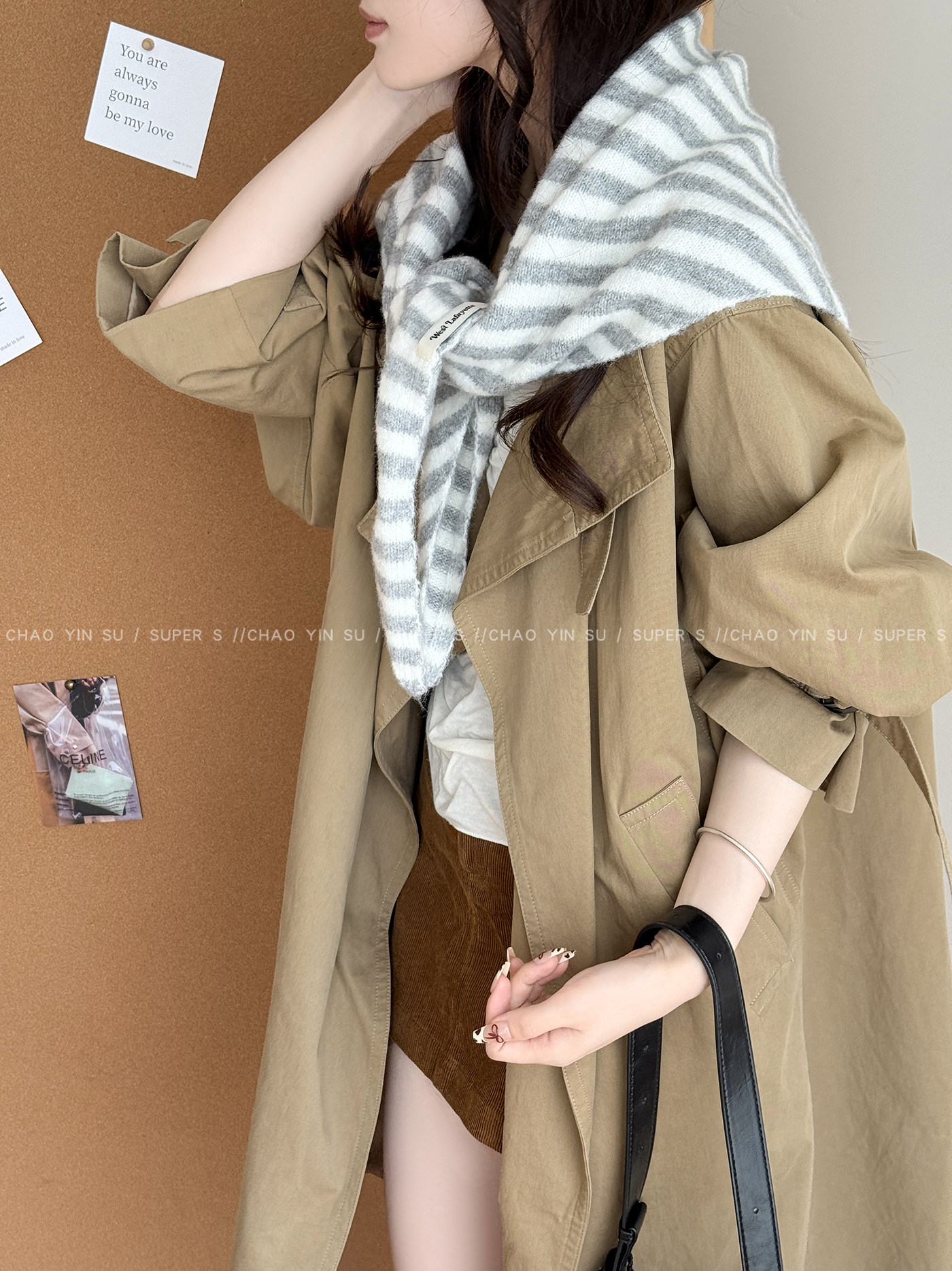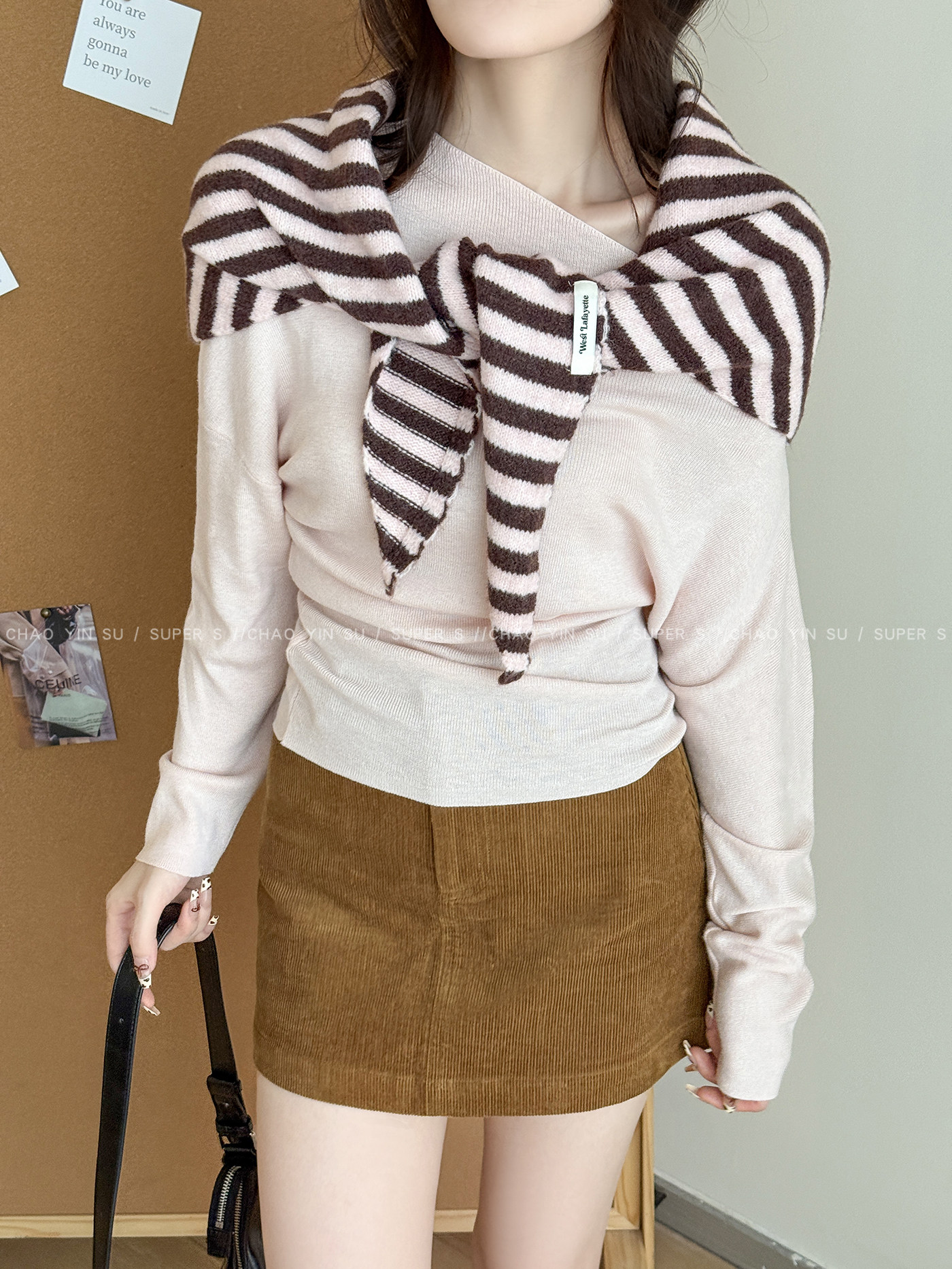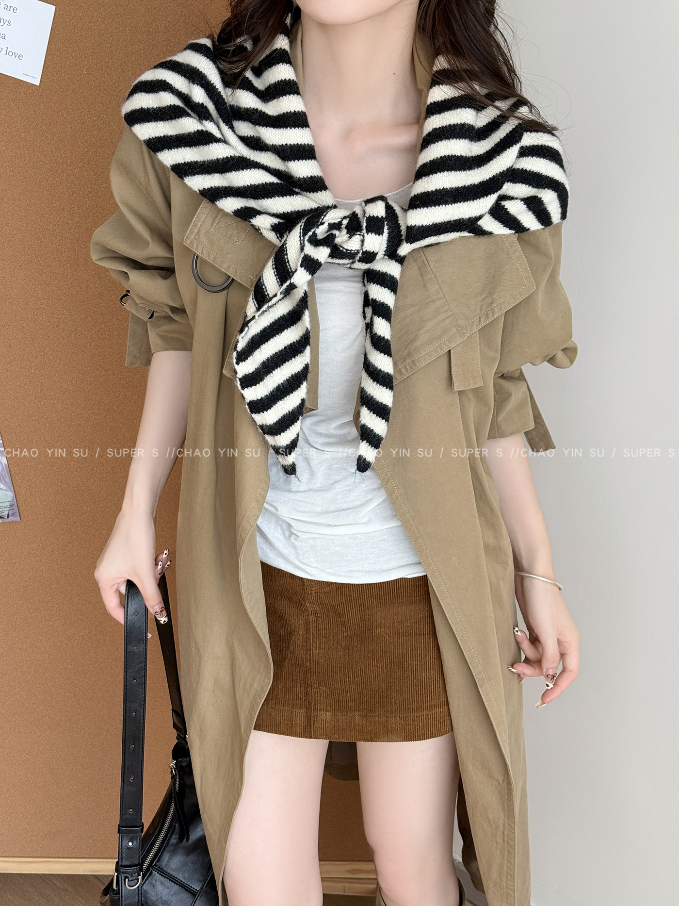 Korean-Style Striped Knitted Large Triangle Shawl for Women, Fashionable Autumn and Winter Outerwear, Neck Scarf, Warm Neck Protector, Neck Scarf Accessory