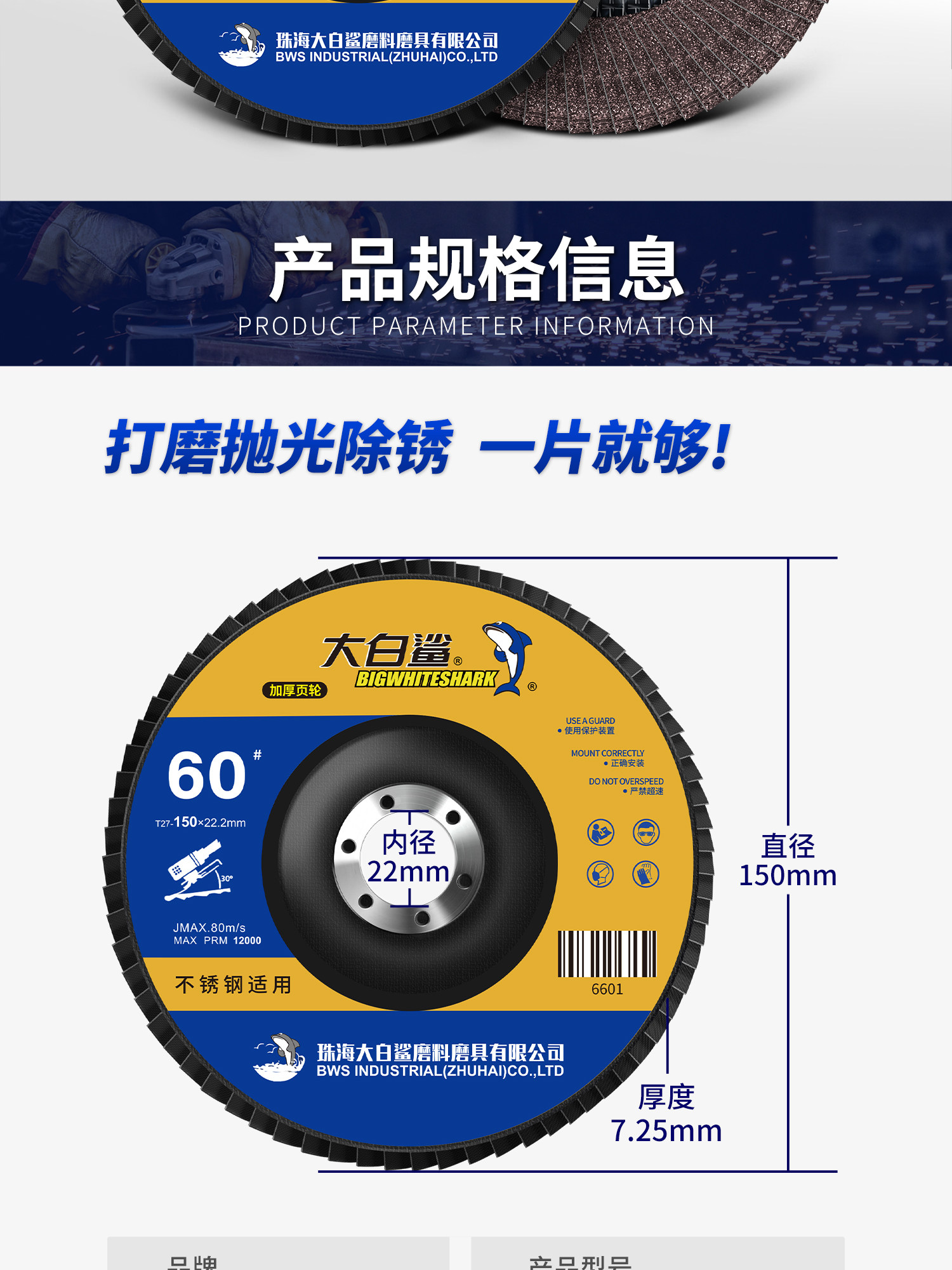 Great White Shark Flap Disc 150 Flap Disc Grinding Disc Polishing Sanding Cloth Wheel for Metal Stainless Steel Angle Grinder Sandpaper