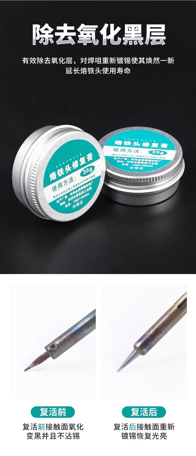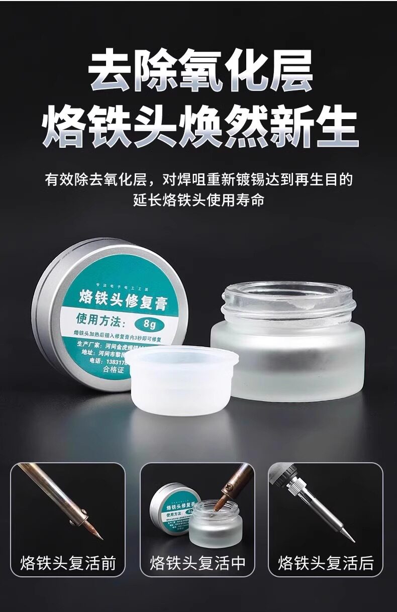 | Color Classification | [Aluminum Box] Repair Paste 6 Grams (One Box),[Glass Bottle] Repair Cream 8g (One Bottle).,[Aluminum Box] Repair Paste 16 Grams (One Box),[Aluminum Box] Repair Paste 30g. (One Box).,Soldering Tip Repair Cleaner. [One Box] |