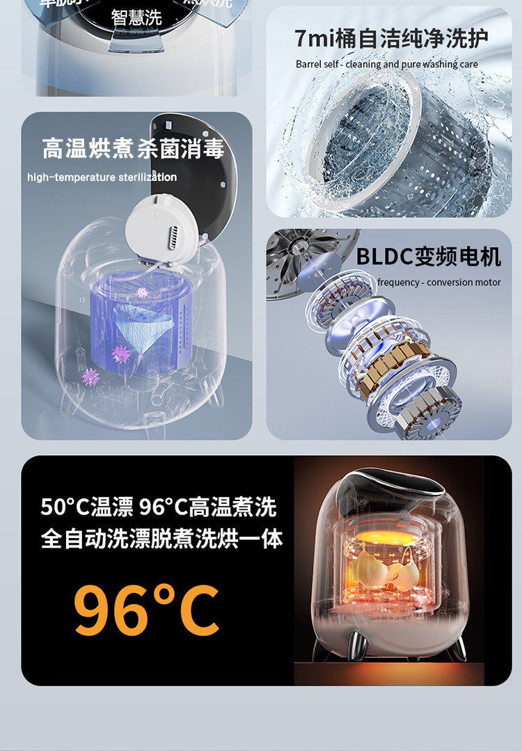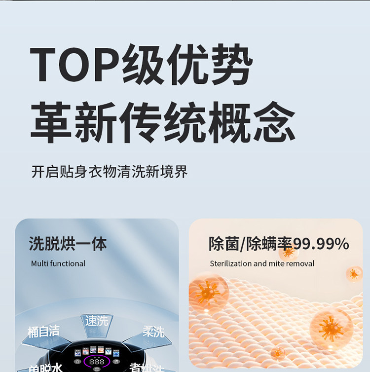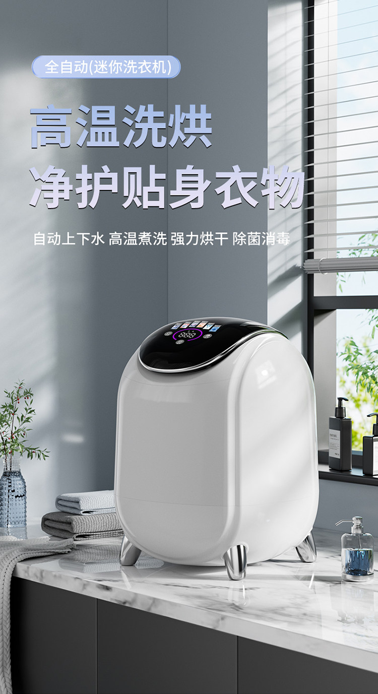 Underwear Washing Machine, Fully Automatic, Small, Integrated Washing, Drying, and Sterilizing Machine, Special for Underwear, Mini Sock Cleaning Machine, High Temperature Sterilization