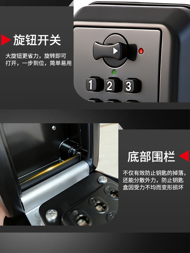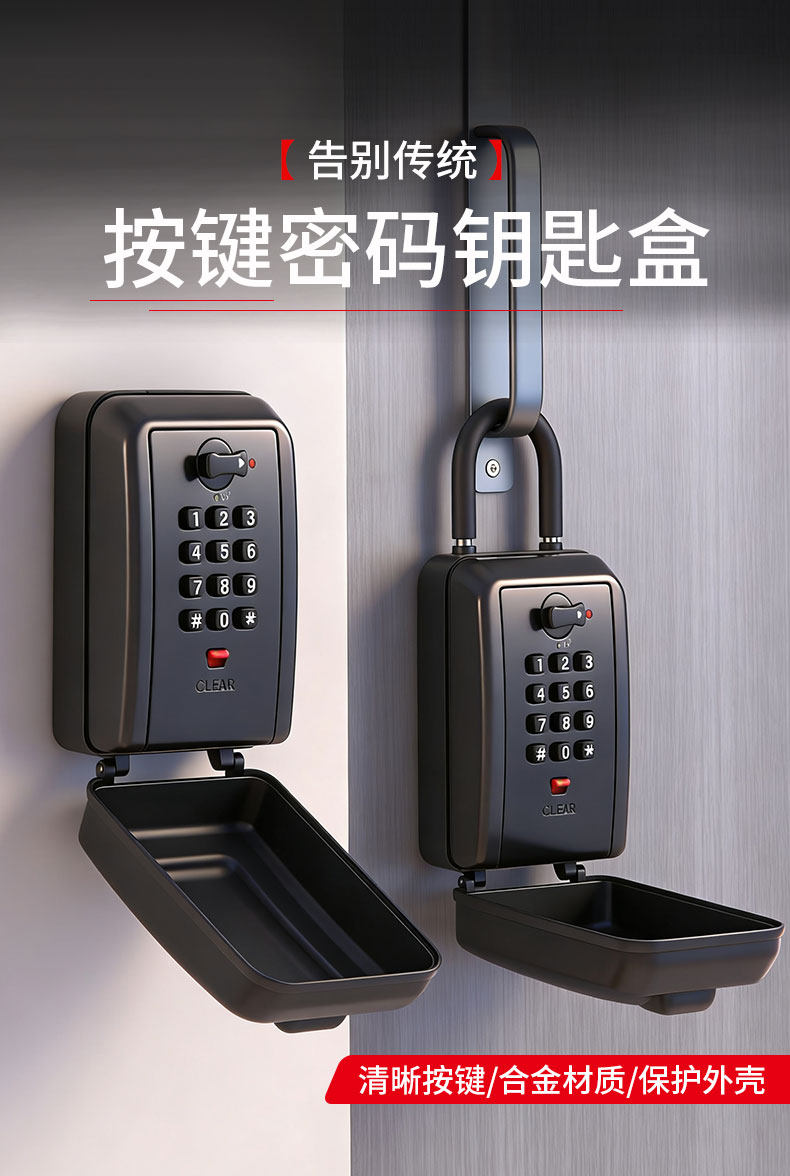 Button-Type Password Key Box for Home Decoration and Outdoor Use, Temporary Key Storage, All-Metal Waterproof Password Lock Box