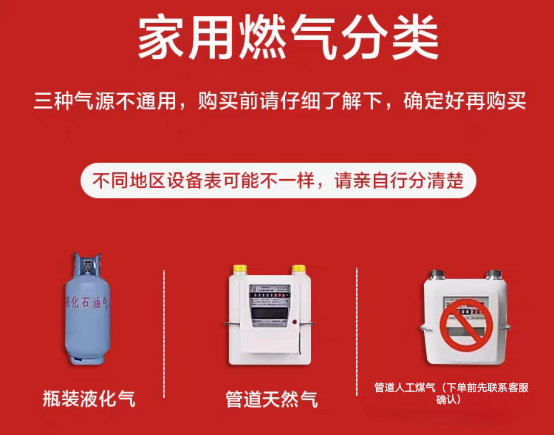 | Fuel Type | Liquefied Petroleum Gas (Canned Gas)/Natural Gas (Pipeline Gas) |