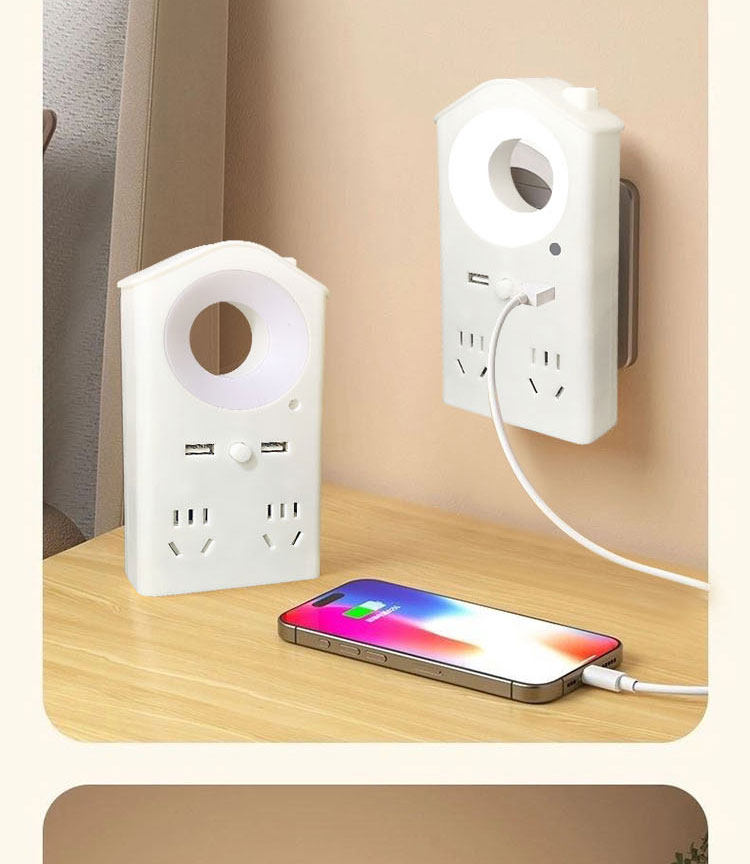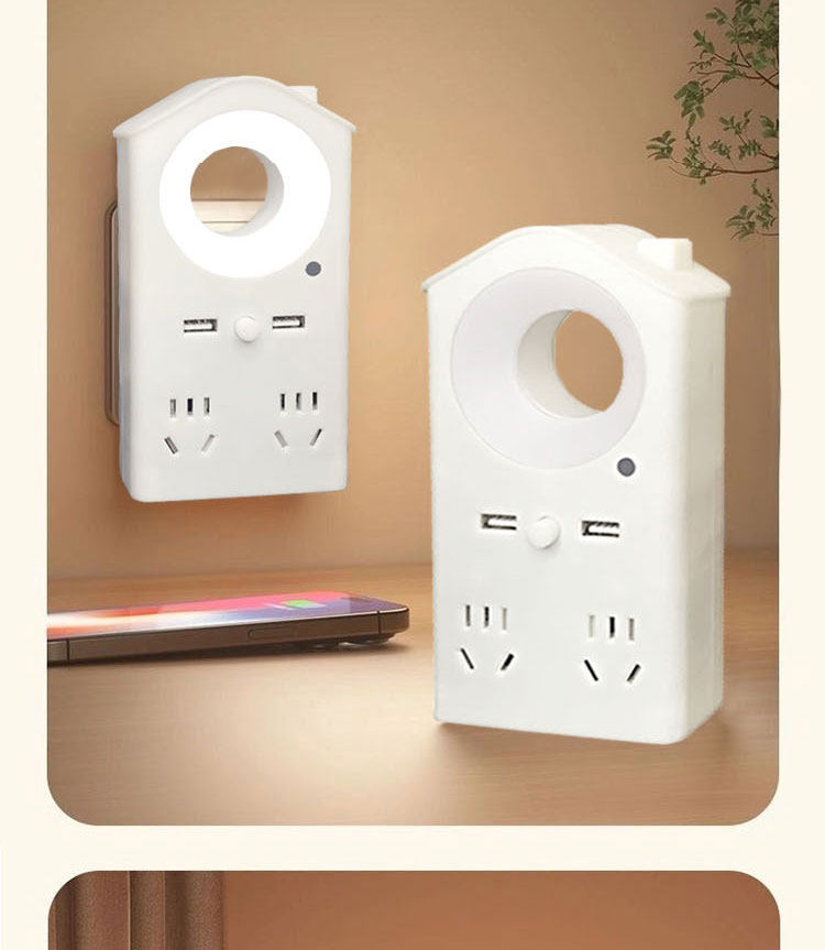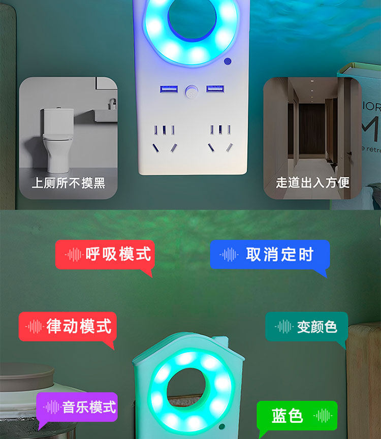 Voice-Activated Night Light, Voice-Controlled Led Light, Multi-Color Light, USB Charging Port, Socket Converter for Dormitory