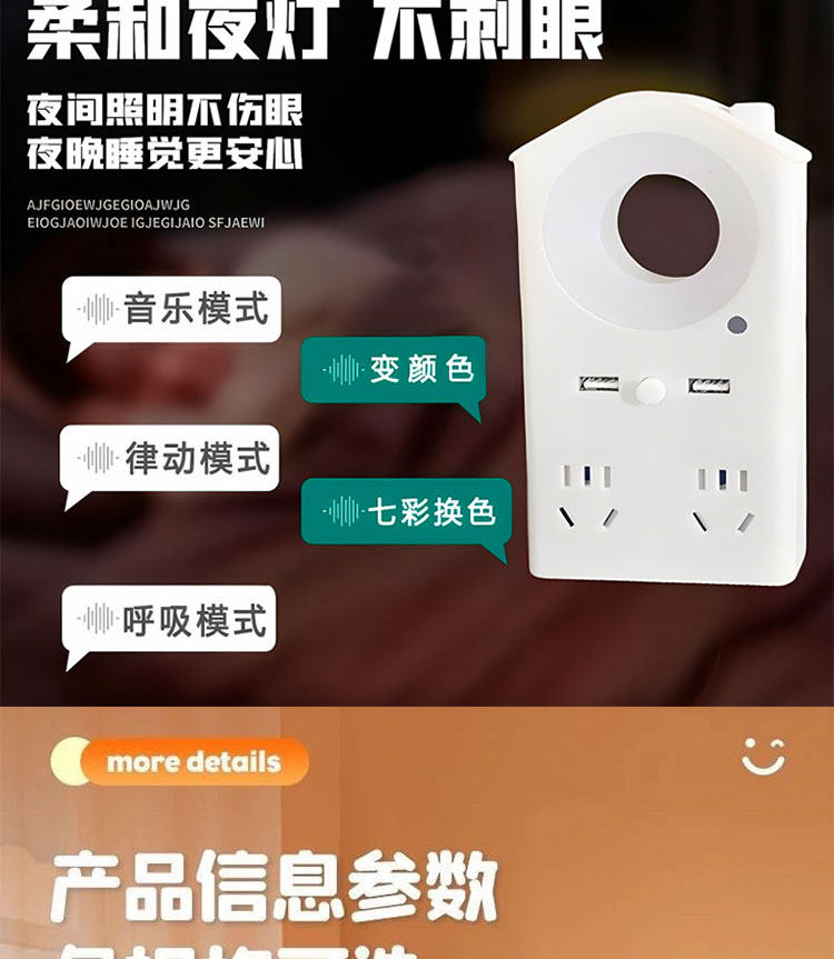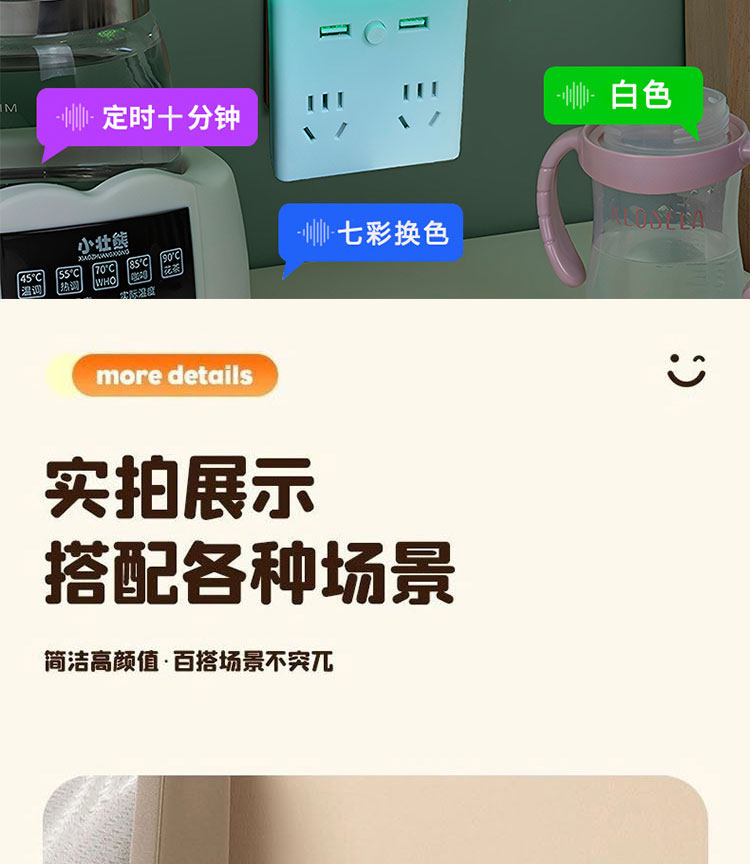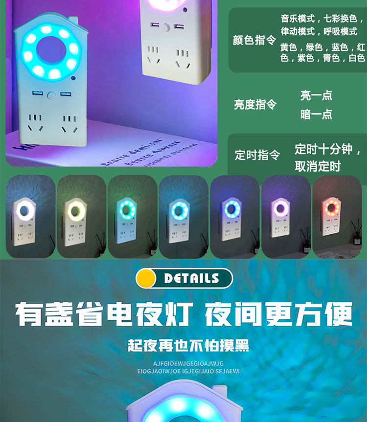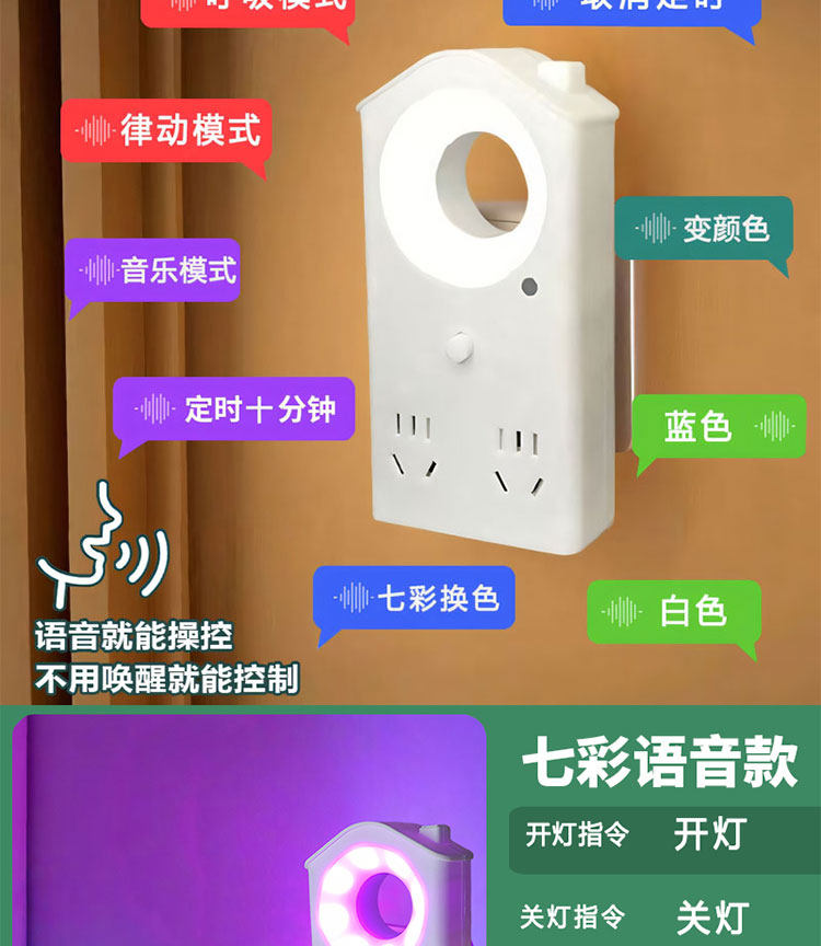 | Color Classification | Voice Model [4 Sockets + 2 USB + Colorful Lights],Voice Model [4 Sockets + 2 USB + Three Levels of Color Temperature],Non-Voice Model [4 Sockets + 2 USB + Three Levels of Color Temperature],Non-Voice Model [4 Sockets + Three Levels of Color Temperature],Night Light-Free Pure Socket Model [2 Outlets] Pure Copper Surge Protector |