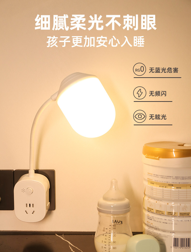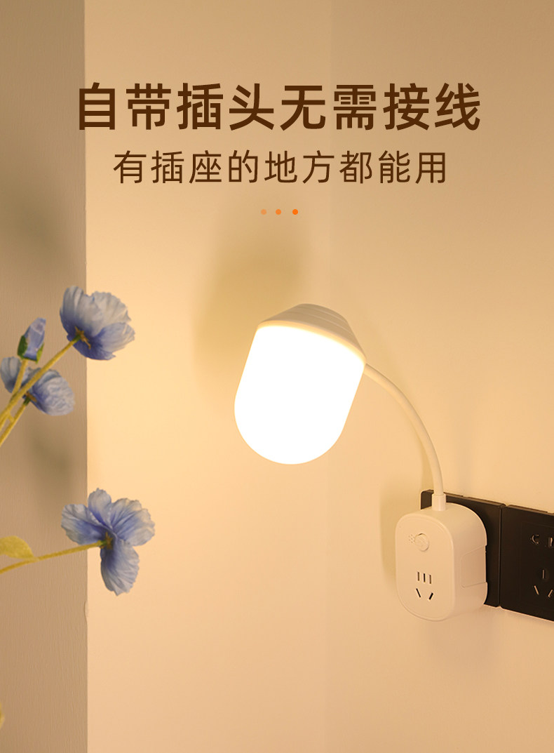 Voice-Controlled Night Light, Voice-Activated Led Light Strip, Plug-In USB Charging Port Socket Converter for Home, Dormitory, and Students
