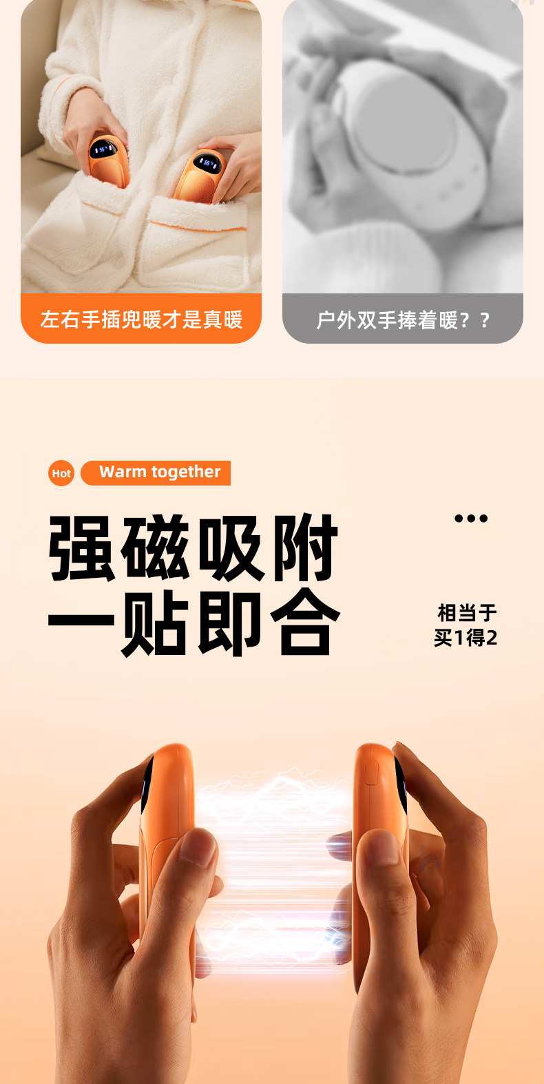 2025 New Hand Warmer, Hand-Held Self-Heating Magnetic 2-in-1 Mini Hand Warmer, Student Hand Warmer Gadget