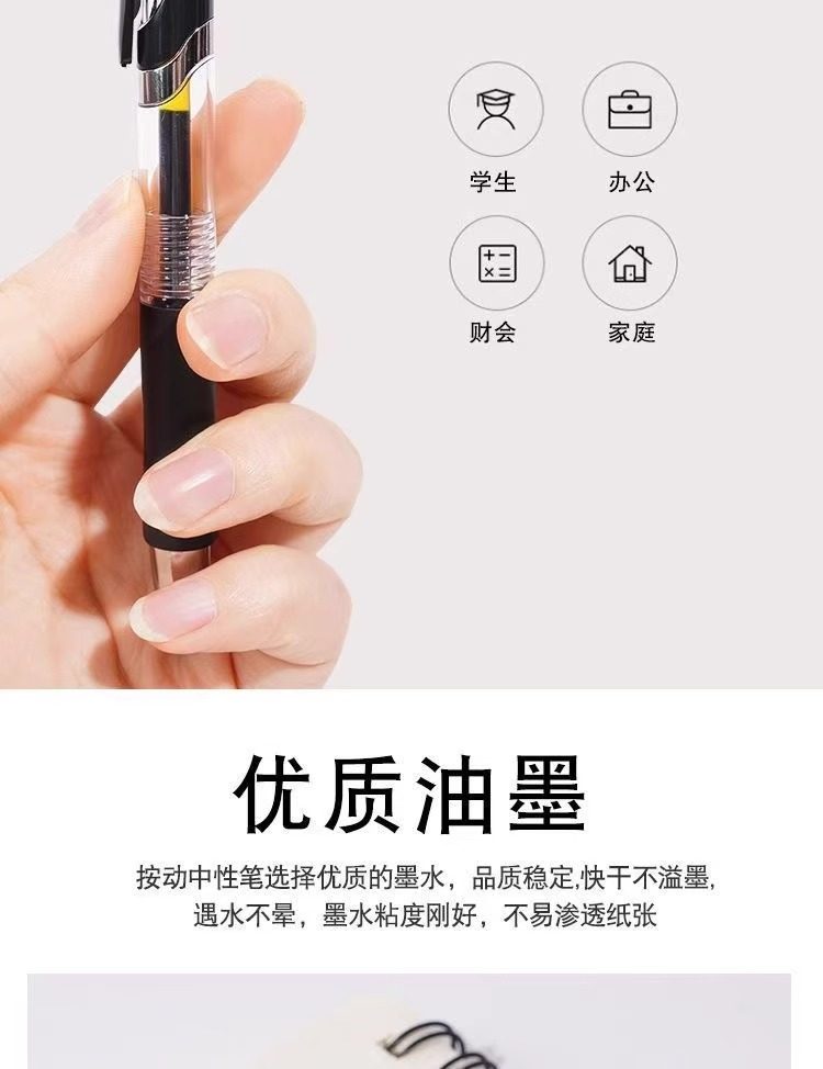Press-Type Gel Pen Ballpoint Pen Stationery Black Signature Pen Refill 0.5mm Bullet Tip Office Stationery Quick-Drying Office Writing Ballpoint Pen