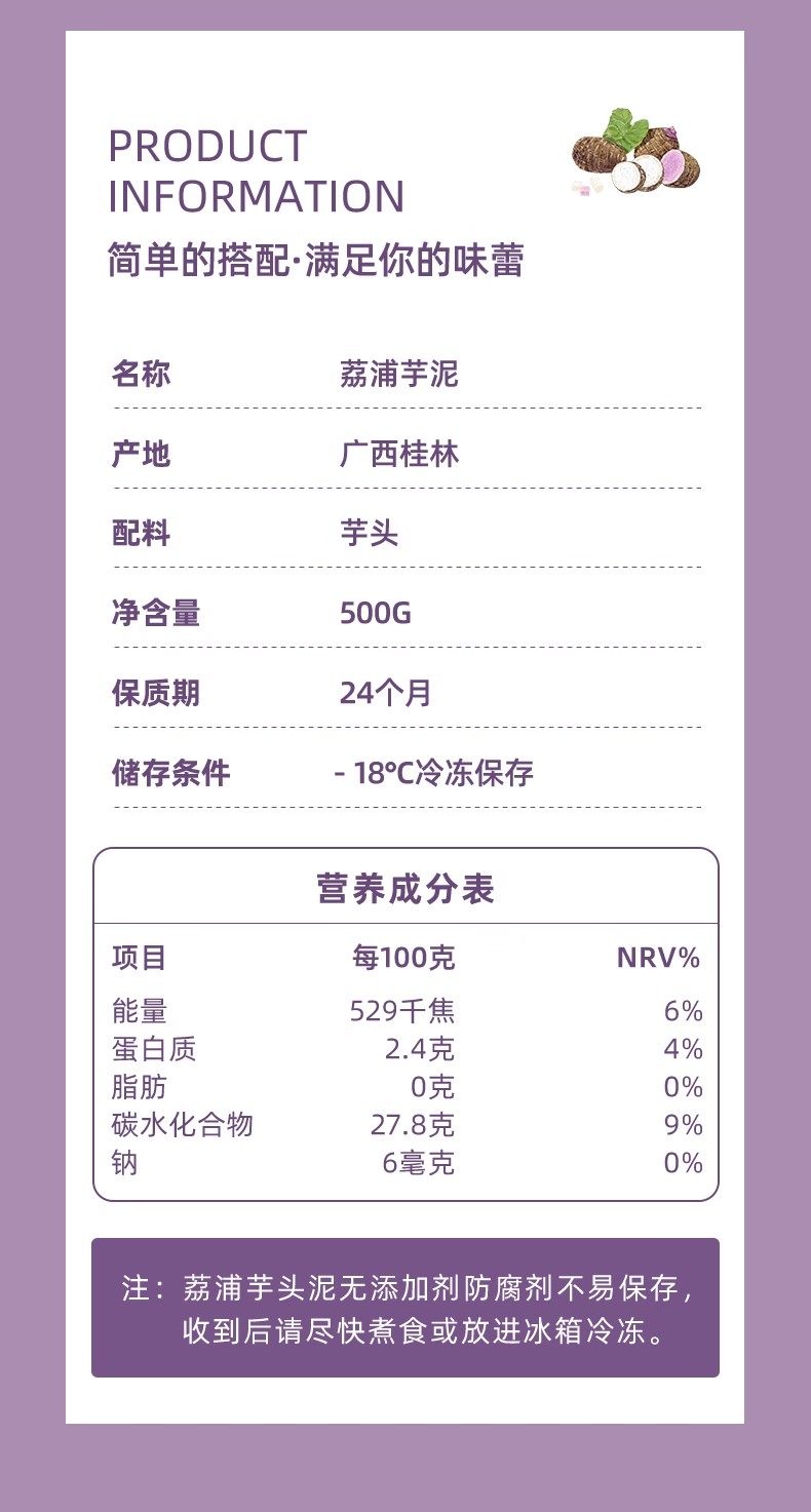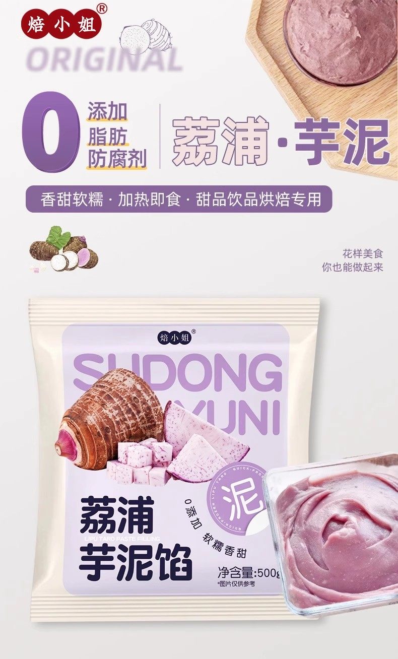 Lipu Taro Paste Filling for Commercial Baking, Low-Fat Semi-Finished Product, 0 Added Sugar, Frozen Taro Paste Cake Filling for Milk Tea