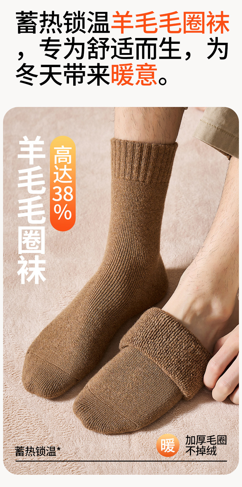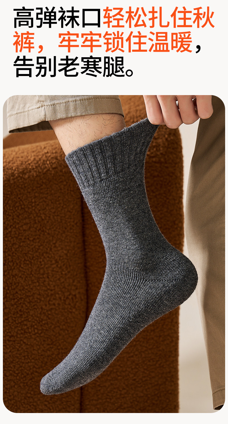 Wool Socks for Men, Anti-Athlete's Foot, Anti-Odor, Pure Cotton Mid-Calf Socks, Men's Youth Autumn and Winter Thickened Warm Terry Socks