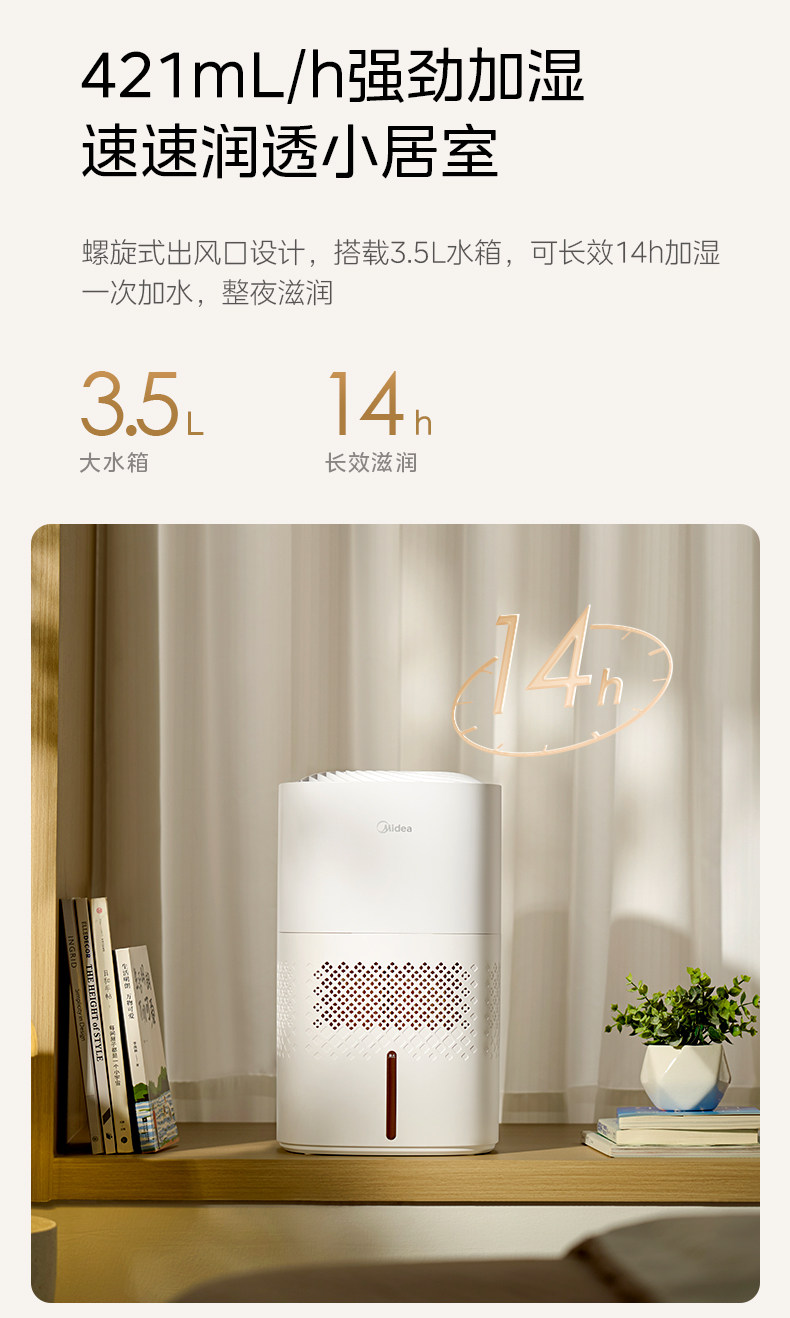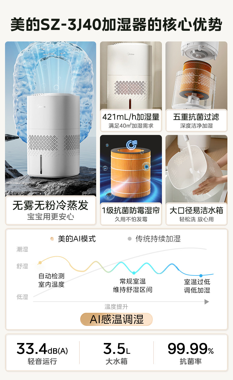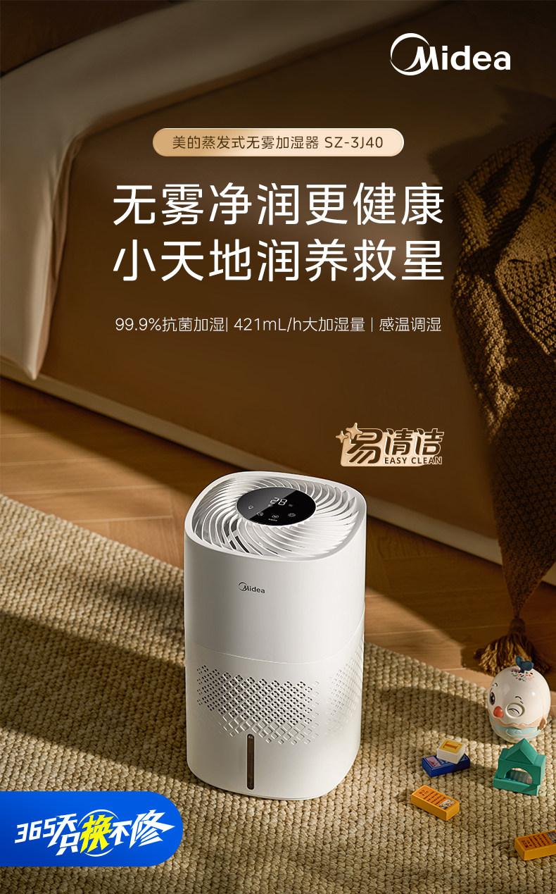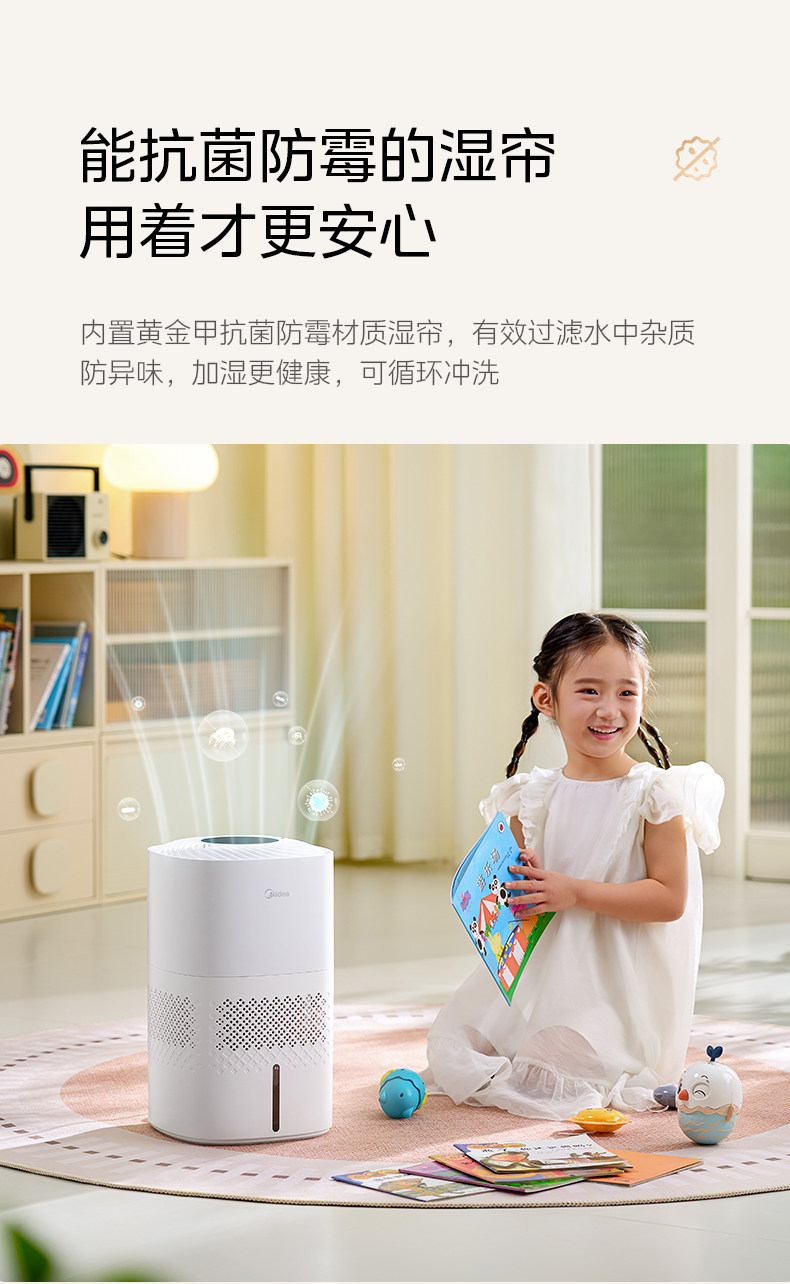 Midea Fog-Free Humidifier 3J40 for Home Use in Living Room and Bedroom, Quiet Antibacterial Air Humidifying Sprayer, 2025 New Model