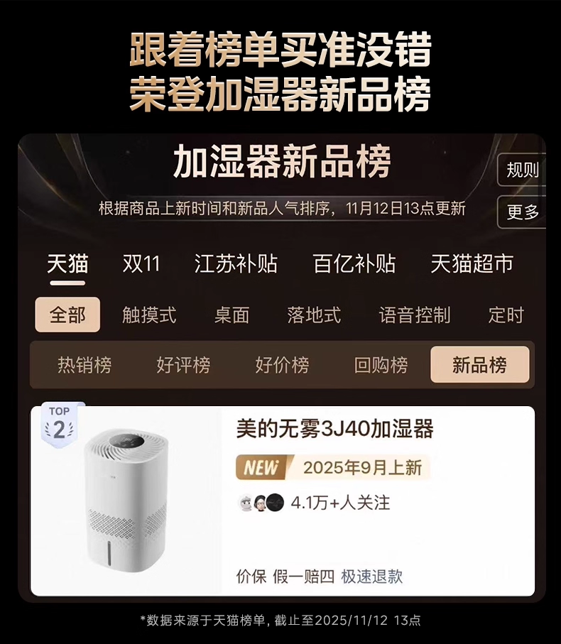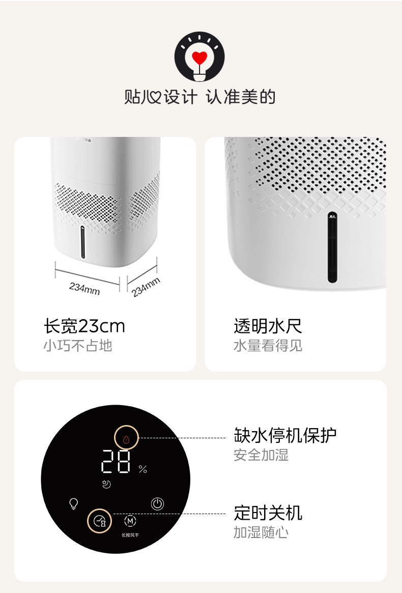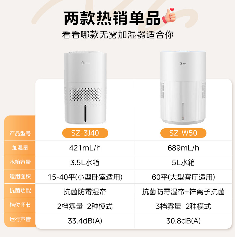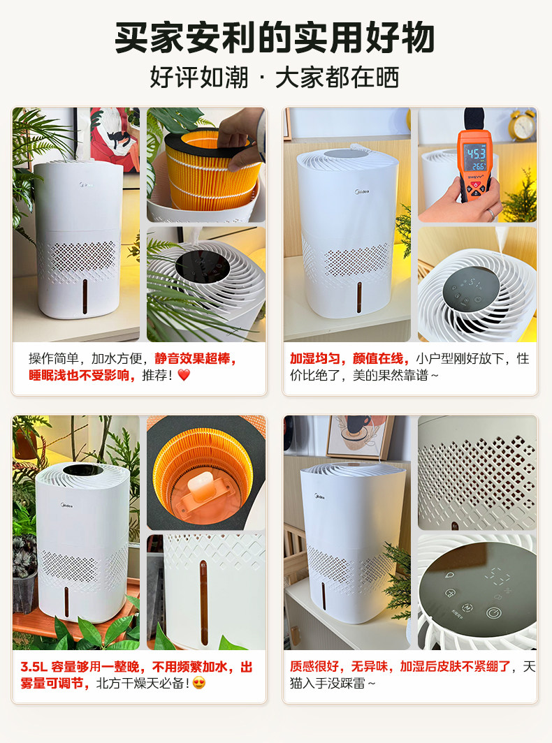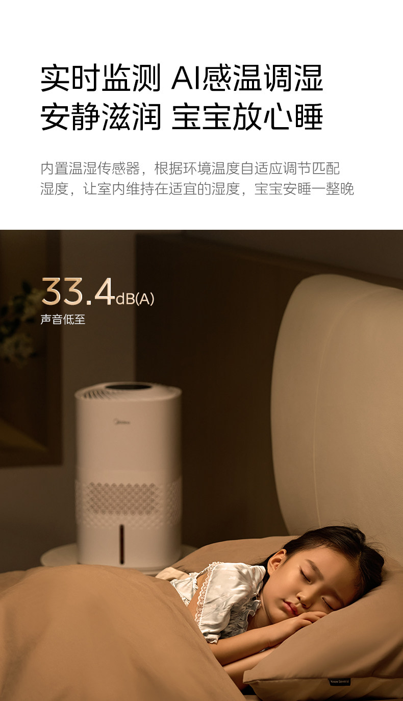 Midea Fog-Free Humidifier 3J40 for Home Use in Living Room and Bedroom, Quiet Antibacterial Air Humidifying Sprayer, 2025 New Model