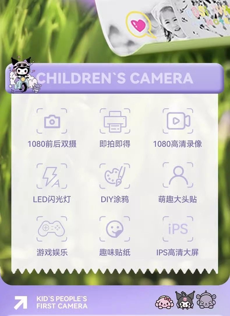 Polaroid Children's Camera Can Take Pictures, Print Videos, High-Definition Camera, Student Girl Birthday Gift Kuromi