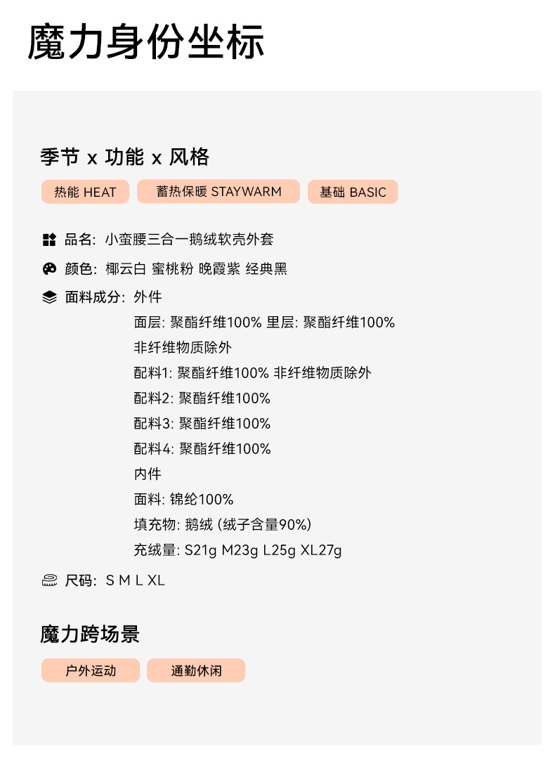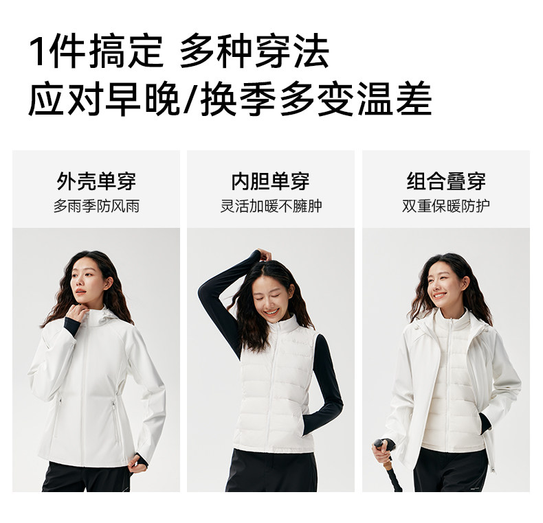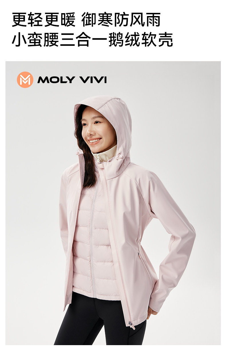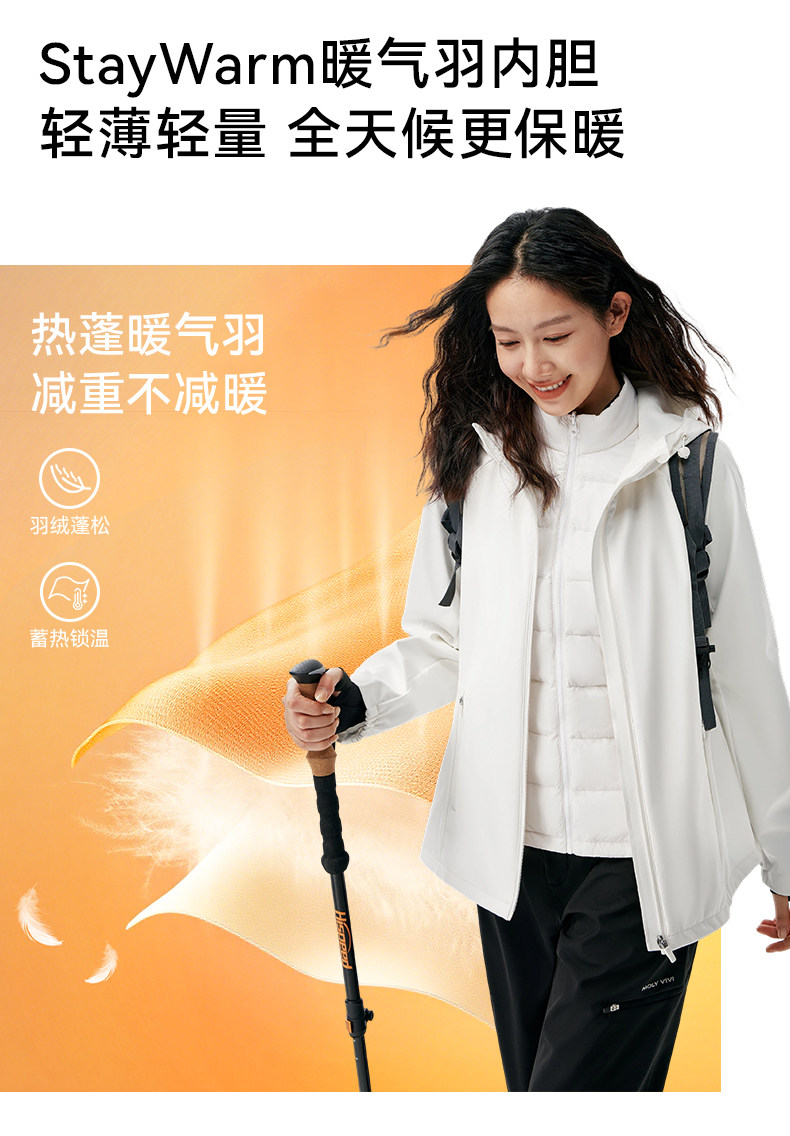 Magic Weiwei Slim Waist Goose down Jacket for Women 2025 Winter New Windproof Waterproof 3-in-1 Softshell Coat