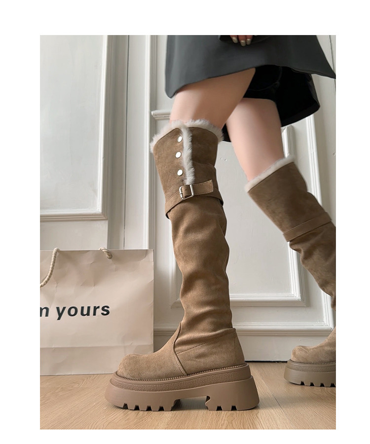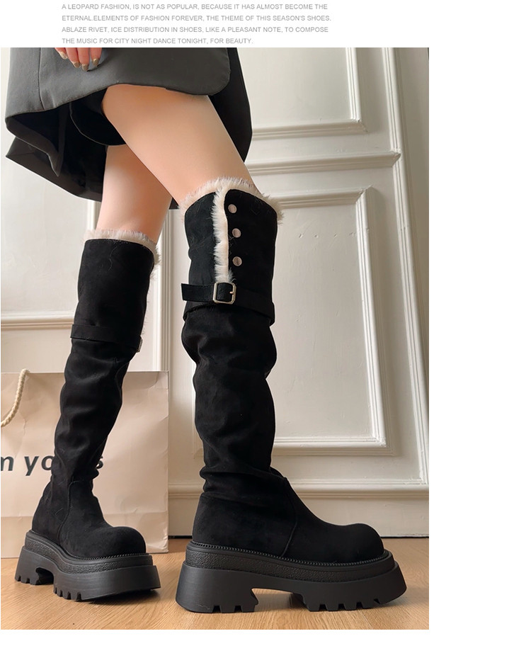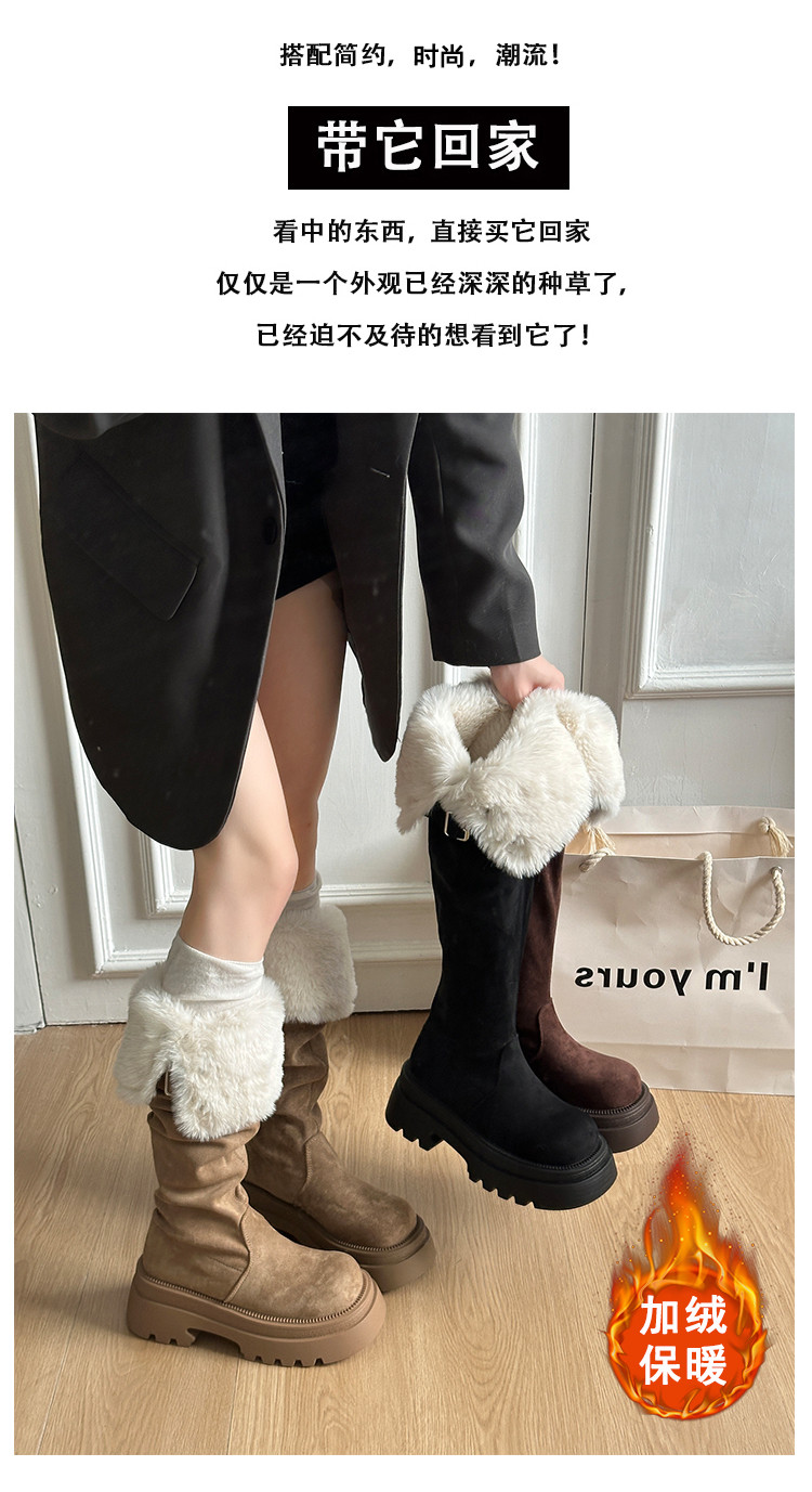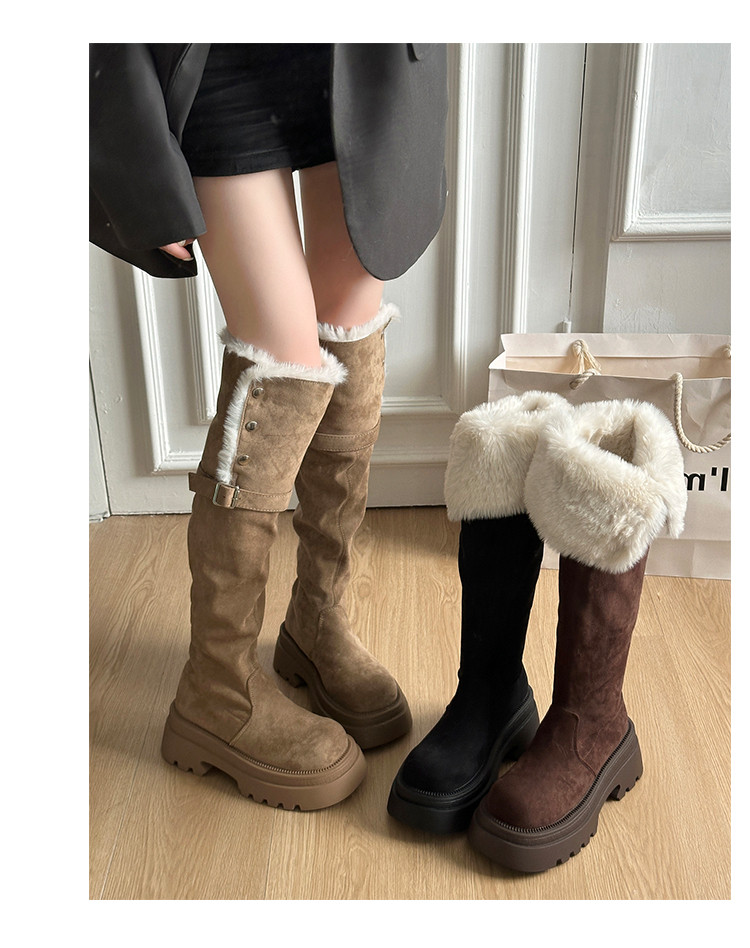Retro Thick-Soled Fleece-Lined Snow Boots for Women 2025 New Popular Winter Warm Long Boots Northeast Cotton Boots