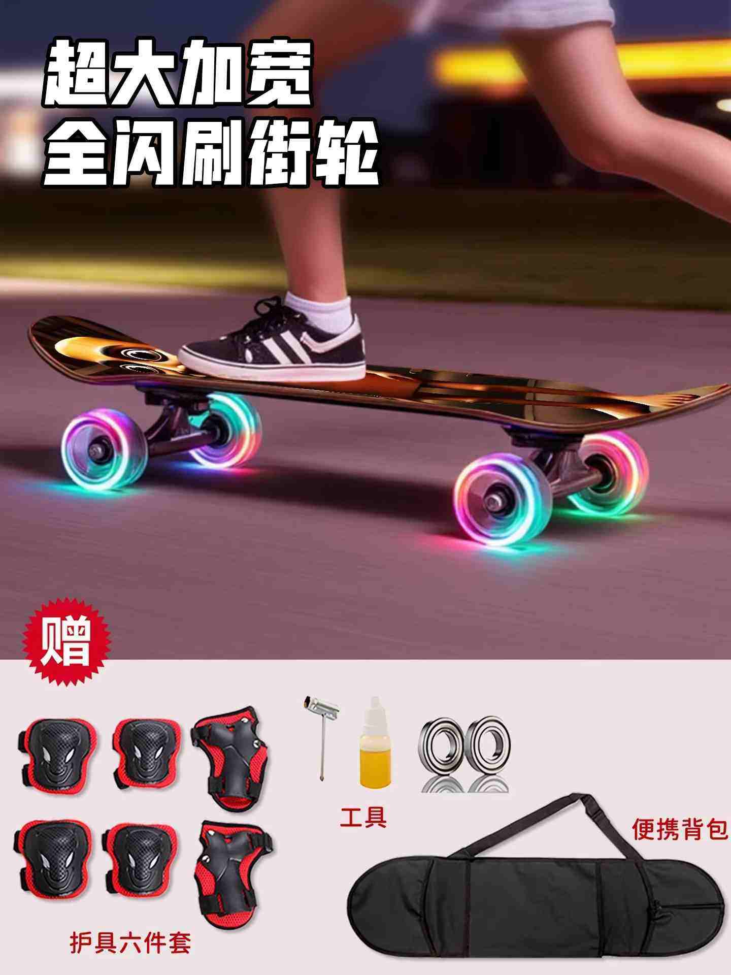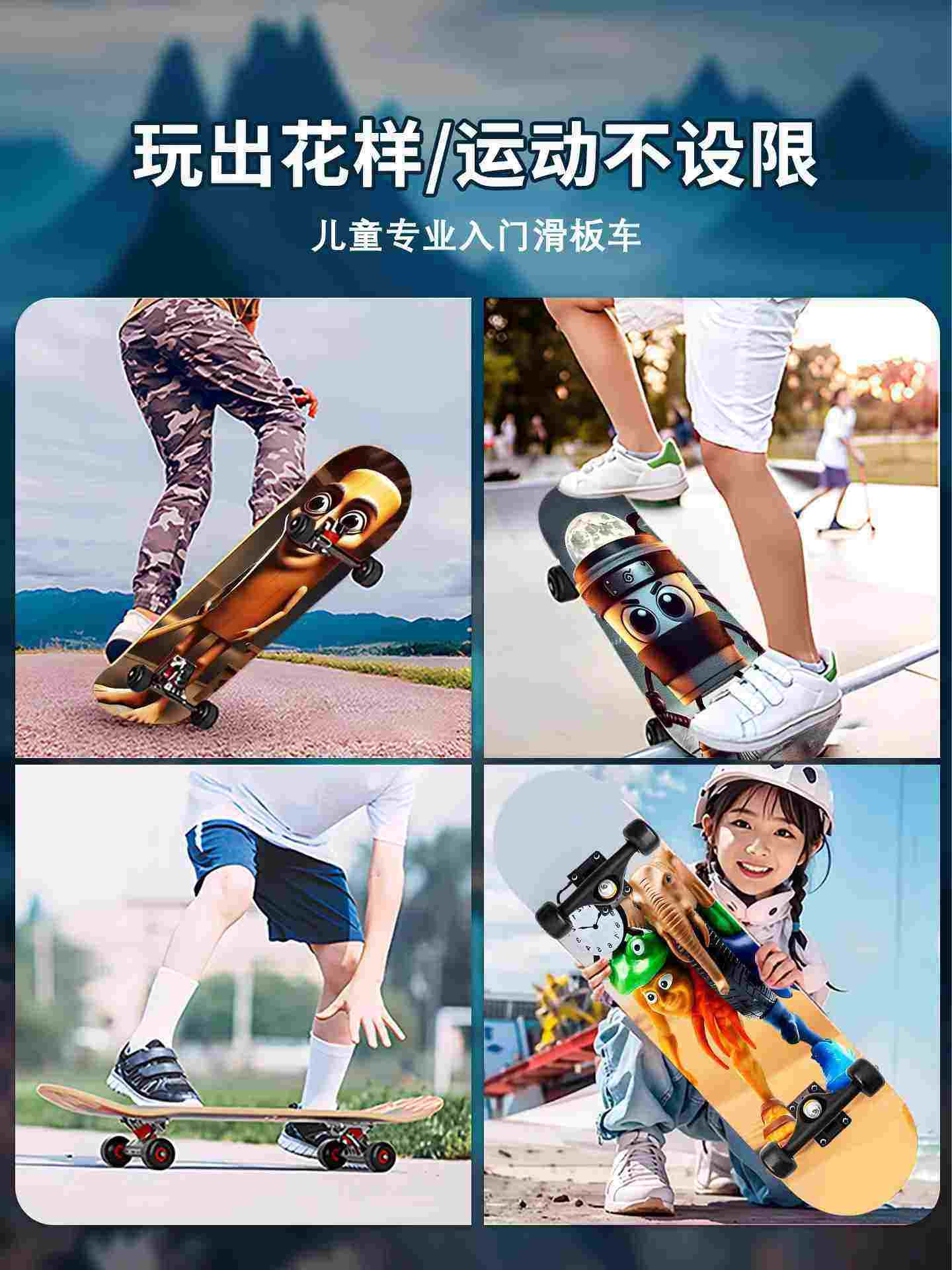 2025 New Model Shanhaijing Children's Skateboard for Boys and Girls, Beginner Youth Four-Wheel Scooter for 6-12 Year Old Primary School Students