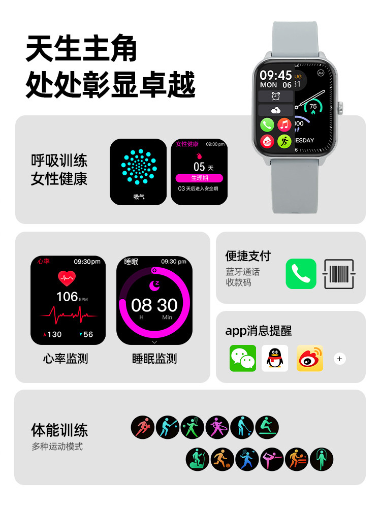 | Appearance Color | Upgraded Mini Starlight: [Bluetooth Calling/Wechat Chat/Dual Payment/Local Music/One-Key Recording/Ai Assistant/Movement & Health Tracking, Etc.],Upgraded Mini Silver Powder [Bluetooth Calling/Wechat Chat/Dual Payment/Local Music/One-Key Recording/Ai Assistant/Movement & Health, Etc.],Upgraded Mini Black [Bluetooth Calls/Wechat Chat/Dual Payment/Local Music/One-Click Recording/Ai Assistant/Movement and Health, Etc.],Upgraded Mini Silver [Bluetooth Calls/Wechat Chat/Dual Payment/Local Music/One-Click Recording/Ai Assistant/Movement and Health, Etc.],Upgraded Mini Silver Yellow [Bluetooth Calling/Wechat Chat/Dual Payment/Local Music/One-Key Recording/Ai Assistant/Movement & Health, Etc.],Tz06 Silver Gray [Bluetooth Call/Message Reminder/Alipay/Ai Assistant/Sports and Health, Etc.],Tz06 Silver White [Bluetooth Call/Message Reminder/Alipay/Ai Assistant/Sports and Health, Etc.],Tz06 Rose Gold Powder [Bluetooth Call/Message Reminder/Alipay/Ai Assistant/Sports and Health, Etc.],Tz06 Rose Gold Red [Bluetooth Call/Message Reminder/Alipay/Ai Assistant/Sports and Health, Etc.],Tz06 Simple Black [Bluetooth Call/Message Reminder/Alipay/Ai Assistant/Sports and Health, Etc.] |