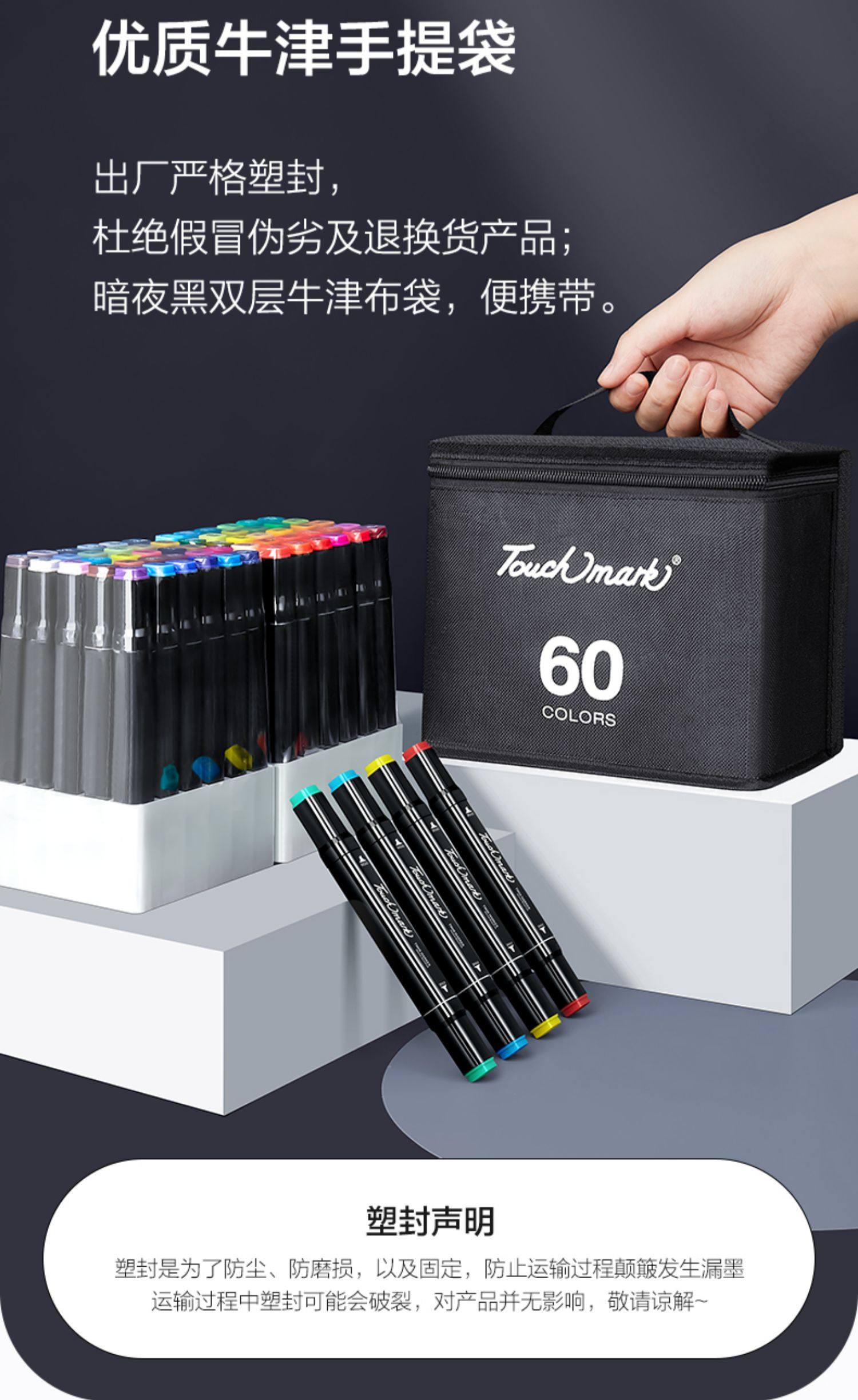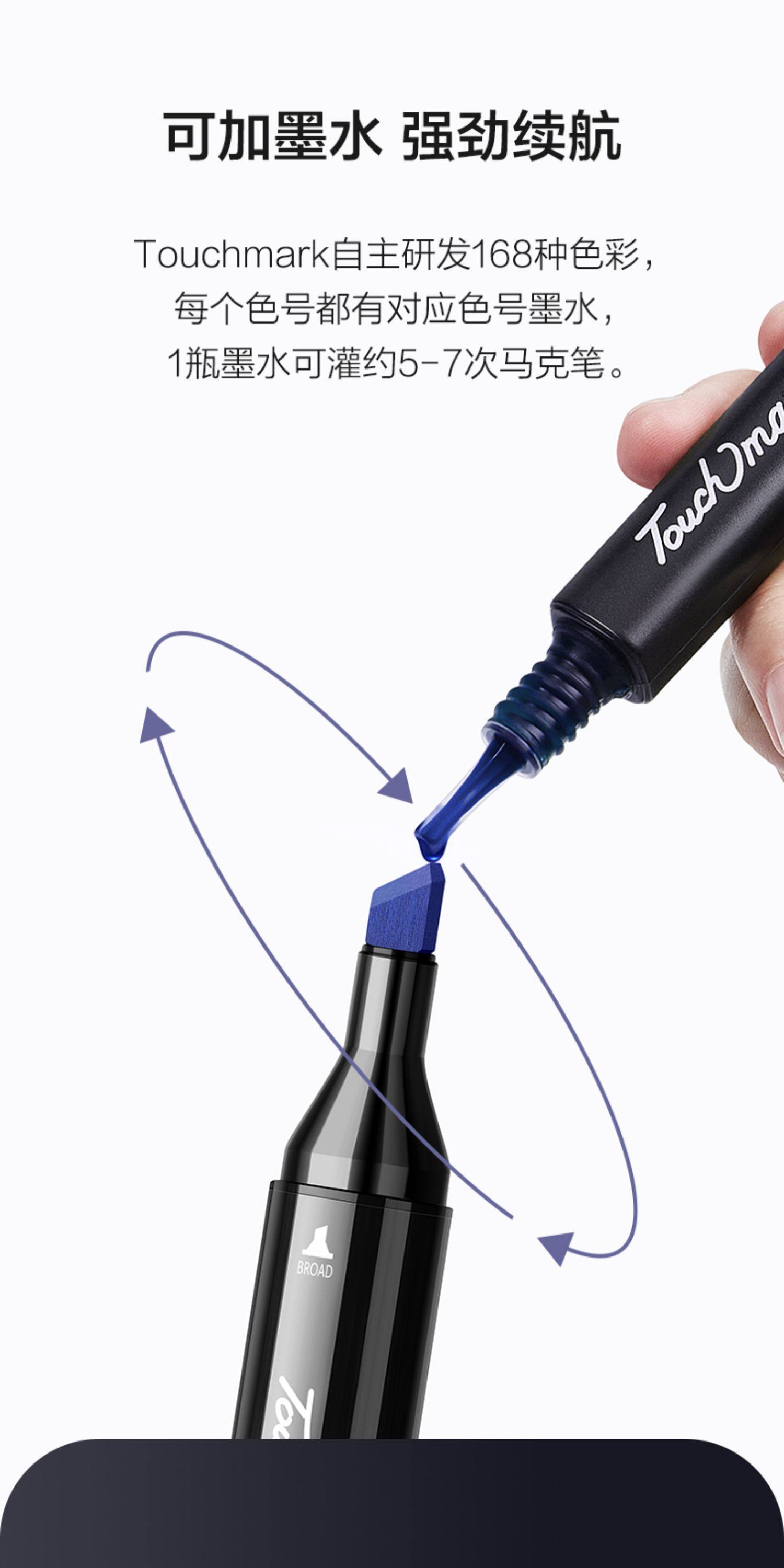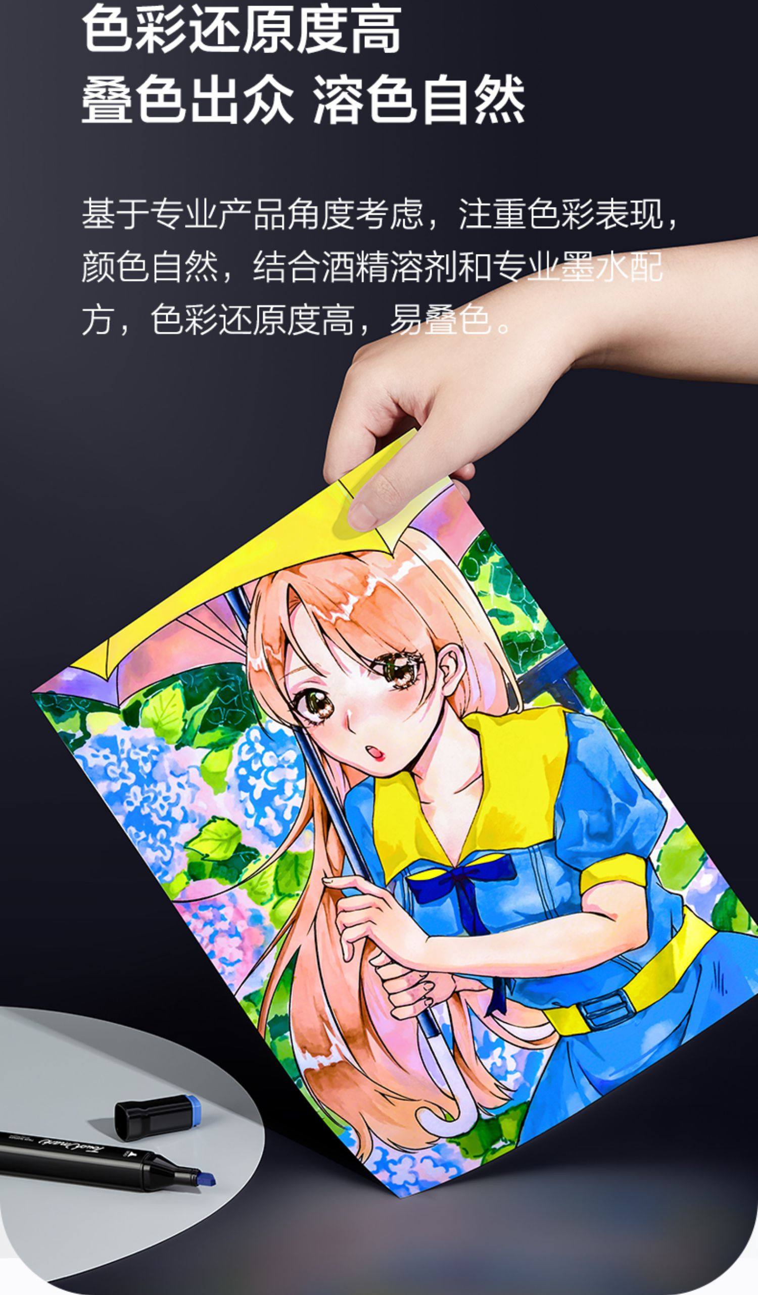 Touchmark Marker Pens for Art Students, 168 Colors Complete Set, Suitable for Elementary and Middle School Students, Oil-Based Dual-Tip Hand-Drawn Anime Pens, Professional Design, Exam Preparation, Stackable Color Pens