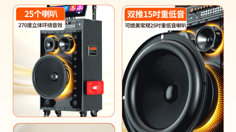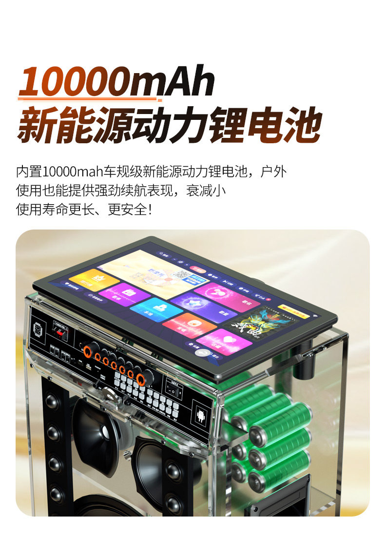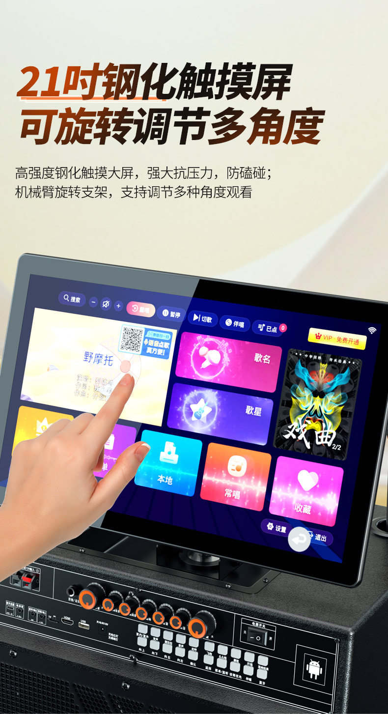 | Color Classification | [Double Promotion] 12inch Heavy Bass + 21 Speakers + 1000g Storage + 17inch Original Color Tempered Touch Screen + Dual Charging Microphone,[Double Promotion] 12inch Heavy Bass + 21 Speakers + 1000g Storage + 17inch Original Color Tempered Touch Screen + 4 Charging Microphones,[Double Promotion] 15inch Heavy Bass + 25 Speakers + 1000g Storage + 21inch Original Color Tempered Touch Screen + Dual Charging Microphone + Adjustable Tone,[Double Promotion] 15inch Heavy Bass + 25 Speakers + 1000g Storage + 21inch Original Color Tempered Touch Screen + 4 Charging Microphones + Adjustable Tones |