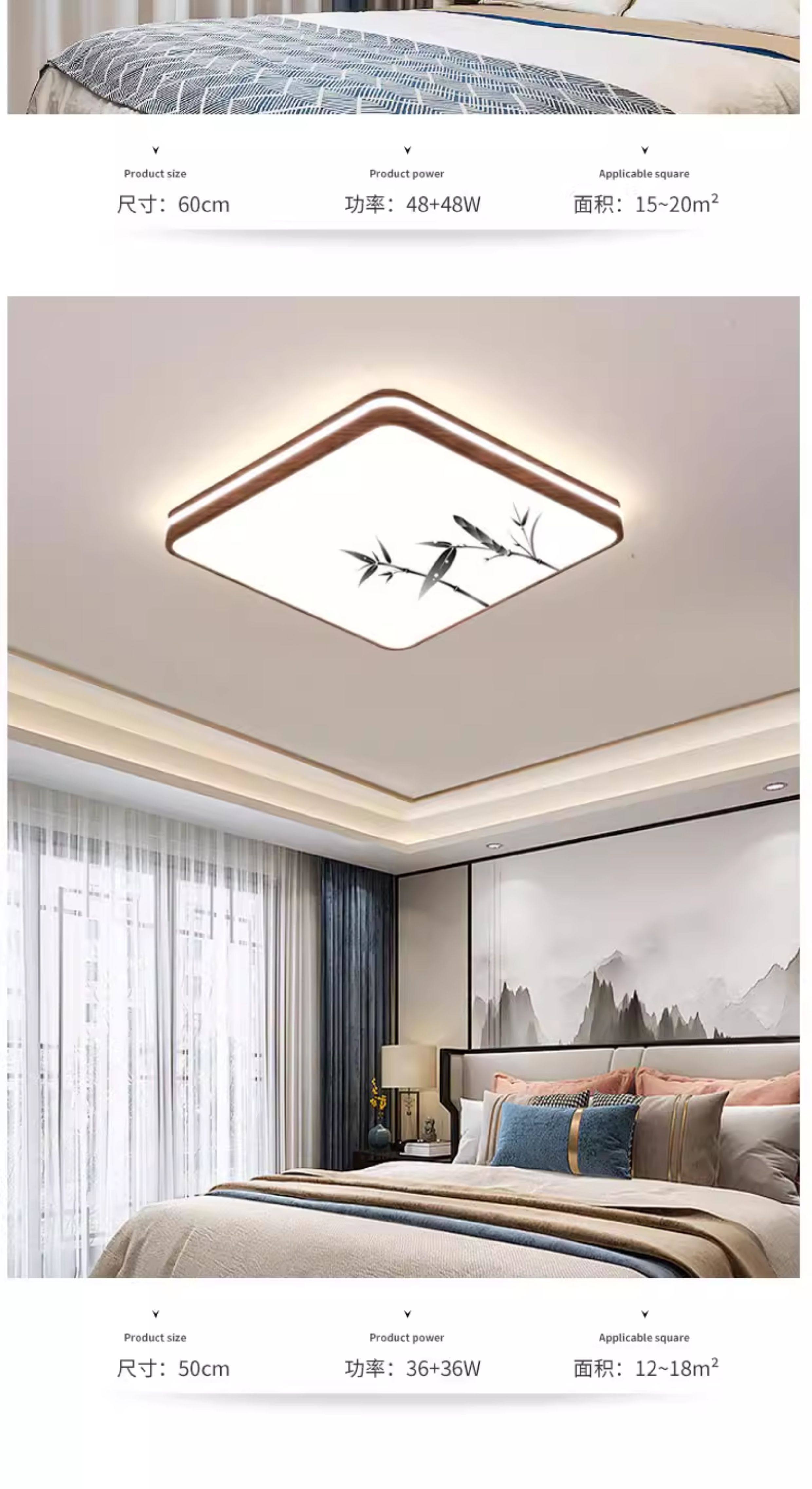 Living Room Ceiling Lamp, New Chinese Style, Ultra-Thin, Song Dynasty Aesthetics, Mid-Century Style, Retro Walnut Color, Rectangular Main Light for the Hall