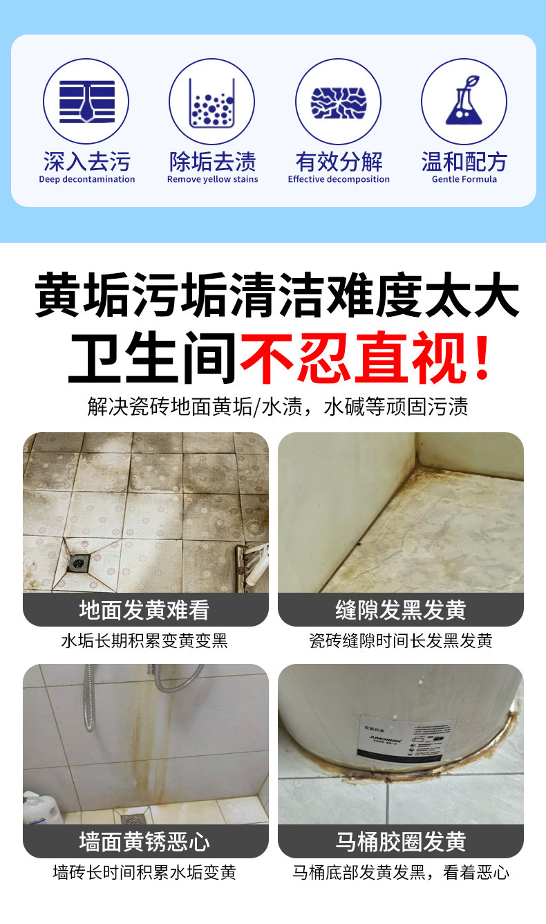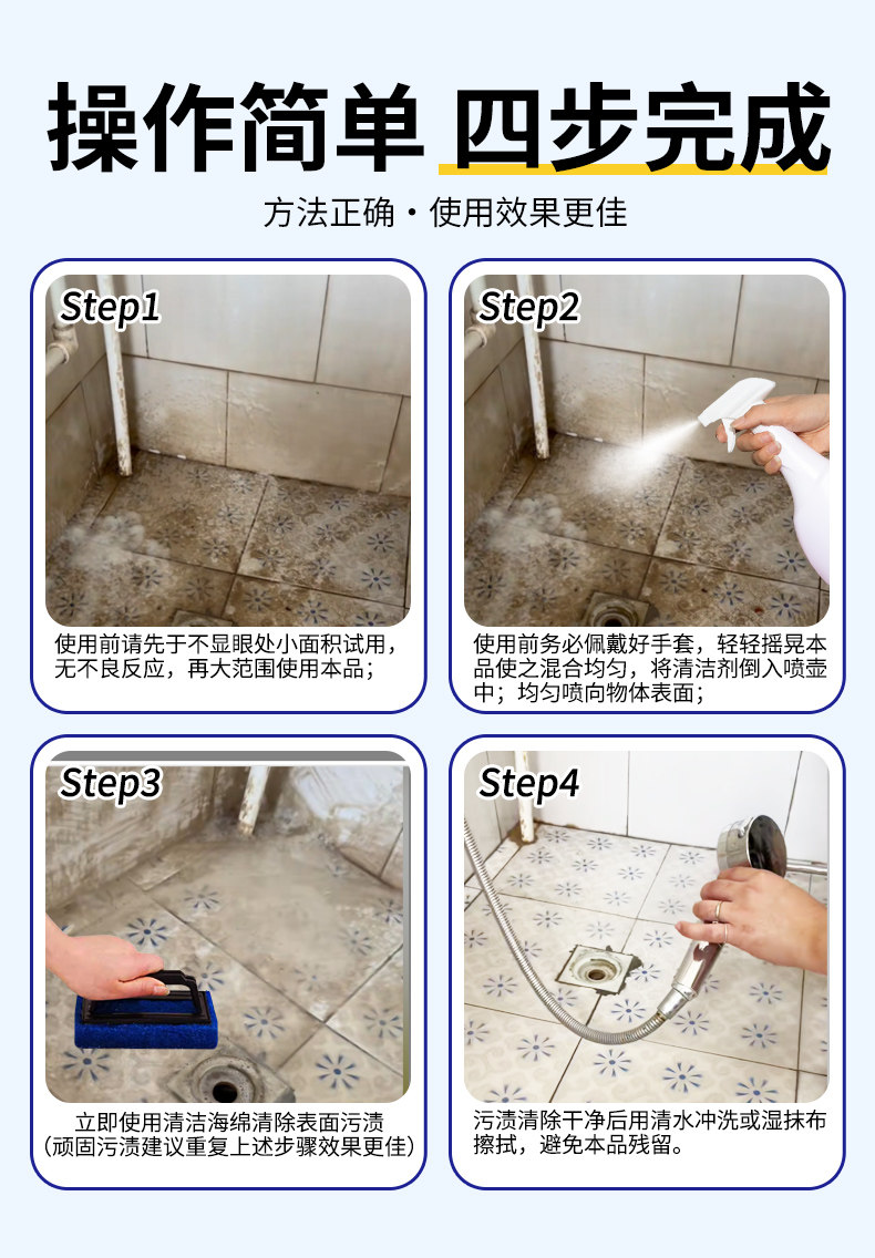 Bathroom Tile Cleaner, Powerful Stain Remover, Removes Yellowing, Polishes, Cleans Floor Gaps, Removes Black Marks, Removes Limescale, Oxalic Acid%