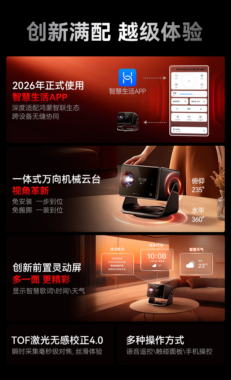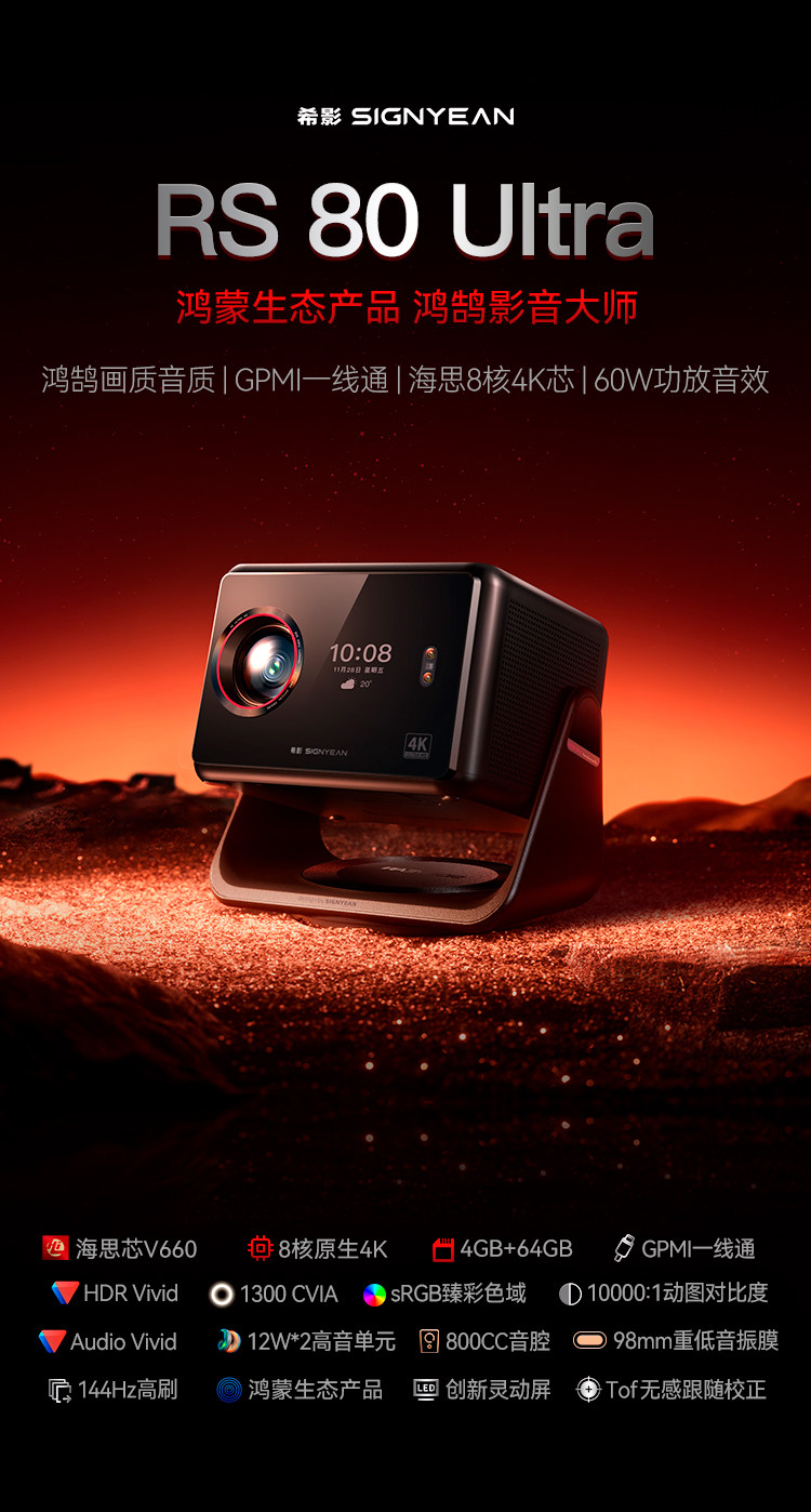 [Flagship New Product Launch] Xiying Rs 80 Ultra Projector Honghu Vivid Dual Certification Gpmi Ultra-Clear Home Bedroom Projector Suitable for Harmonyos Smart Ecosystem Integrated Projector