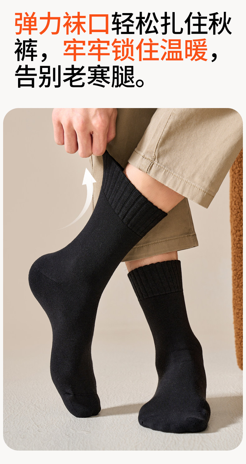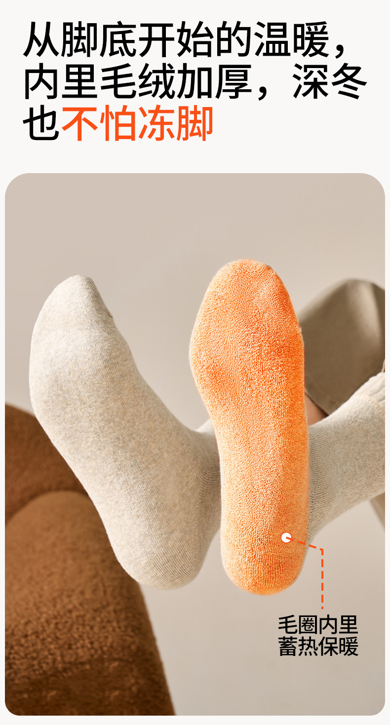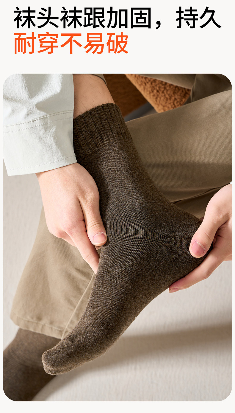 Brown Youth Socks for Men, Anti-Athlete's Foot, Anti-Odor, Pure Cotton, Seamless Mid-Calf Socks, Thickened for Autumn and Winter, Warm Terry Socks