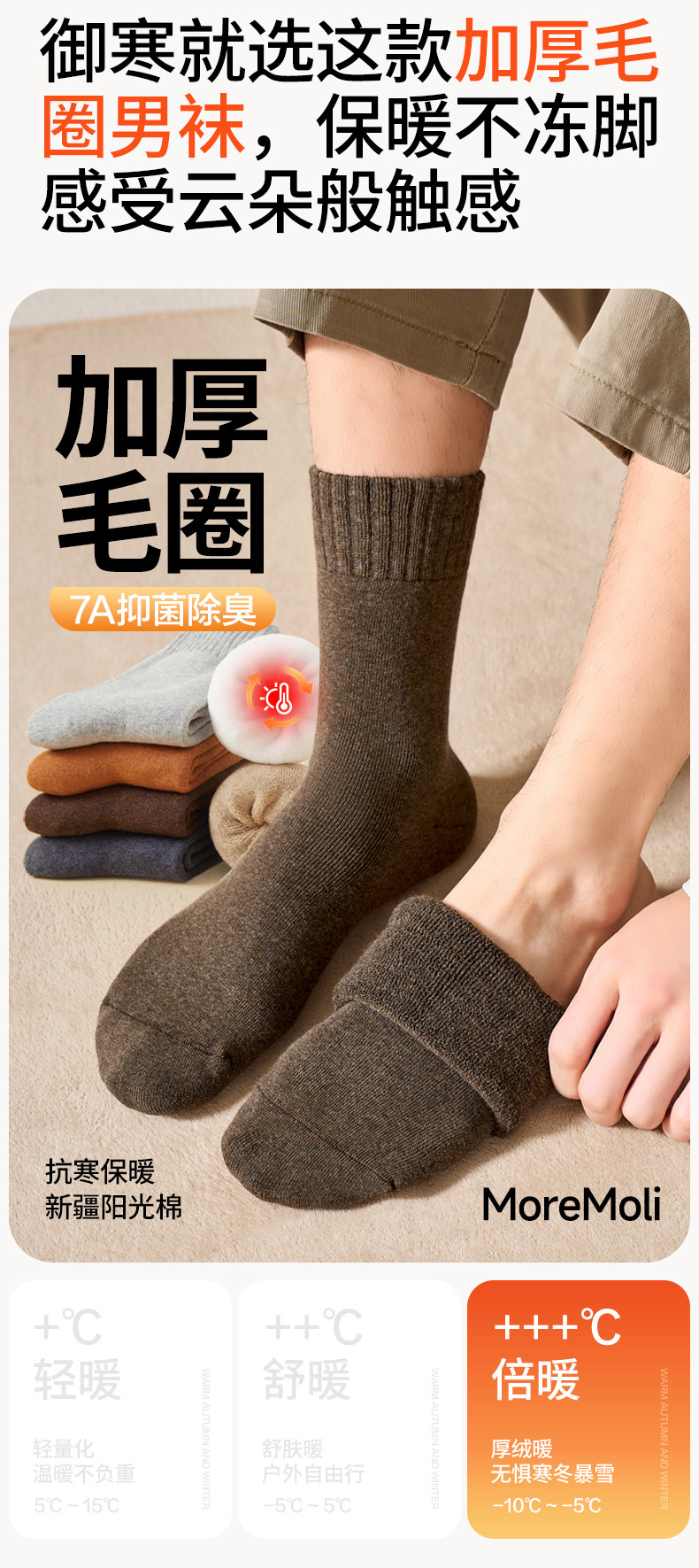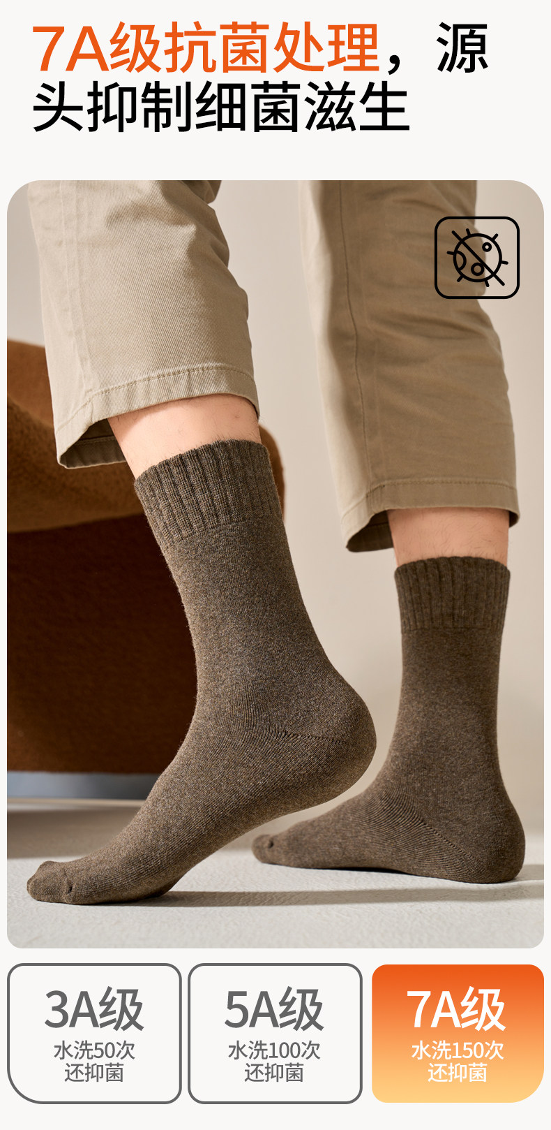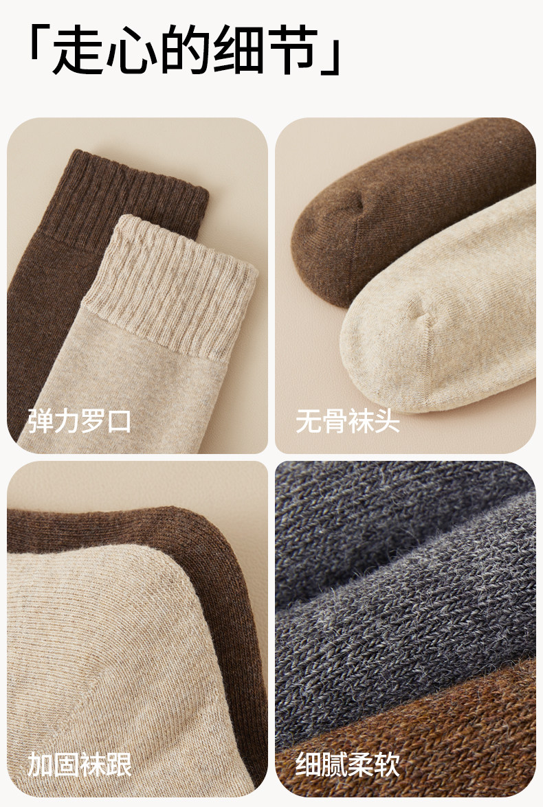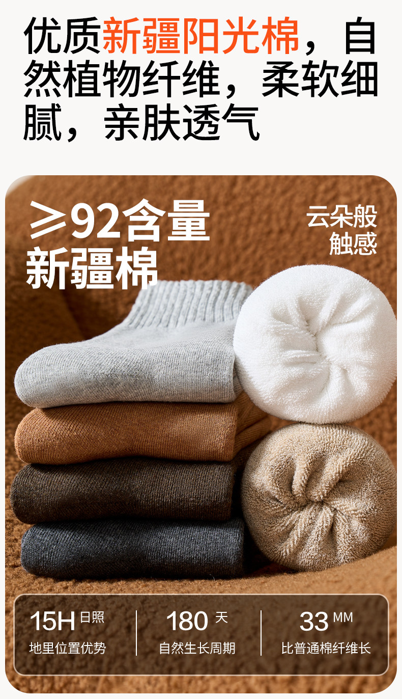Brown Youth Socks for Men, Anti-Athlete's Foot, Anti-Odor, Pure Cotton, Seamless Mid-Calf Socks, Thickened for Autumn and Winter, Warm Terry Socks