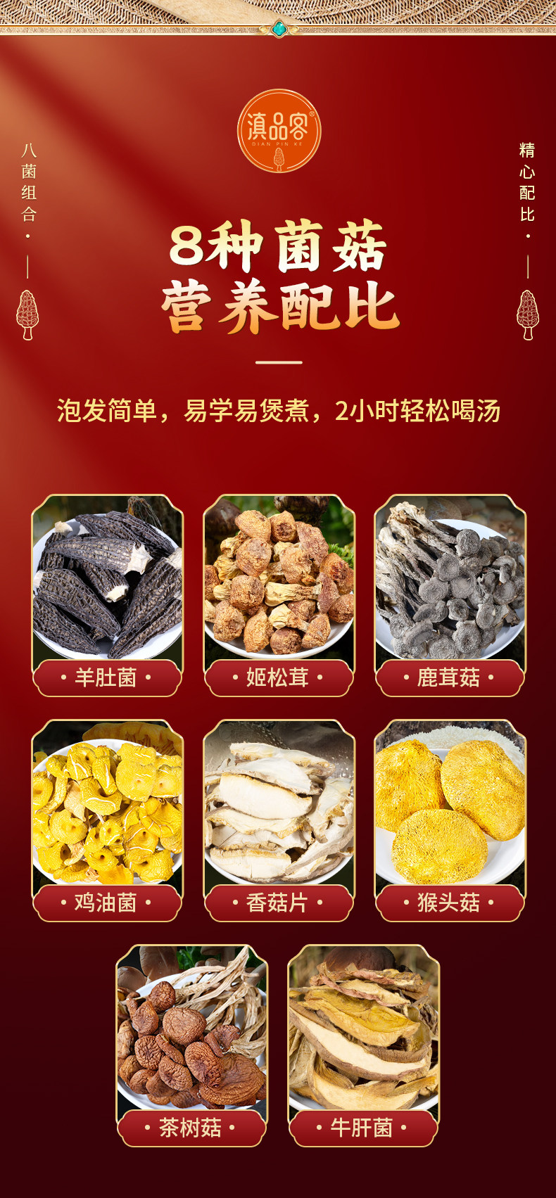 Yunnan Academy of Agricultural Sciences Mushroom Soup Pack New Stock Yunnan Seven-Colored Mushroom Soup Pack Matsutake Morel Dried Mushrooms for Chicken Stew Soup