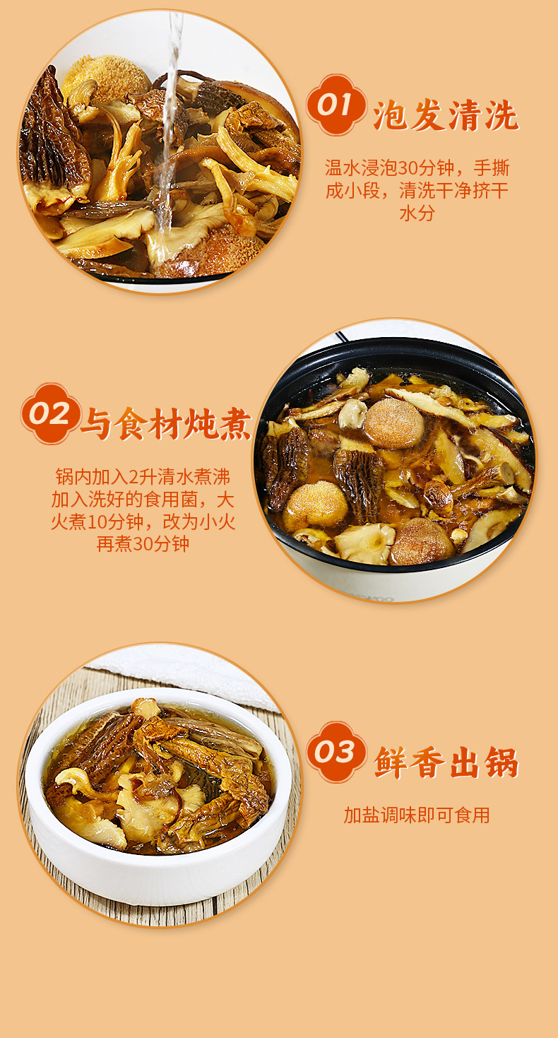 | Taste | Household Pack [6 Morel Mushrooms Per Pack] 80g X 1 Bag,Cost-Effective Package [6 Morels Per Pack] 80Gx2 Bags,Value Pack [6 Morel Mushrooms Per Pack] 80Gx3 Bags,Stocking Pack [6 Morel Mushrooms Per Pack] 80Gx5 Bags |
