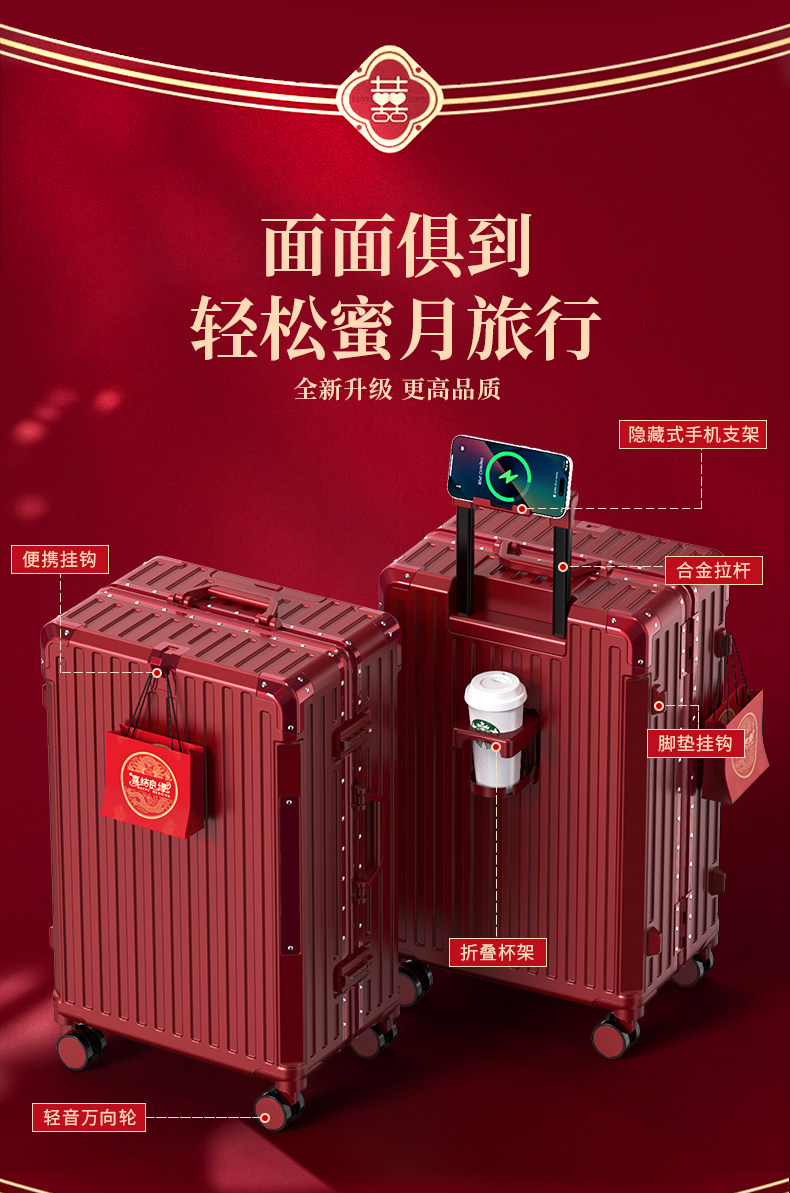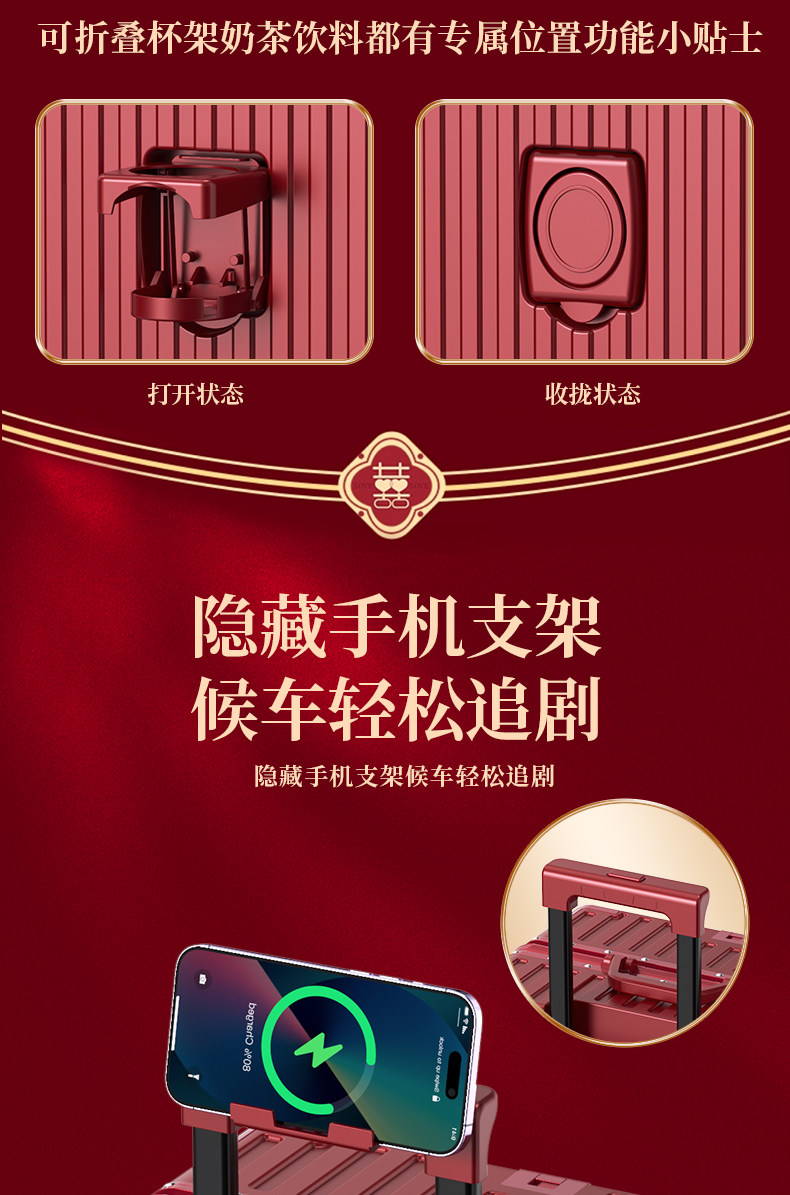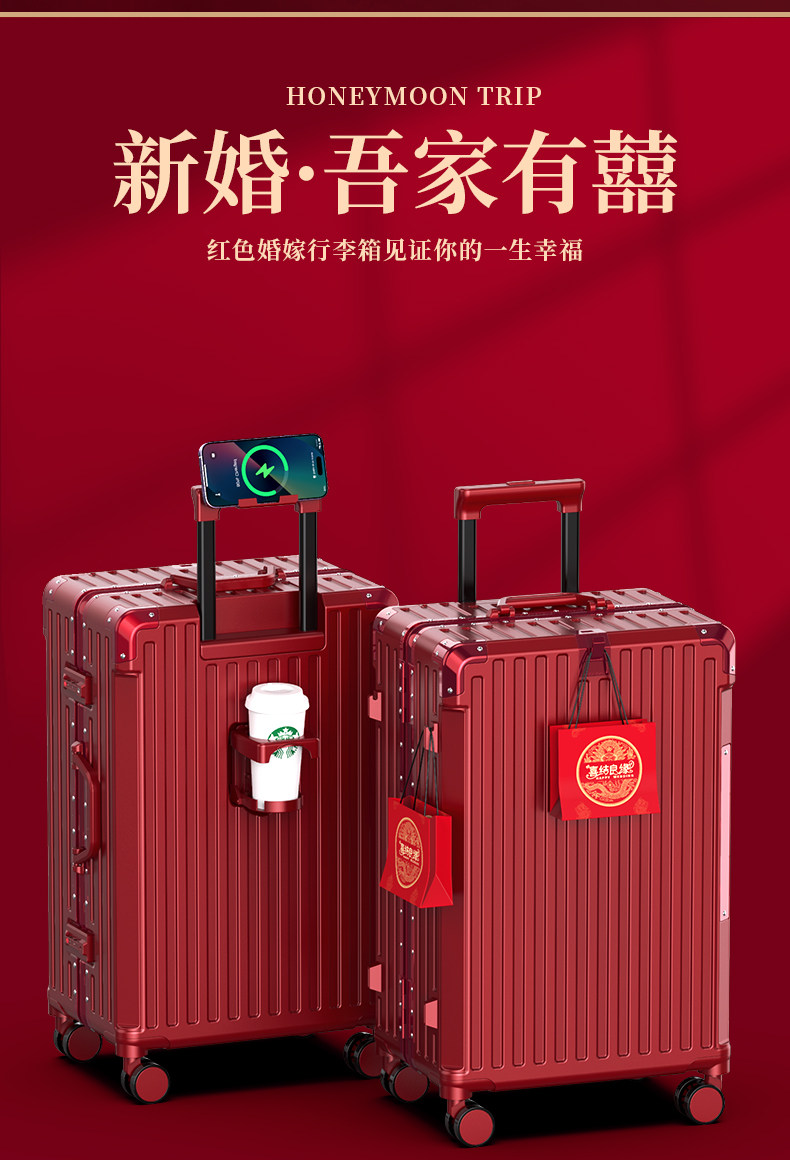 Bride's Wedding Suitcase, Red Dowry Trolley Leather Suitcase, Wedding Dowry Password Box, Bride's Wedding Box, Mother-In-Law's Box