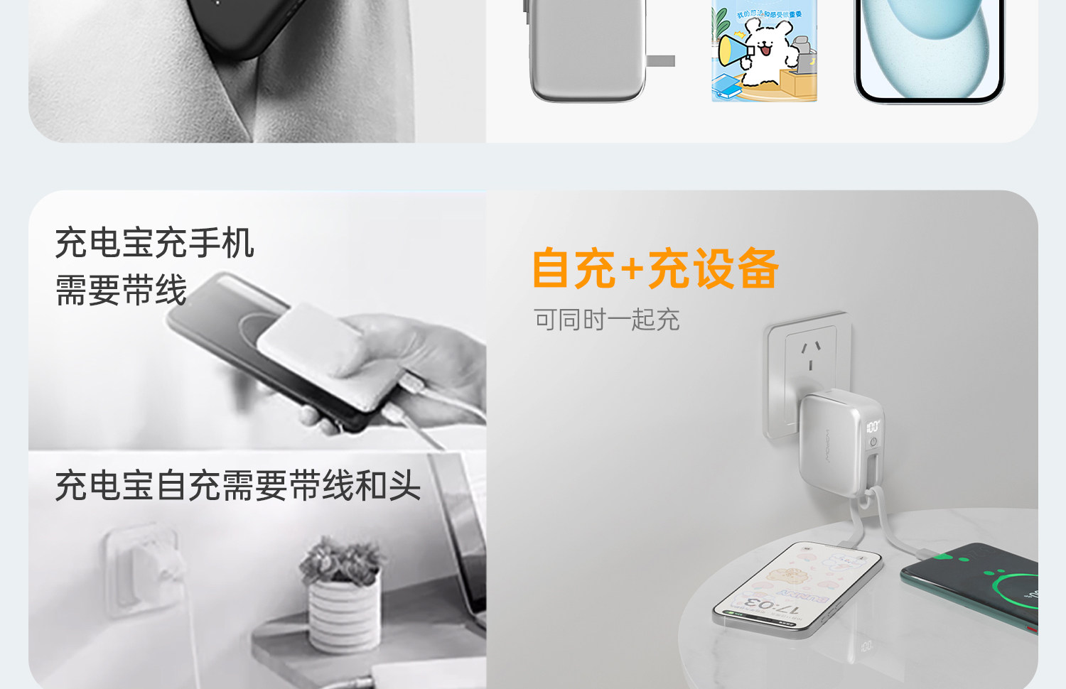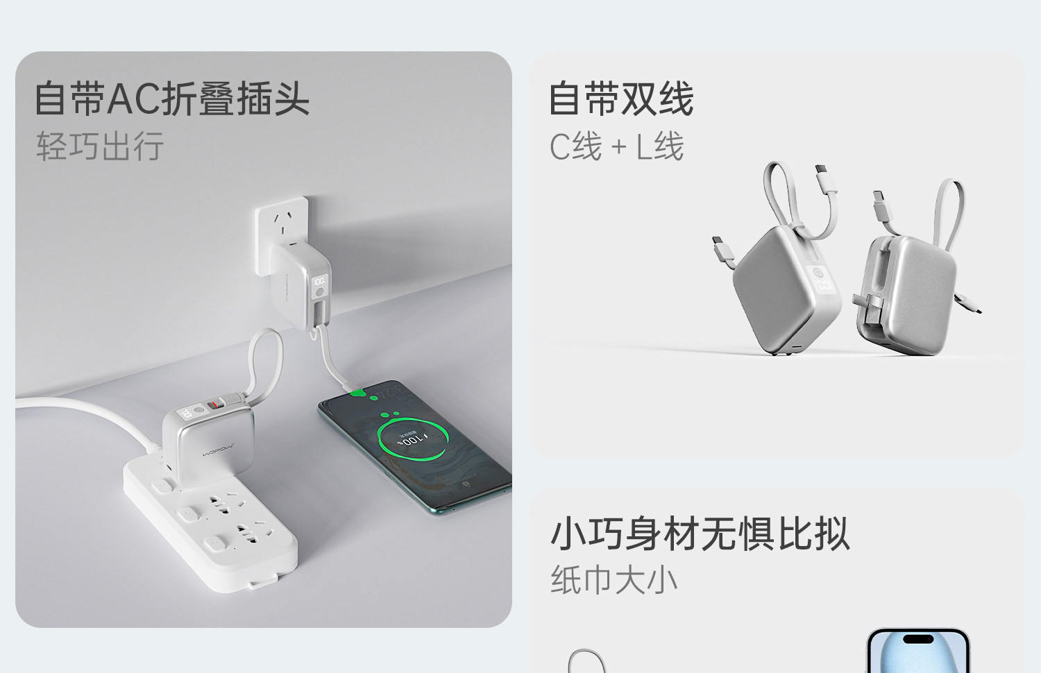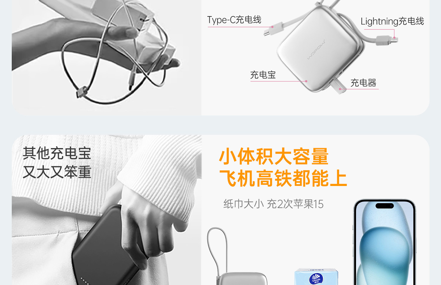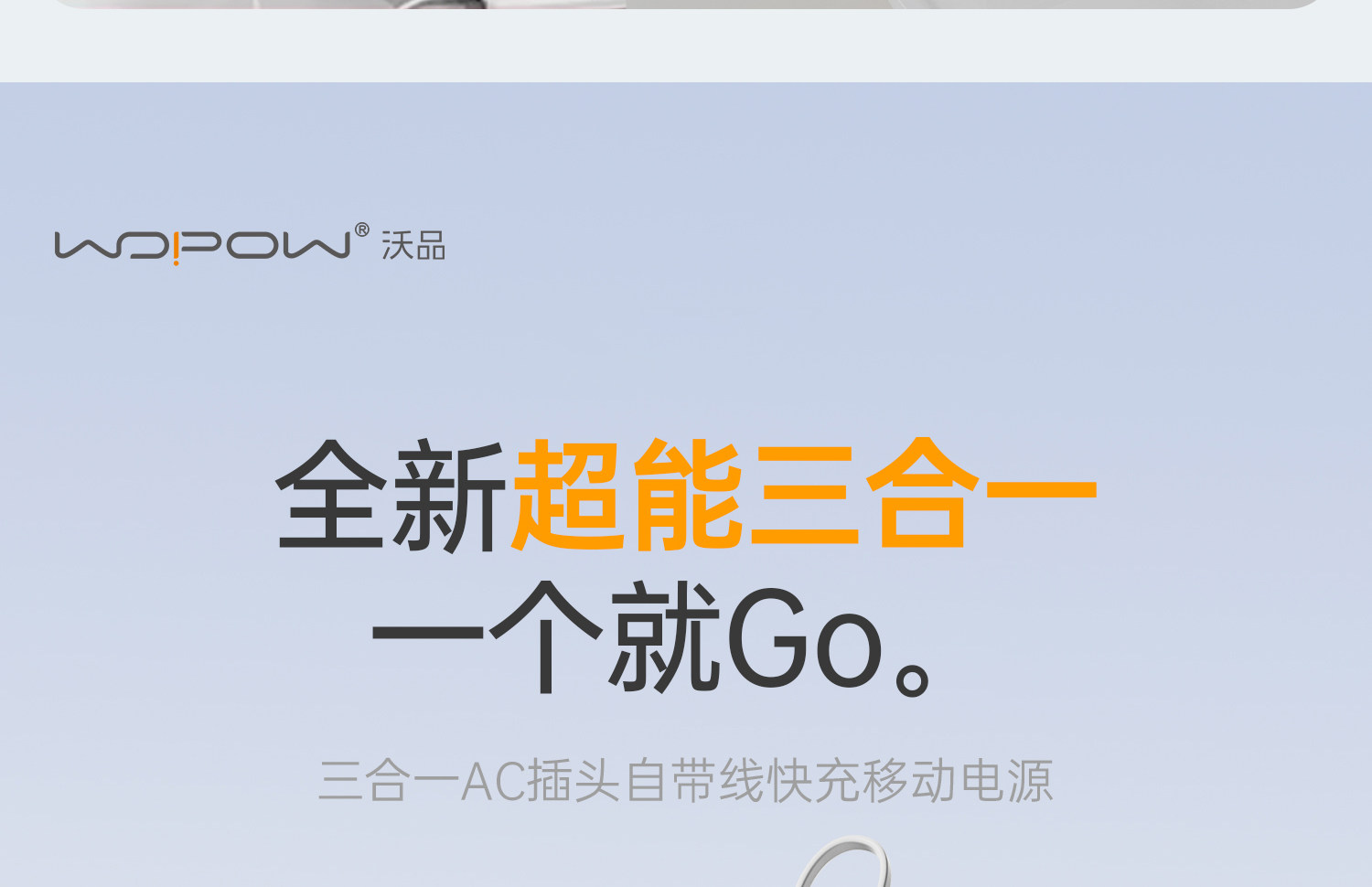 [New National Standard 3C Certification]Wopow 3-in-1 Power Bank with Built-In Cable and Plug, Fast Charging, 20000Mah, Compact and Portable, Mini, Airplane-Friendly, Mobile Power Supply, 17 New Model Small Cube
