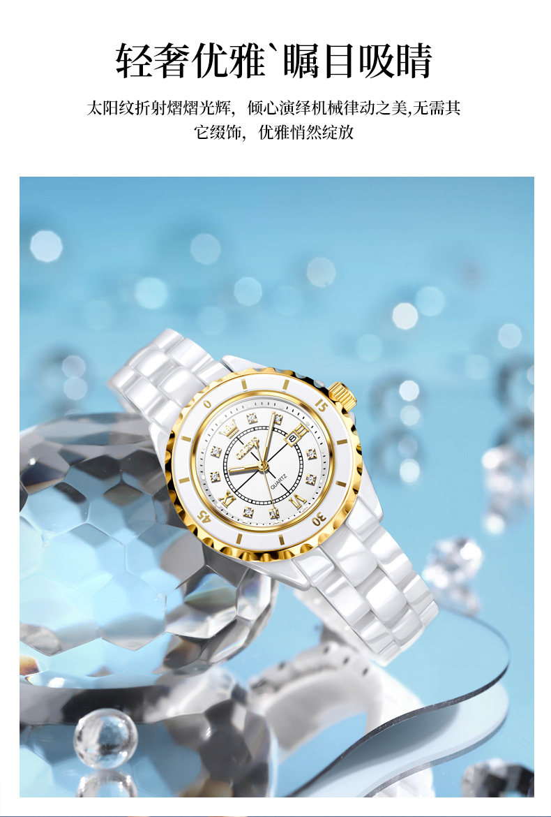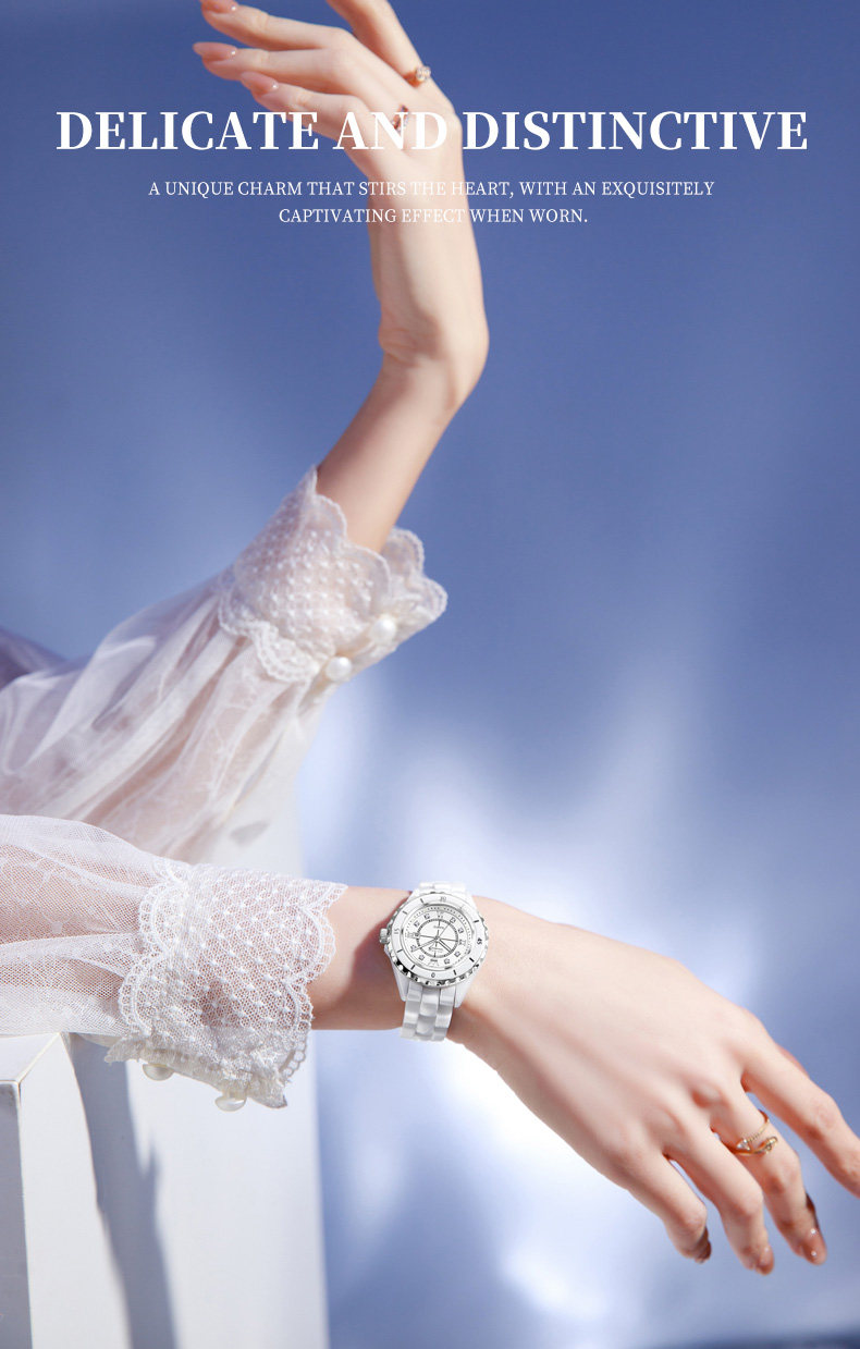 New Year's Gift Swiss Watch for Women, Light Luxury Niche Women's Watch, Luminous Waterproof Ceramic Strap Women's Watch, Top Ten Luxury Watches