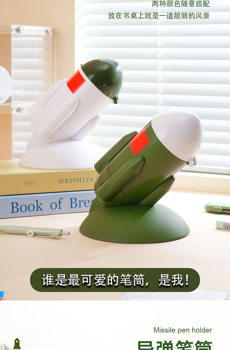 Dongfeng Missile-Shaped Cartoon DIY Pen Holder, Simple, High-End, Extra-Large Capacity with Lid, Loved by Adults and Children Alike