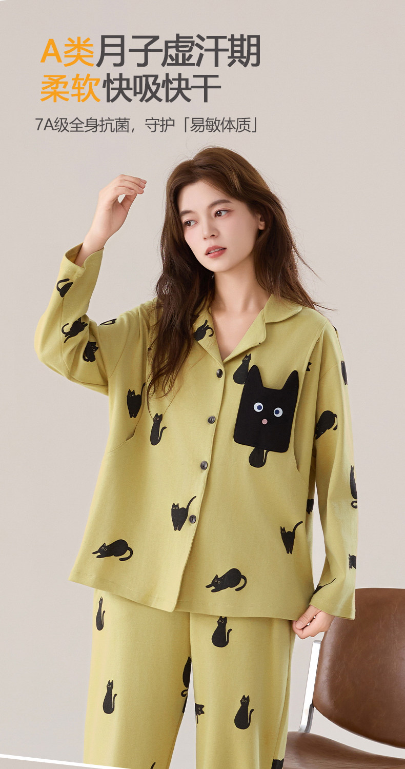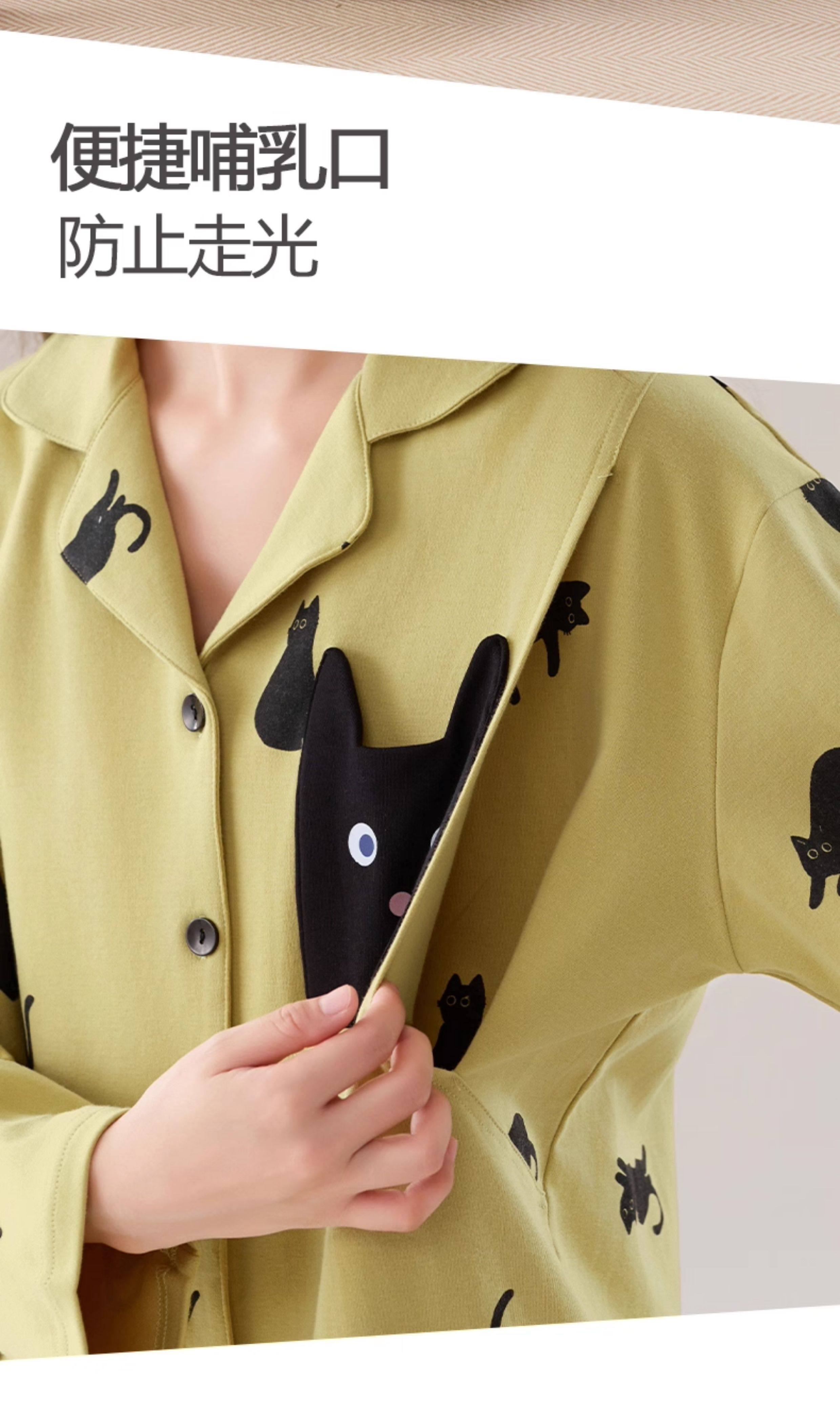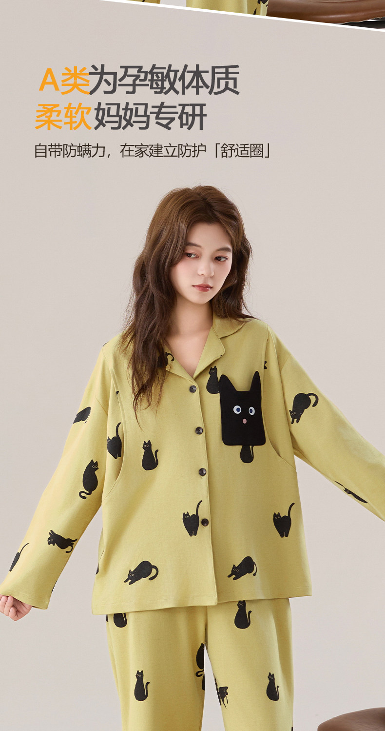 Jingqi Pure Cotton Postpartum Clothing, Postpartum Maternity Nursing Pajamas, Pregnancy Four-Season Printed Anti-Mite Home Wear Set