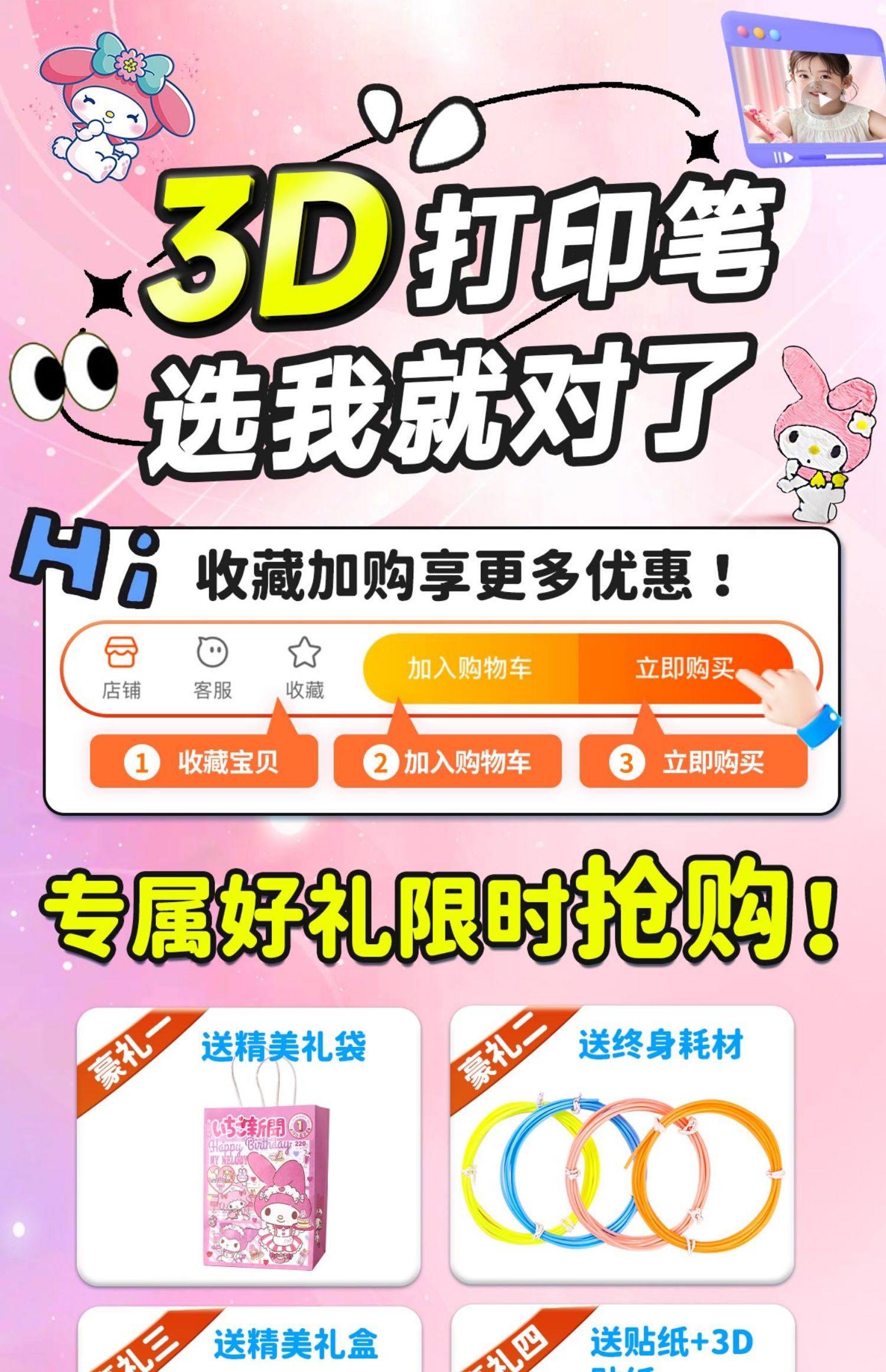 | Color Classification | 3D Printing Pen [️3 Rolls of Consumables - Long Battery Life Rechargeable Model]❤️Free Melody Stickers + Copybook + Exquisite Gift Box + Gift Bag,3D Printing Pen [️13 Rolls of Consumables - Long Battery Life Rechargeable Model]❤️Free Melody Stickers + Copybook + Exquisite Gift Box + Gift Bag,3D Printing Pen [️3 Rolls of Consumables - Long Battery Life Rechargeable Model]❤️Send Kuromi Stickers + Copybook + Exquisite Gift Box + Gift Bag,3D Printing Pen [️13 Rolls of Consumables - Long Battery Life Rechargeable Model]❤️Send Kuromi Stickers + Copybook + Exquisite Gift Box + Gift Bag,3D Printing Pen [️3 Rolls of Consumables - Long Battery Life Rechargeable Model]❤️Free Cinnamoroll Stickers + Tracing Book + Exquisite Gift Box + Gift Bag,3D Printing Pen [️13 Rolls of Consumables - Long Battery Life Rechargeable Model] ❤️ Free Cinnamoroll Stickers + Tracing Book + Exquisite Gift Box + Gift Bag |