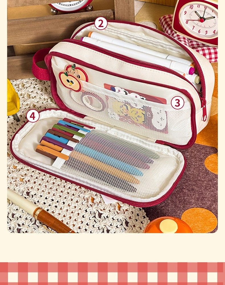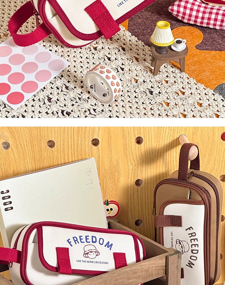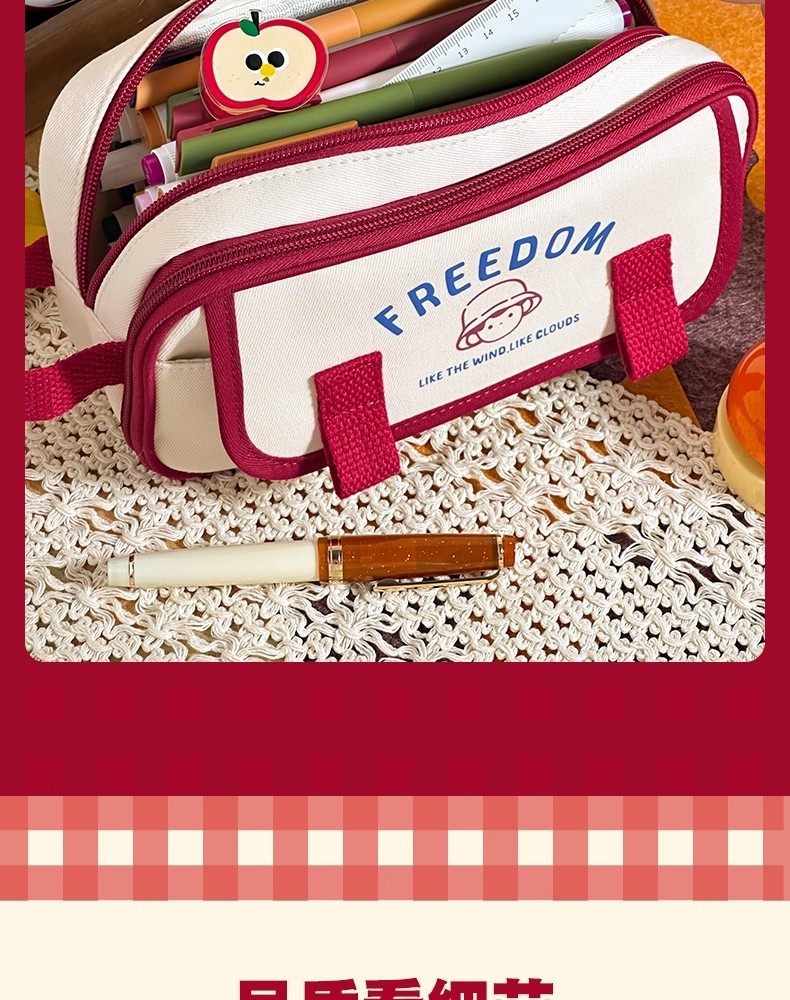 Retro Contrasting Color Webbing Pencil Case, Large Capacity, Satchel Pencil Case for Girls, High-Looking, Ins Simple and Niche Pencil Case