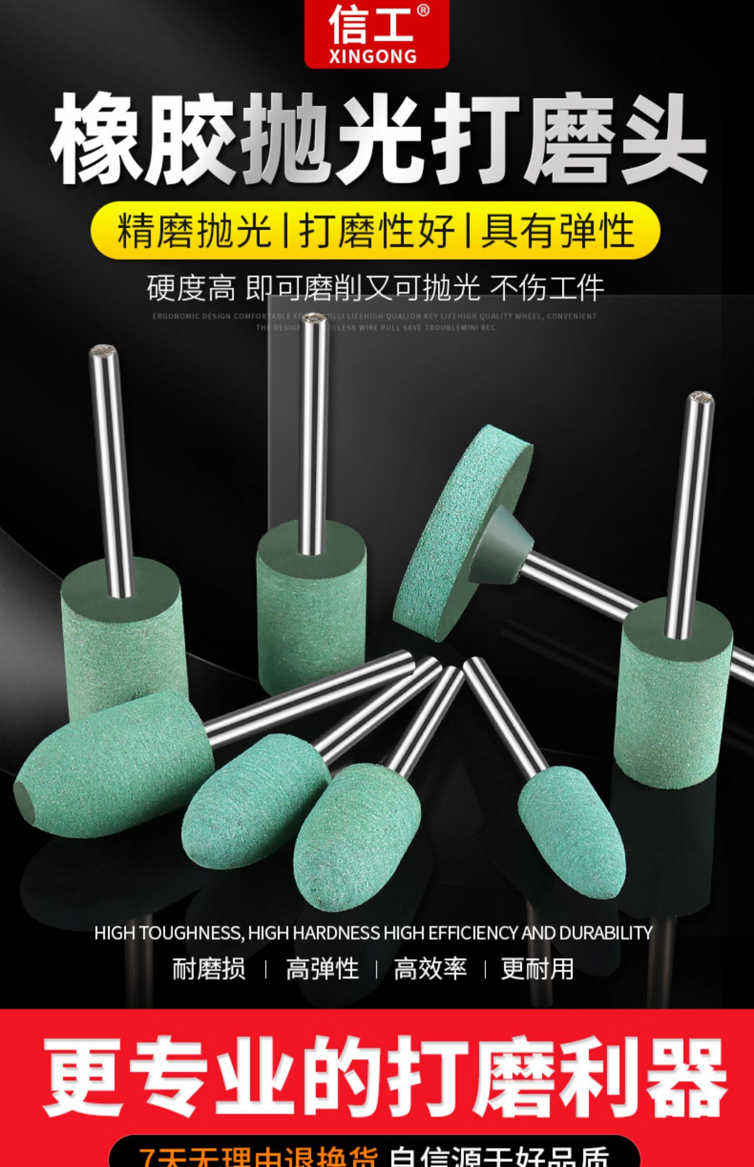 Rubber Polishing Grinding Head Cylindrical Bullet-Shaped T-Type Small Metal Rust Removal Tool Jade Rubber Grinding Polishing Head