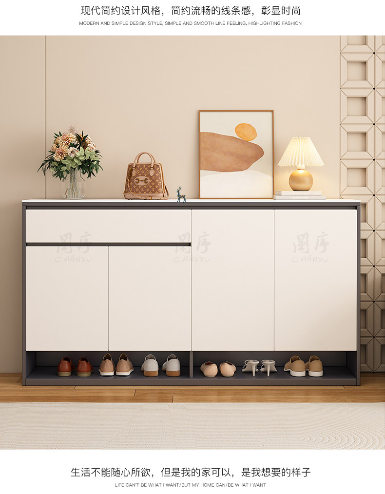 Solid Wood Slate Shoe Cabinet for Home Entrance, Indoor Large-Capacity Storage Cabinet, Modern Simple Wall-Mounted Entryway Cabinet