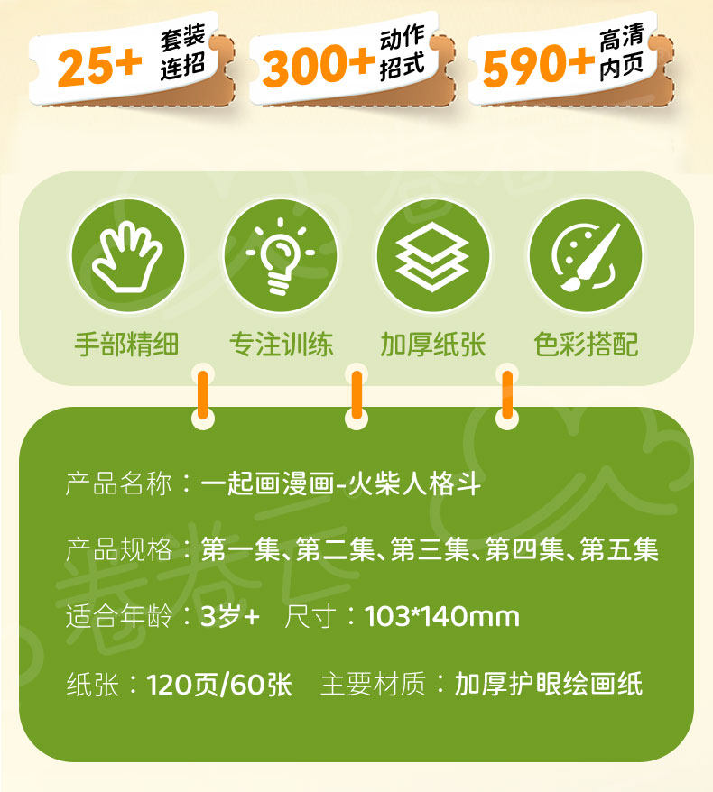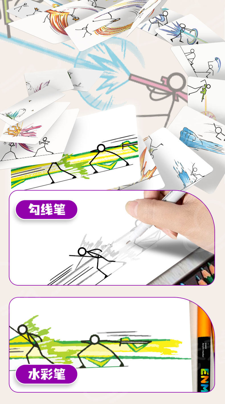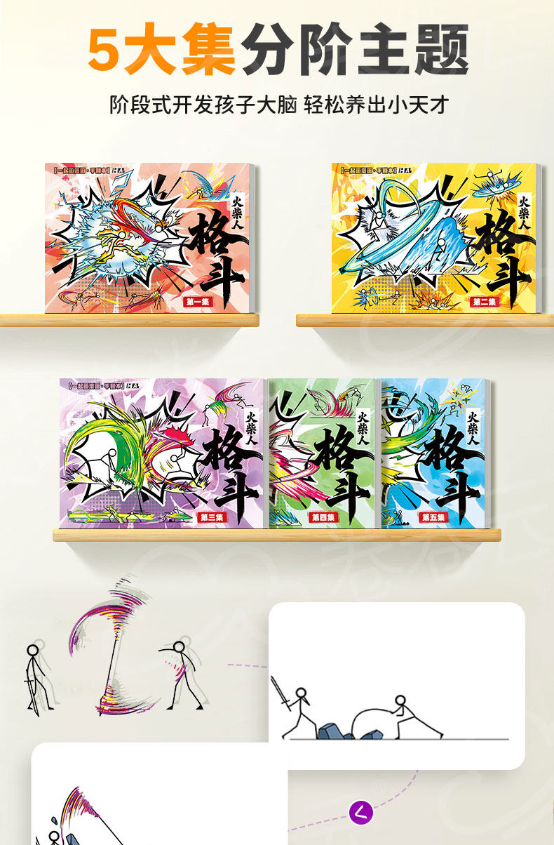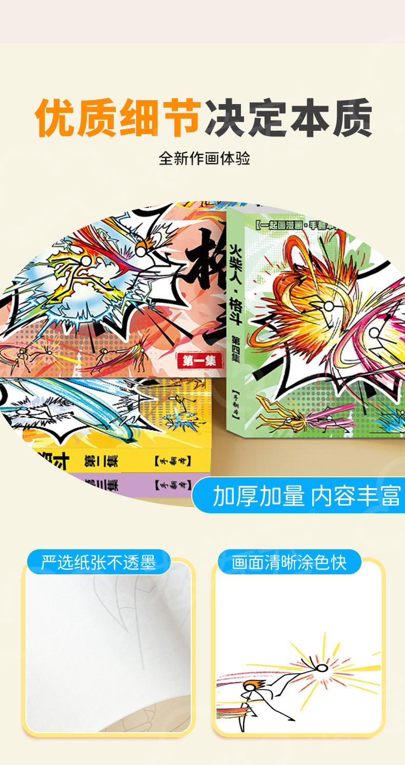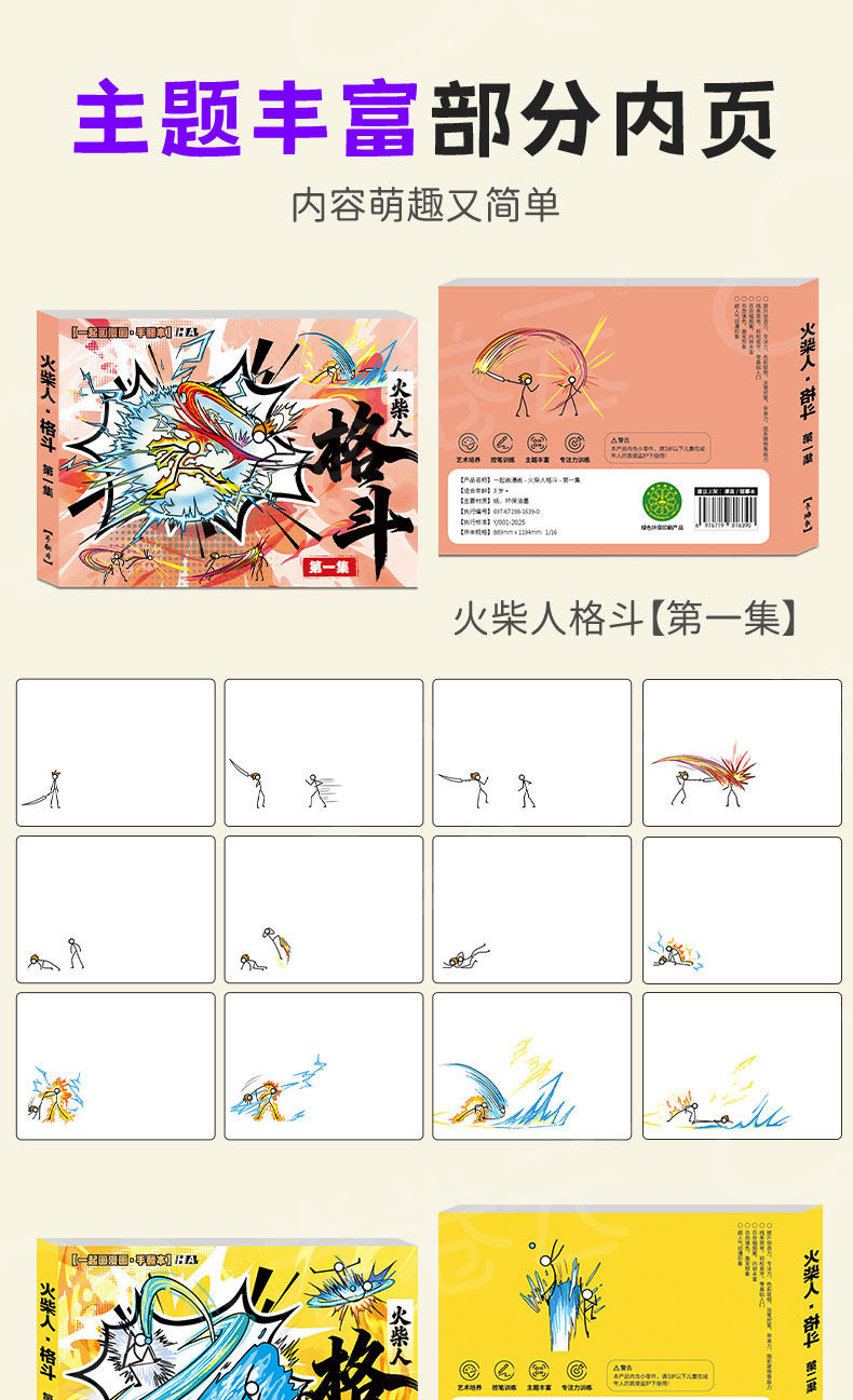 Stickman Drawing Book with Fighting Elements, Hand-Flipping Illustrations, Children's Comic Book, Creative Cartoon Comic Book, Pen Control Coloring Book for Boys, Elementary School Students' Simple Drawing Sketch Copying Tutorial Book