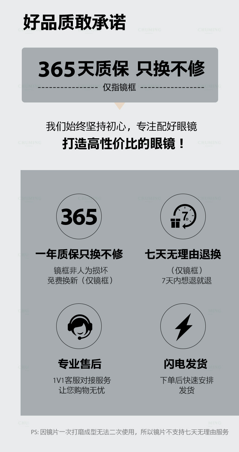 | Lens Refractive Index | Single Lens Frame [Comes with Special Lining for Glasses] [Can Be Tried on for 7 Days Without Any Reason to Return],Frame + Customized 0-Degree Anti-Blue Light Lenses [Suitable for Office/Study/Game],Frame + 1.56 Anti-Blue Light Radiation Lens [Suitable for 0-300 Degrees],Frame + 1.61 Anti-Blue Light Radiation Lens [Suitable for 0-500 Degrees],Frame + 1.67 Anti-Blue Light Radiation Lens [Suitable for 0-800 Degrees],Frame + 1.74 Anti-Blue Light Radiation Lens [Suitable for 0-1200 Degrees],Frame + 1.56 Aspherical Radiation-Proof Lens [Suitable for 0-300 Degrees],Frame + 1.61 Aspherical Anti-Radiation Lens [Suitable for 0-500 Degrees],Frame + 1.67 Aspherical Radiation-Proof Lens [Suitable for 0-800 Degrees],Frame + 1.74 Aspherical Radiation-Proof Lens [Suitable for 0-1200 Degrees],Equipped with [Essilor] Wanxin 1.56 Multi-Screen Anti-Blue Light Lenses [Suitable for 0-300],Equipped with [Essilor] Wanxin 1.60 Multi-Screen Anti-Blue Light Lenses [Suitable for 0-500],Equipped with [Essilor] Wanxin 1.67 Multi-Screen Anti-Blue Light Lenses [Suitable for 0-800],Equipped with [Essilor] Wanxin 1.74 Multi-Screen Anti-Blue Light Lenses [Suitable for 0-1200],Equipped with [Essilor] Wanxin 1.56 Daily Anti-Radiation Lenses [Suitable for 0-300],Equipped with [Essilor] Wanxin 1.60 Daily Anti-Radiation Lenses [Suitable for 0-500],Equipped with [Essilor] Wanxin 1.67 Daily Anti-Radiation Lenses [Suitable for 0-800],Equipped with [Essilor] Wanxin 1.74 Daily Anti-Radiation Lenses [Suitable for 0-1200],↓[Photochromic Lenses]↓Sun Protection and Uv Protection↓,Frame + [Grey/Tea] 1.56 Anti-Blue Light and Anti-Uv Lenses [Suitable for 0-300],Frame + [Grey/Tea] 1.61 Anti-Blue Light and Anti-Uv Lenses [Suitable for 0-500],Frame + [Grey/Tea] 1.67 Anti-Blue Light and Anti-Uv Lenses [Suitable for 0-800],Frame + [Grey/Tea] 1.74 Anti-Blue Light and Anti-Uv Lenses [Suitable for 0-1200],↓【Officially Licensed by Zeiss】↓ Authenticity Guaranteed: Get 10X Your Money Back if It's Fake. Lens Packaging Included.,Equipped with [Zeiss Vision] 1.56 High-Definition Aspherical [Applicable to 0-300 Degrees],Equipped with [Zeiss Vision] 1.60 High-Definition Aspherical [Applicable to 0-500 Degrees],Equipped with [Zeiss Vision] 1.67 High-Definition Aspherical [Applicable to 0-800 Degrees],Equipped with [Zeiss Vision] 1.56 Anti-Blue Light [Applicable to 0-300 Degrees],Equipped with [Zeiss Vision] 1.60 Anti-Blue Light [Applicable to 0-500 Degrees],Equipped with [Zeiss Vision] 1.67 Anti-Blue Light [Applicable to 0-800 Degrees] |