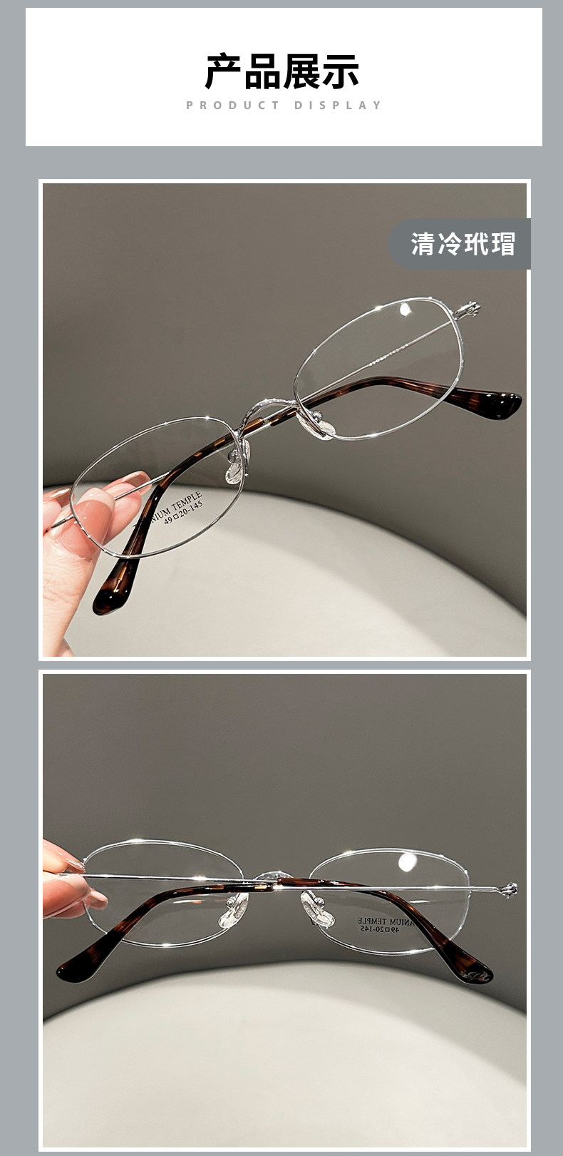 Ultra-Light Titanium Frame, Cool Silver Tortoiseshell Color, Prescription Glasses for Women, Suitable for Square and Round Faces, Makes the Face Look Smaller, Blue Light Blocking